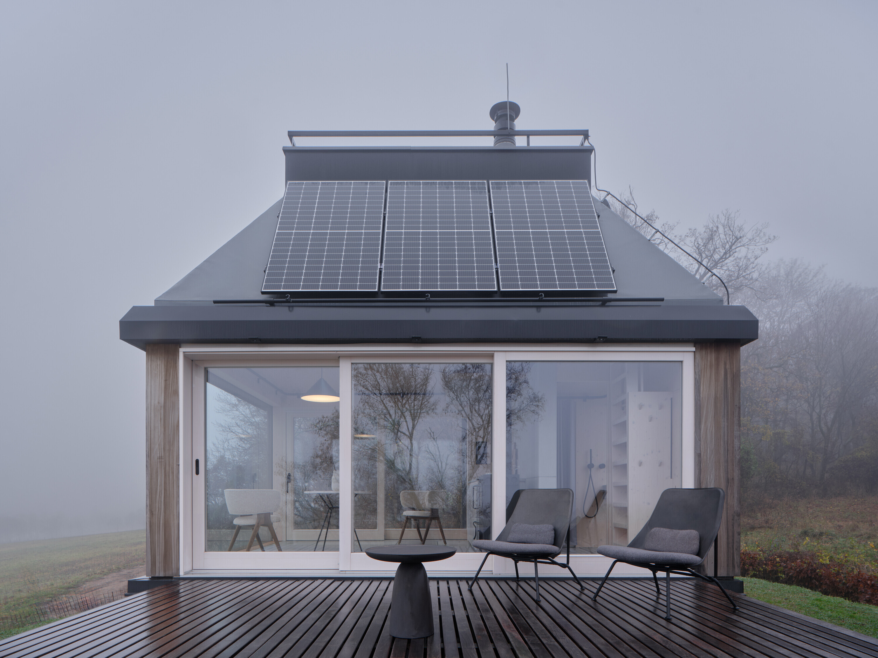 Stavba funguje ako off-grid objekt počas všetkých štyroch ročných období. V našej zemepisnej šírke to znamená navrhnúť systém, ktorý zvládne zimné obdobie bez obmedzenia komfortu.
