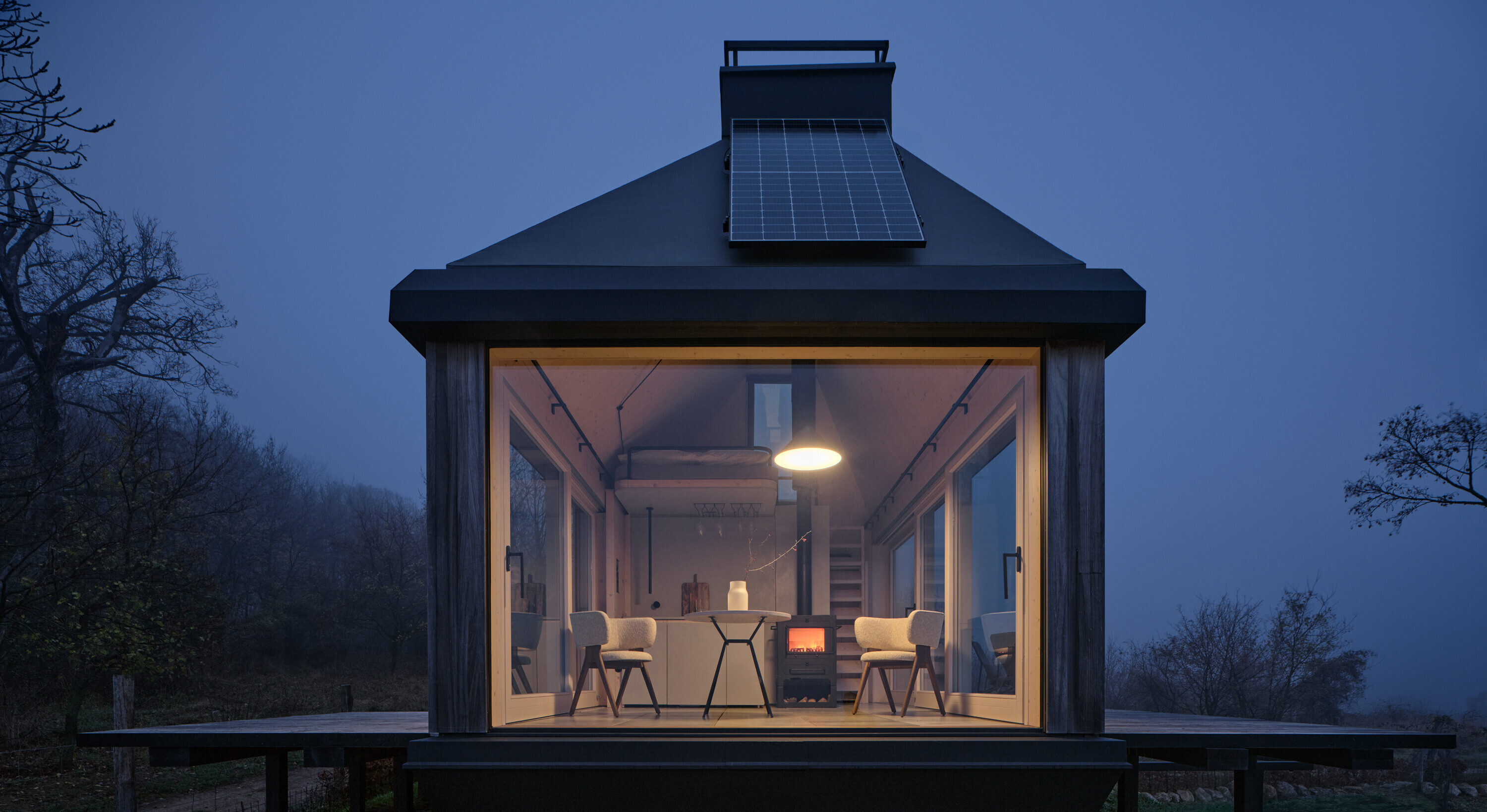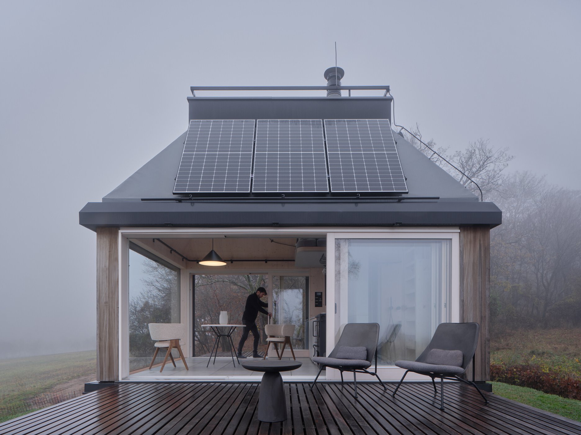 Energetická koncepcia kombinuje solárne panely s batériovým úložiskom a plynovými fľašami. Hybridné spotrebiče automaticky prepínajú z elektrickej energie na plyn v momente, keď kapacita batérie klesne pod nastavenú úroveň. Elektrina zostáva prioritne pre osvetlenie a drobné zariadenia, zatiaľ čo energeticky náročnejšie procesy, ako ohrev vody, kúrenie či chladenie, sa flexibilne prispôsobujú dostupnému zdroju.
