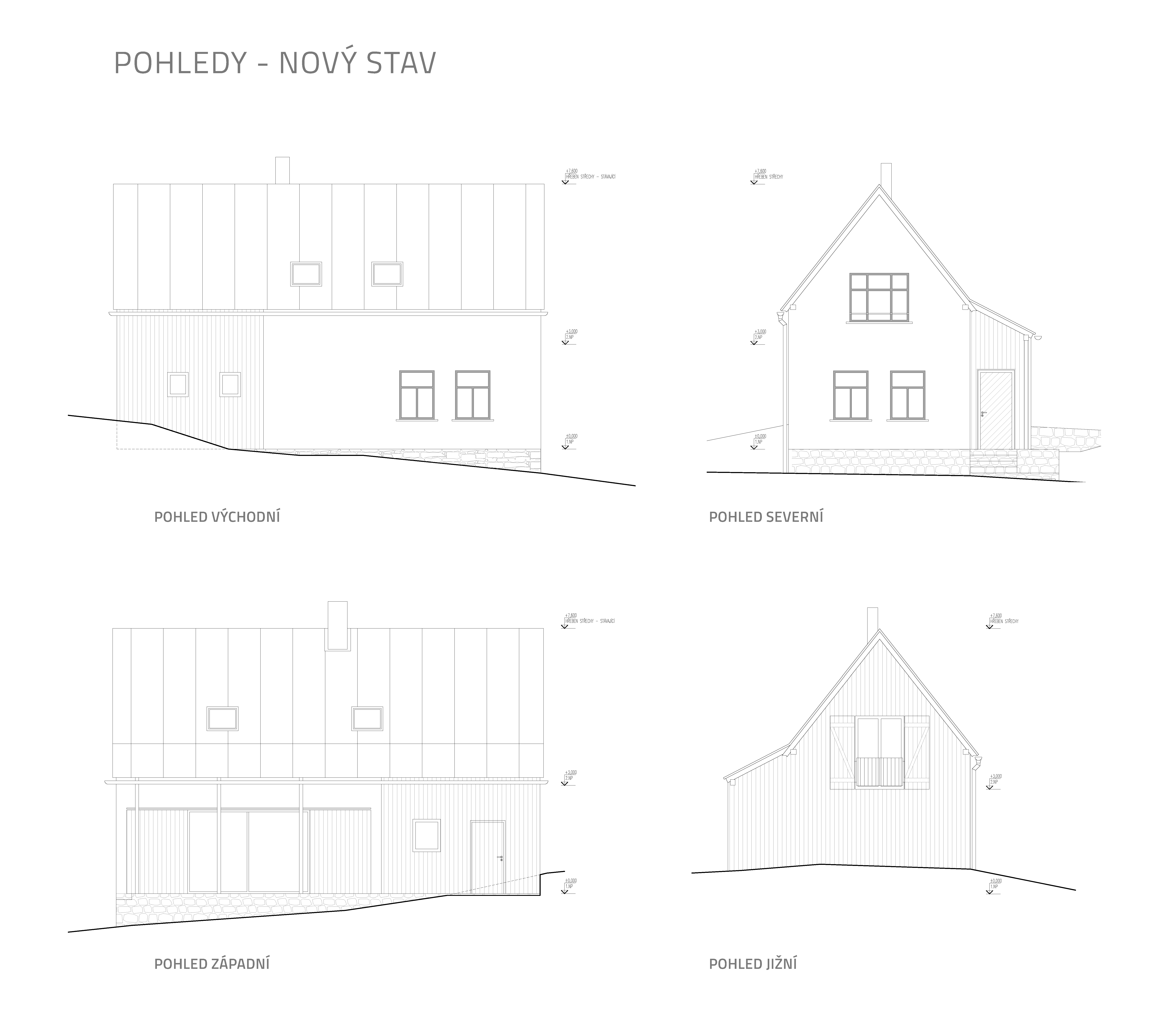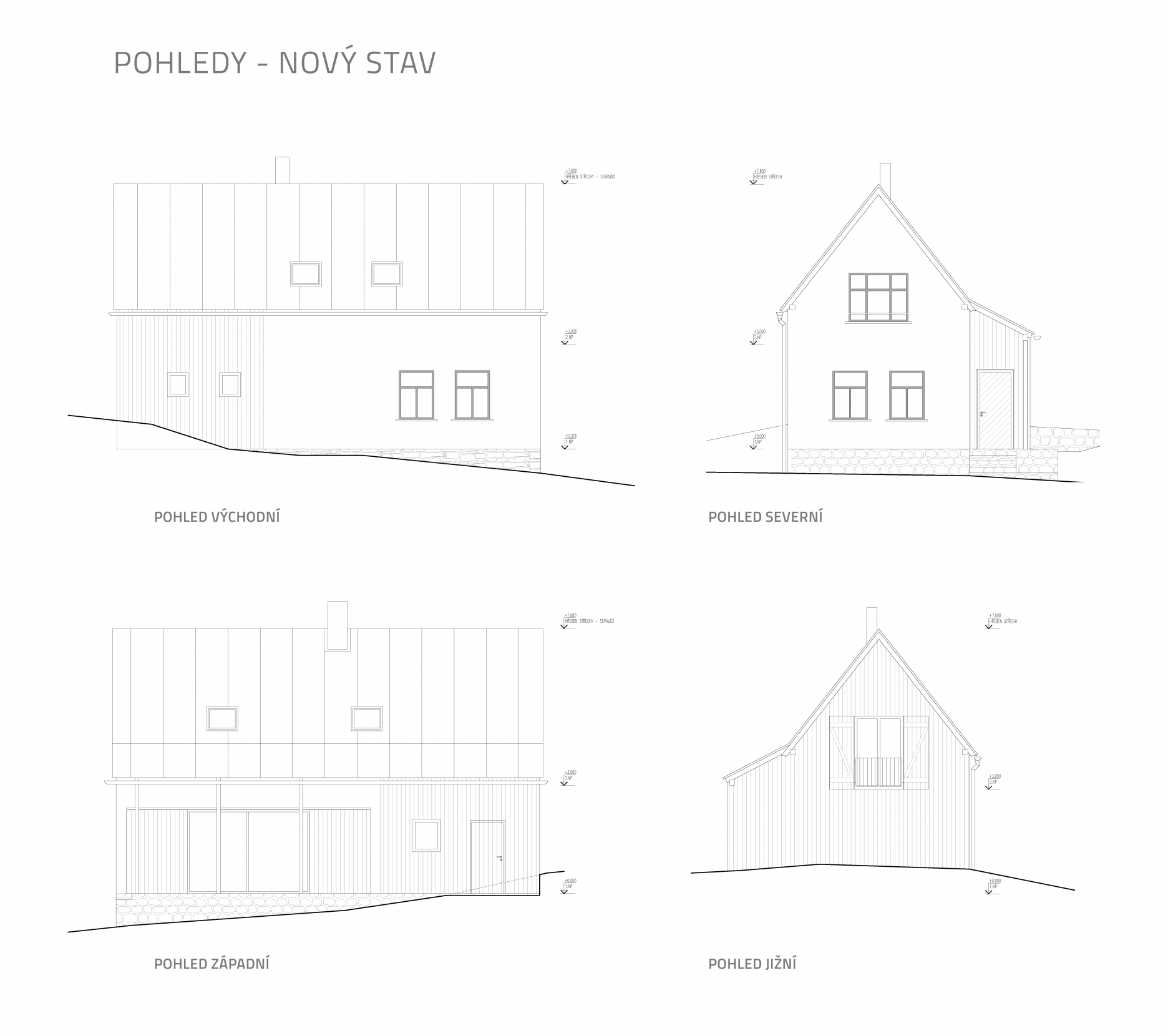 Kateřina Margoldová navrhla očistenie pôvodnej chaty od neskorších prístavieb a zväčšenie obytného priestoru prístavbou. Nová hmota vznikla predĺžením pôvodného tvaru v smere hrebeňa. Na južnej strane prebieha do miest, kde stáli prístavby kôlne a kúpeľne. Nová časť je v úrovni prízemia širšia a nadväzuje na priedomie, ktoré vzniklo na pôvodnej základovej doske prístavby kuchyne.