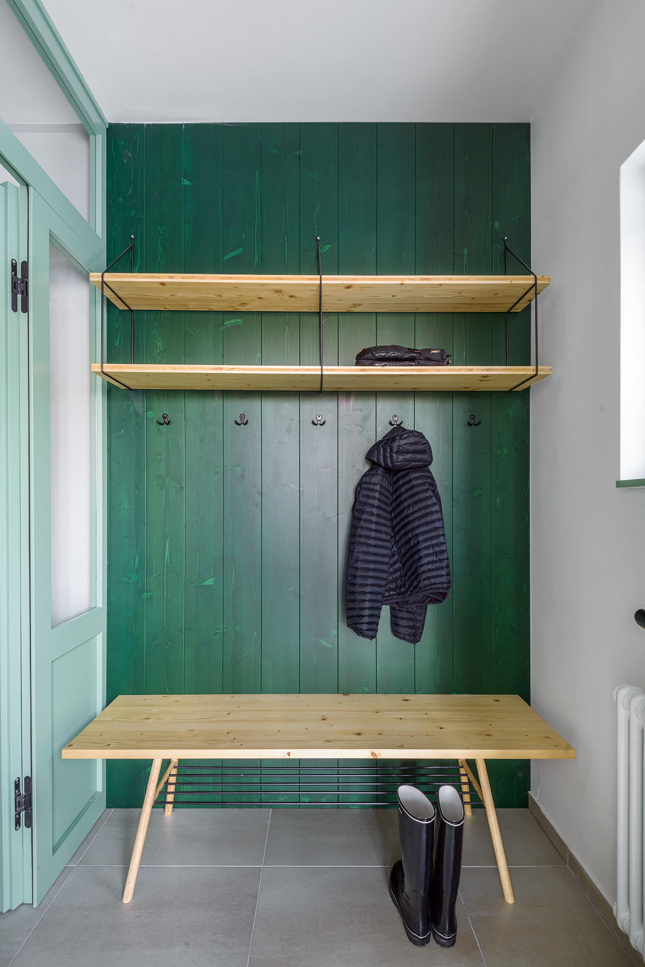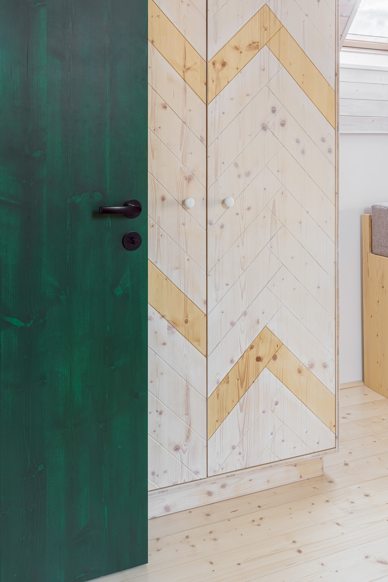 Návrhu interiéru pracuje s odolnými prírodnými materiálmi a farebnou škálou nachádzajúcou sa v bezprostrednej blízkosti chaty. Podľa slov architektky sú kvalitné materiály a detaily pre celkovú atmosféru dôležitejšie ako dizajnový nábytok.