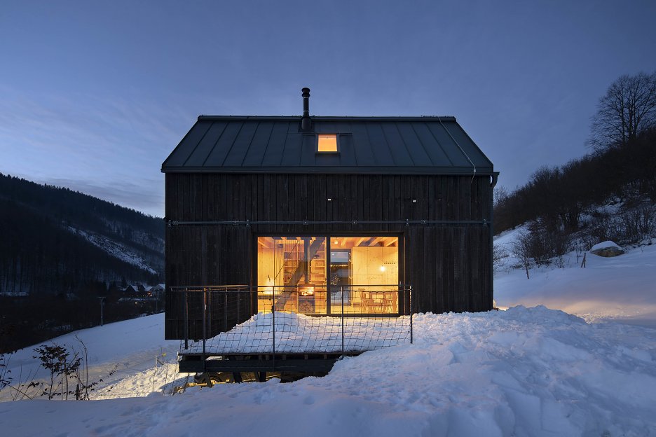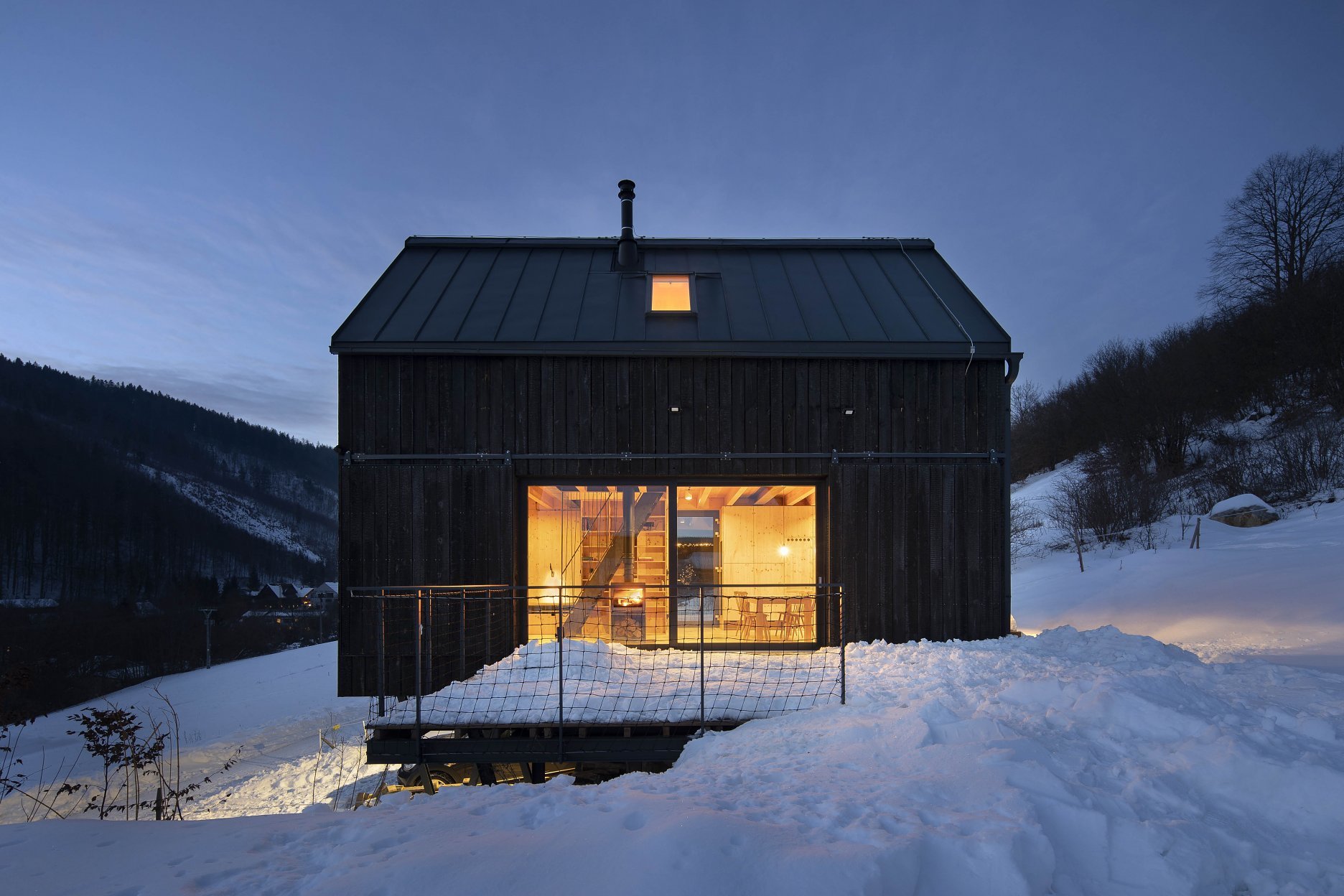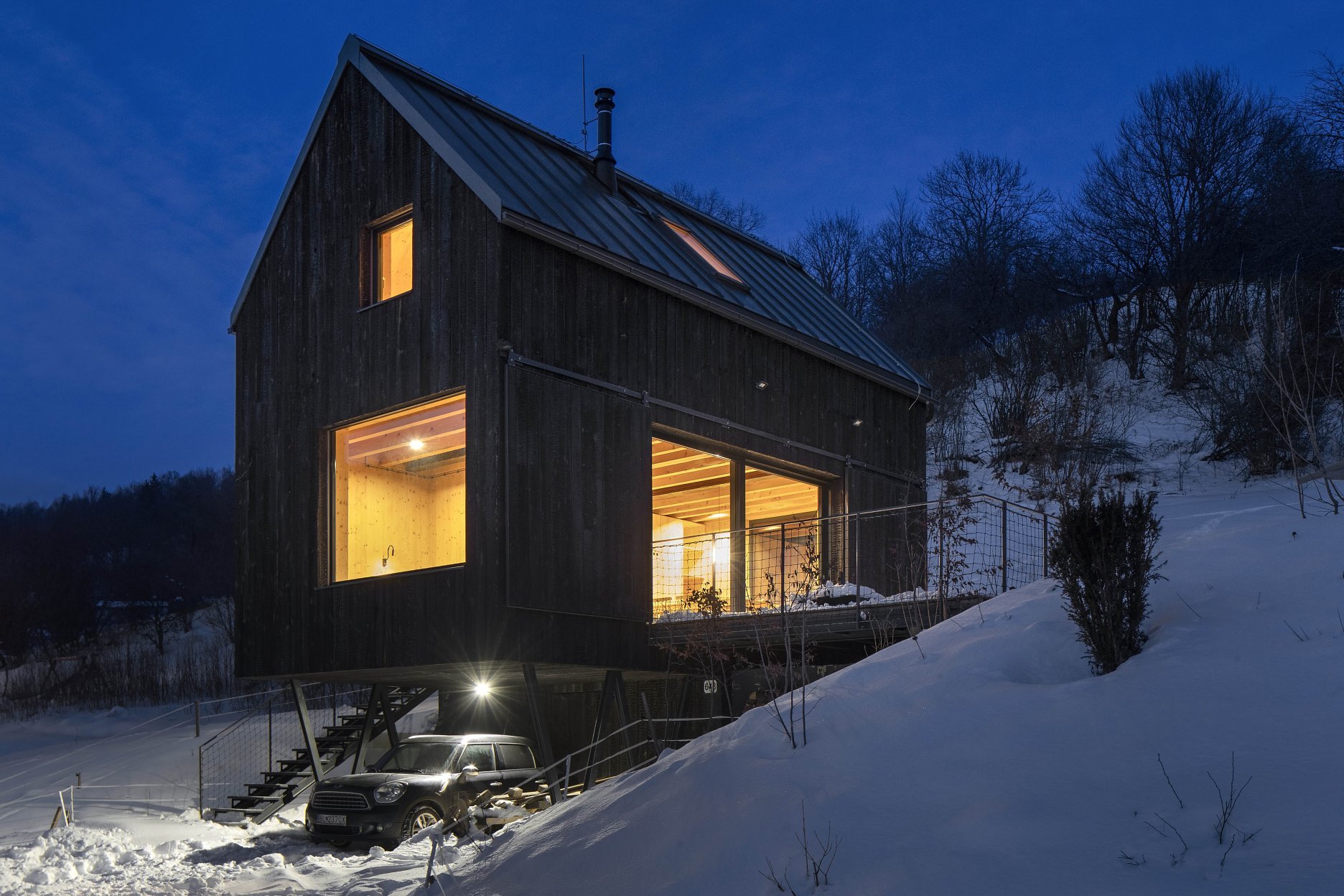 Pri večerných pohľadoch vytvára tmavý exteriér so svetlým interiérom príjemný kontrast.