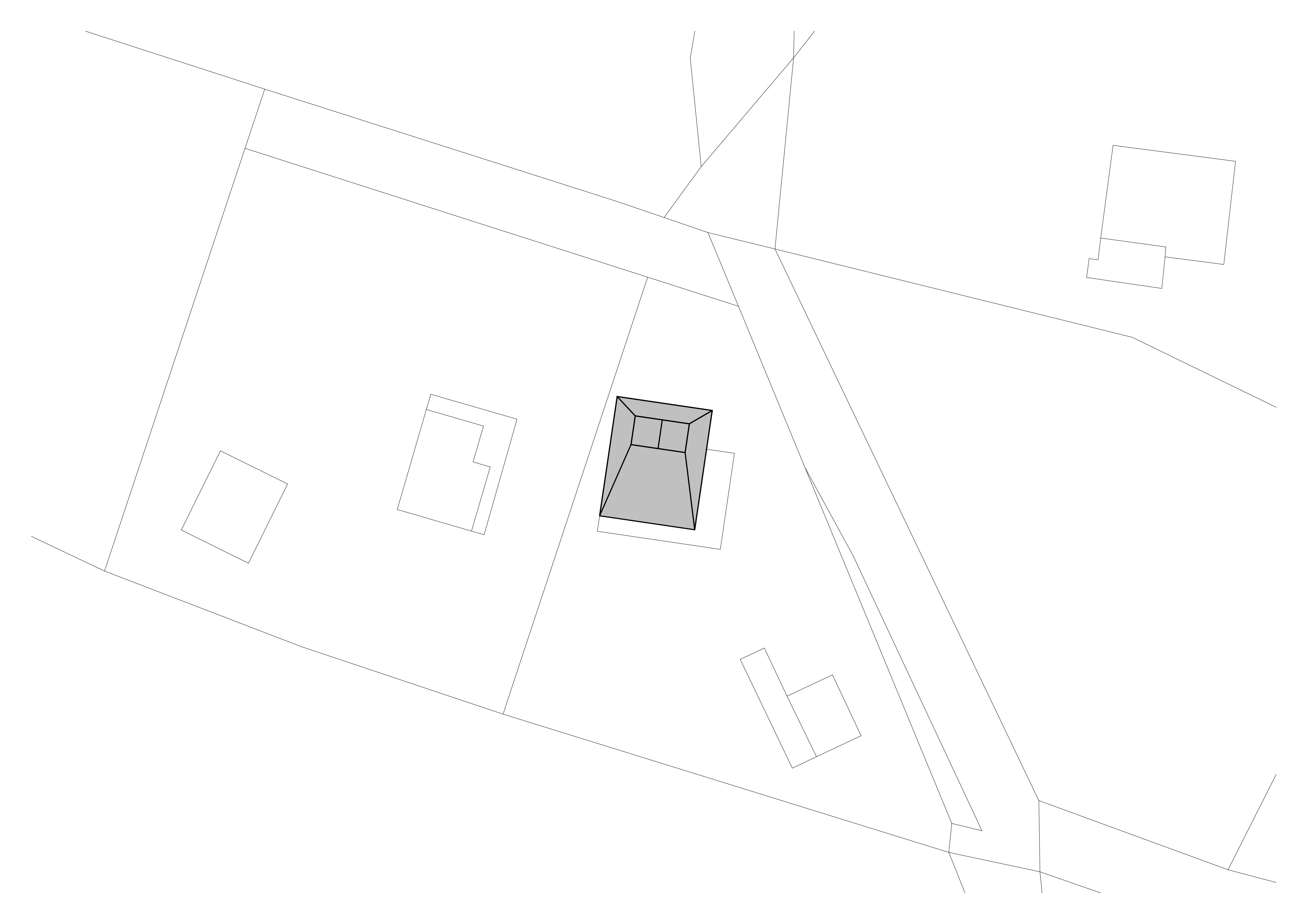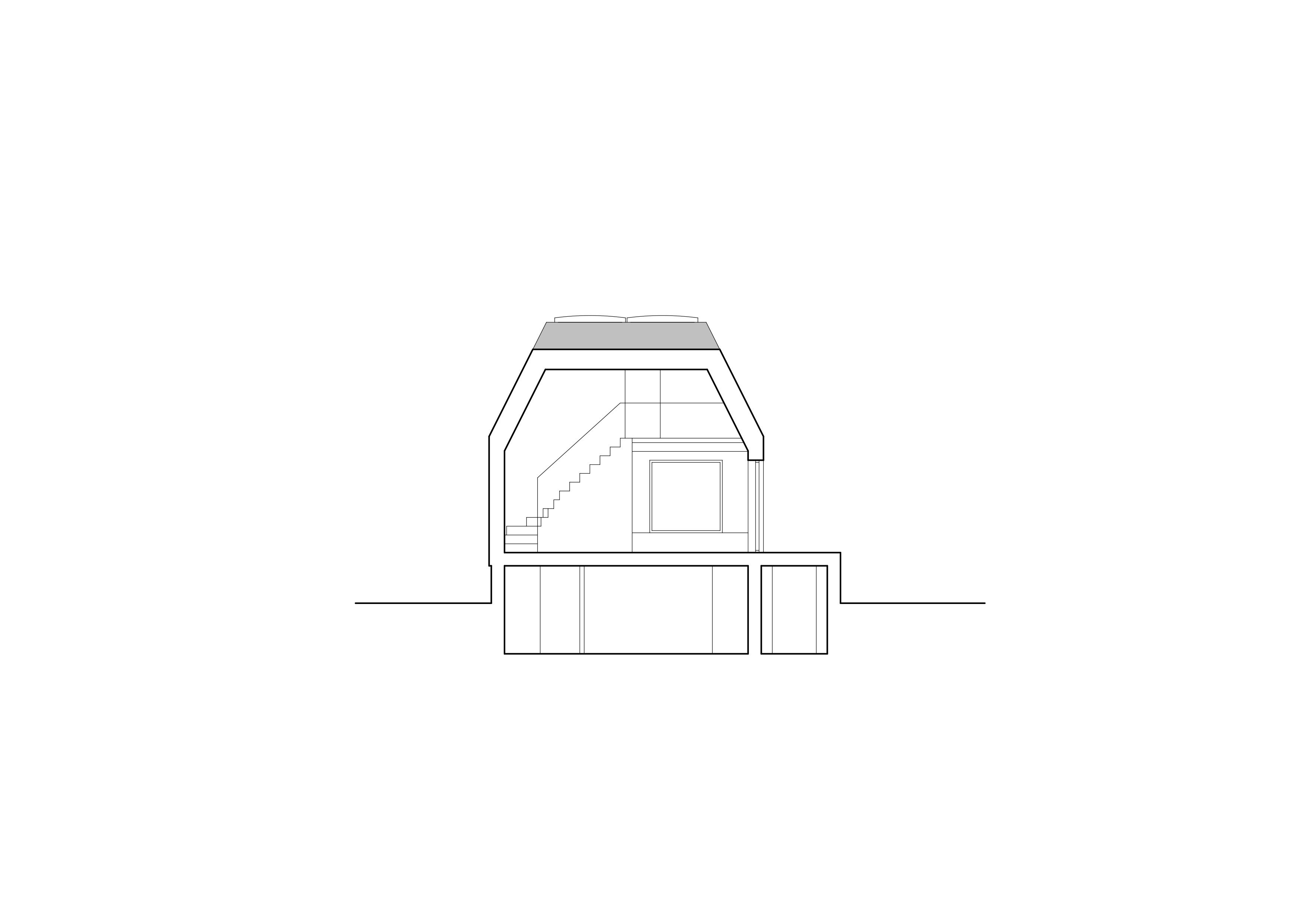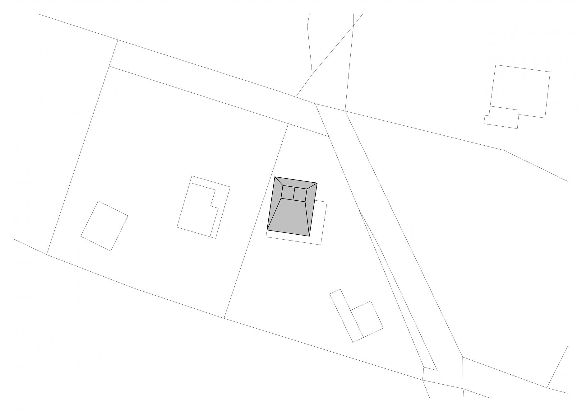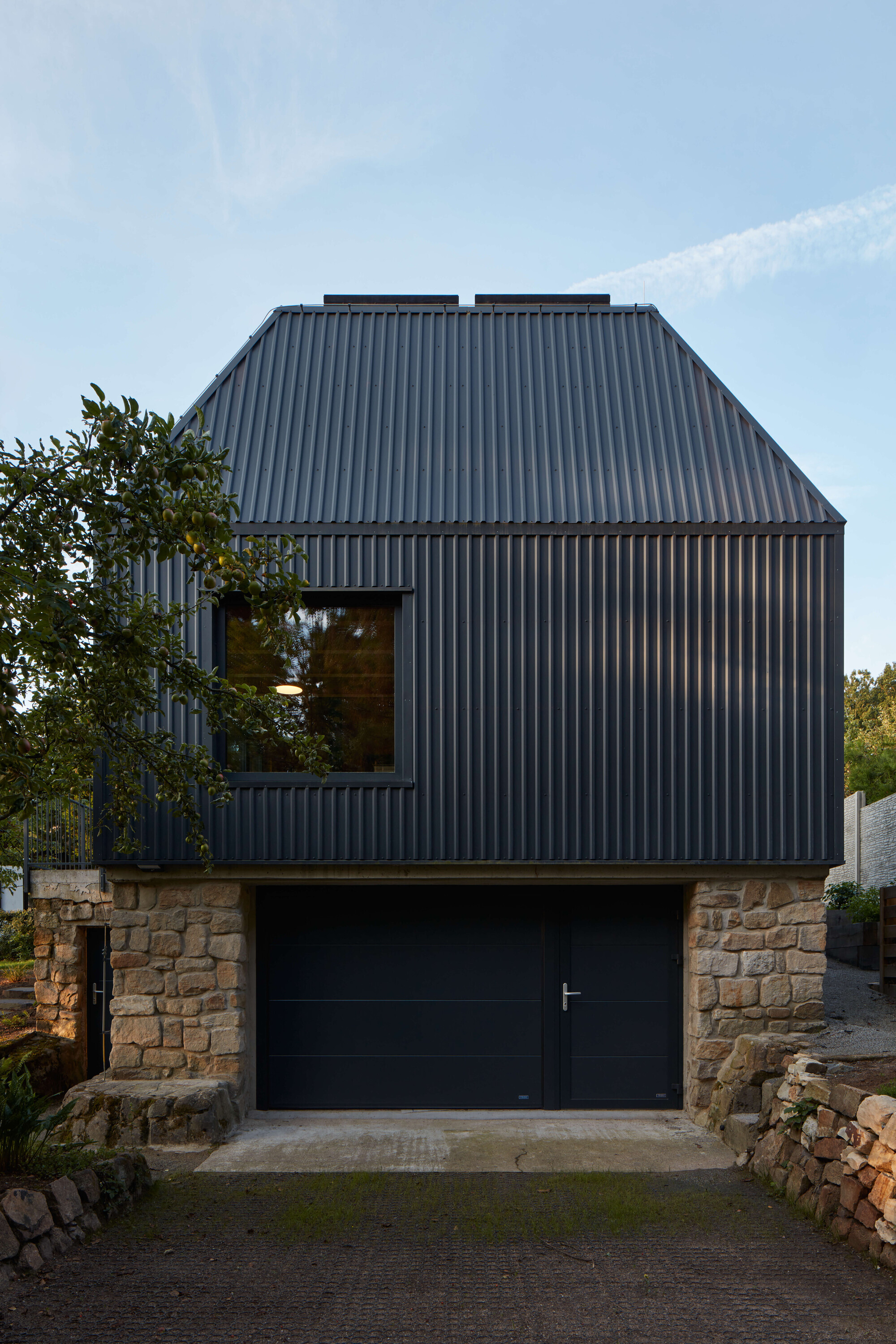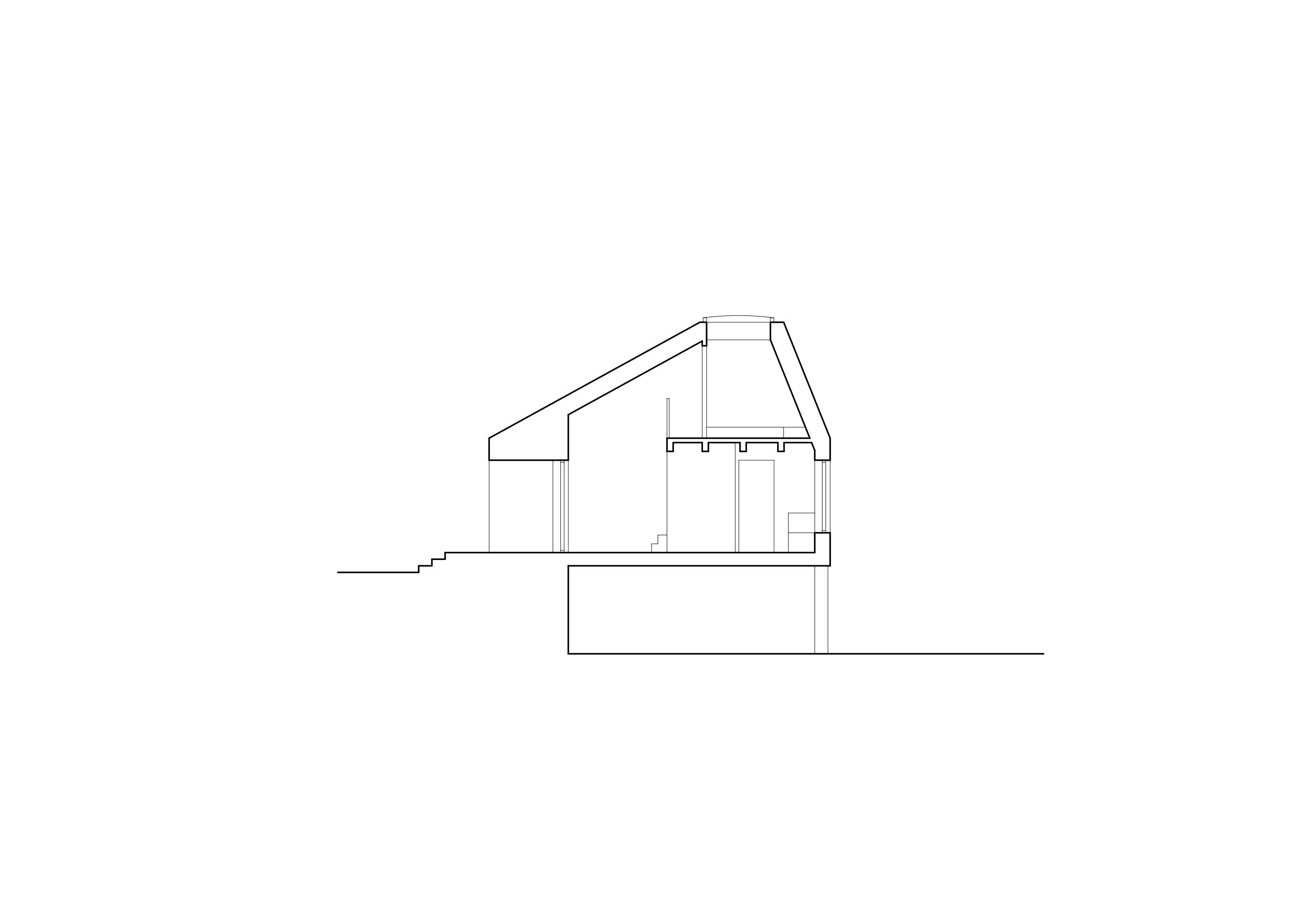 Výsledkom je kompaktný objem so "zrezanou" strechou, ktorá obmedzuje pôsobenie stavby ako bariéry voči výhľadom z okolitých pozemkov. Z pôvodnej chatky zachovali architekti len kamennú podmurovku, na ktorej stojí nová drevostavba. Stĺpiková konštrukcia je osadená na železobetónovej doske, ktorú nesú piliere ukryté za kamennými stenami. Pohľadovú vrstvu difúzne otvorenej konštrukcie zo strany exteriéru tvorí trapézový plech.