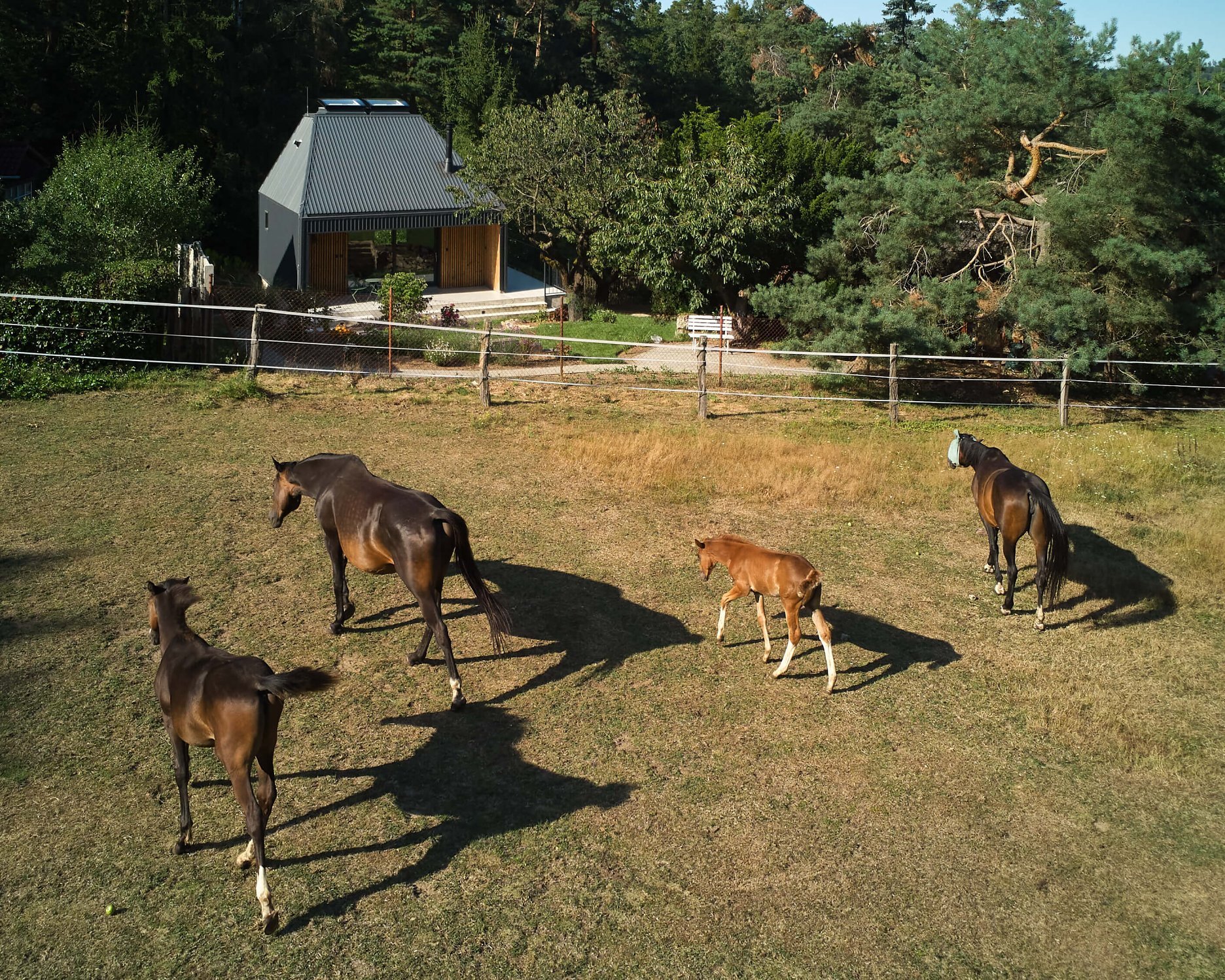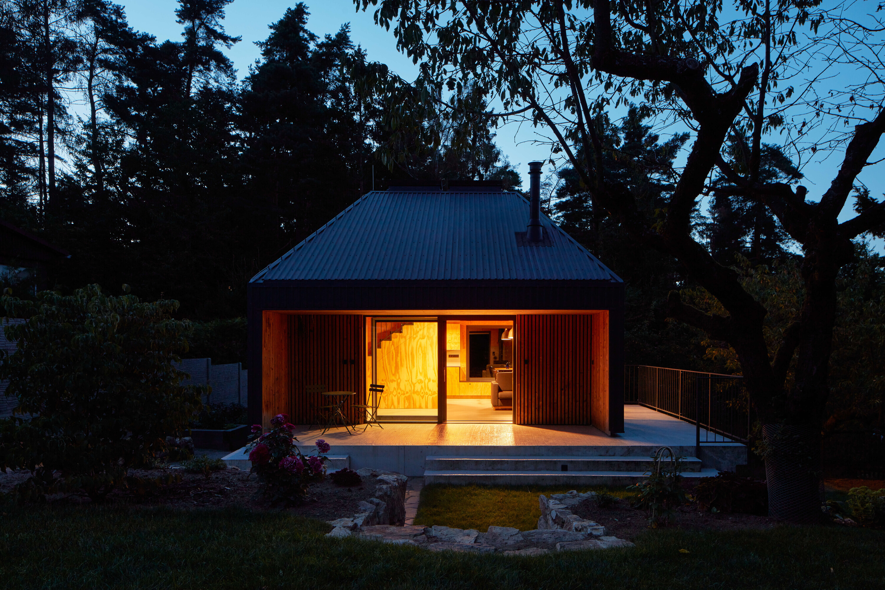 Na mieste novostavby pôvodne stála jednoduchá prízemná chatka s pivnicou a nízkou sedlovou strechou. Manželský pár z Prahy si pozemok v neďalekej rekreačnej oblasti zaobstaral pre "útek z mesta". Nielen na víkendy, ale aj na prácu z domu. Spomínaný objekt zo 70. rokov minulého storočia však nespĺňal ich predstavy o pohodlnom útočisku, prepojenom so starou záhradou. Investori si navyše želali rozšíriť prízemnú chatku o podkrovnú spálňu. Územný plán však neumožňoval novostavbu a výška bola obmedzená na 7,7 m od priľahlého terénu. Jediným riešením bola preto kompletná rekonštrukcia, ktorá objekt rozšírila, "otvorila" a zároveň splnila požiadavky úradov aj susedov.