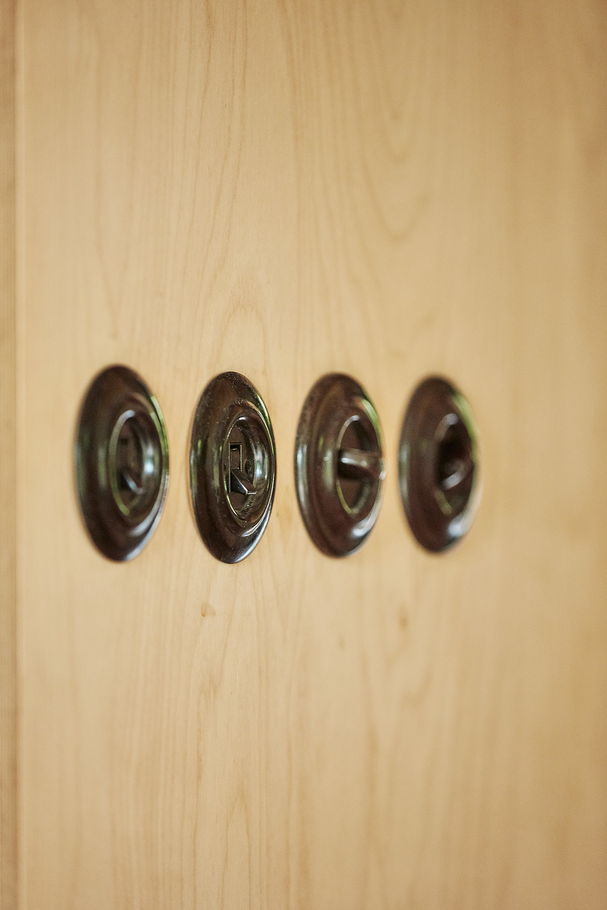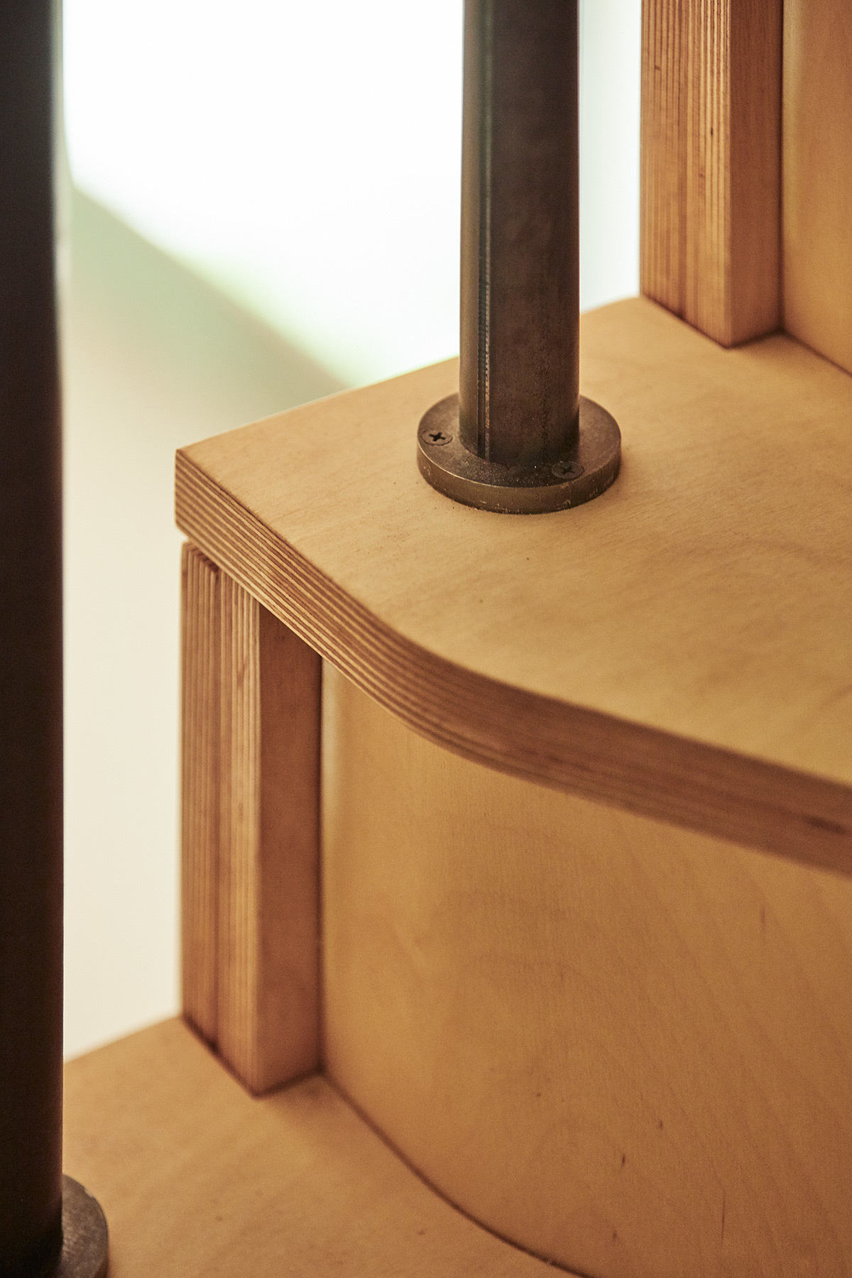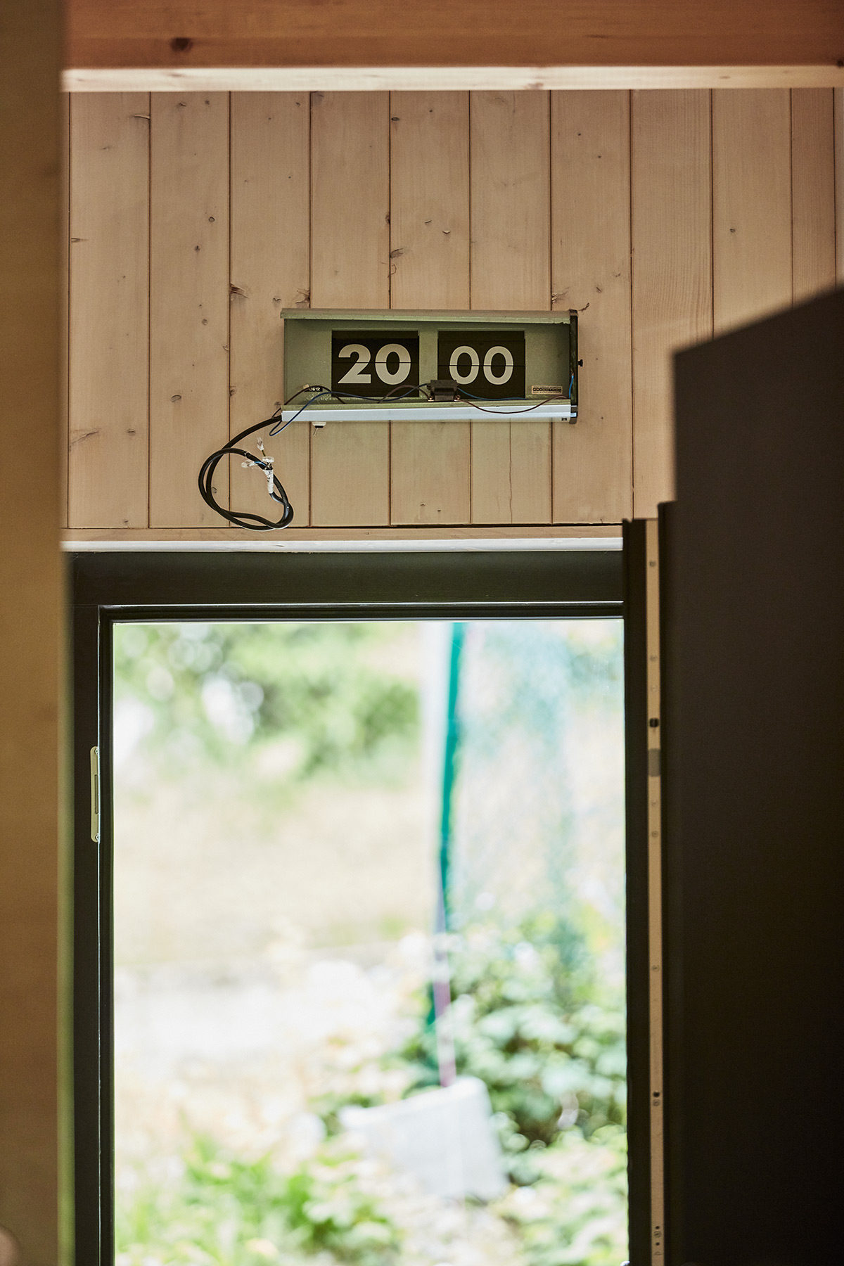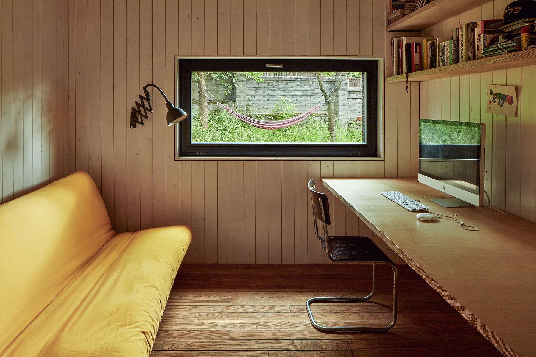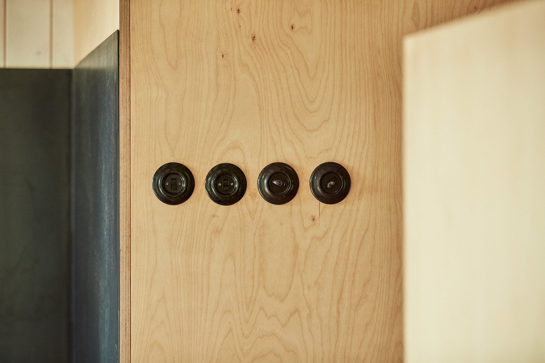 Drevená konštrukcia stavby sa materiálovo prepísala aj do stvárnenia interiéru. Dubové podlahy dopĺňajú povrchy stien zo smrekovej palubovky, ošetrené bielou lazúrou. Nábytok navrhli architekti z brezovej preglejky. Dvere, okná, svietidlá, vypínače, zábradlia a ďalšie prvky sú čierne. Dom vrátane interiéru sa podarilo zrealizovať podľa pôvodnej koncepcie.