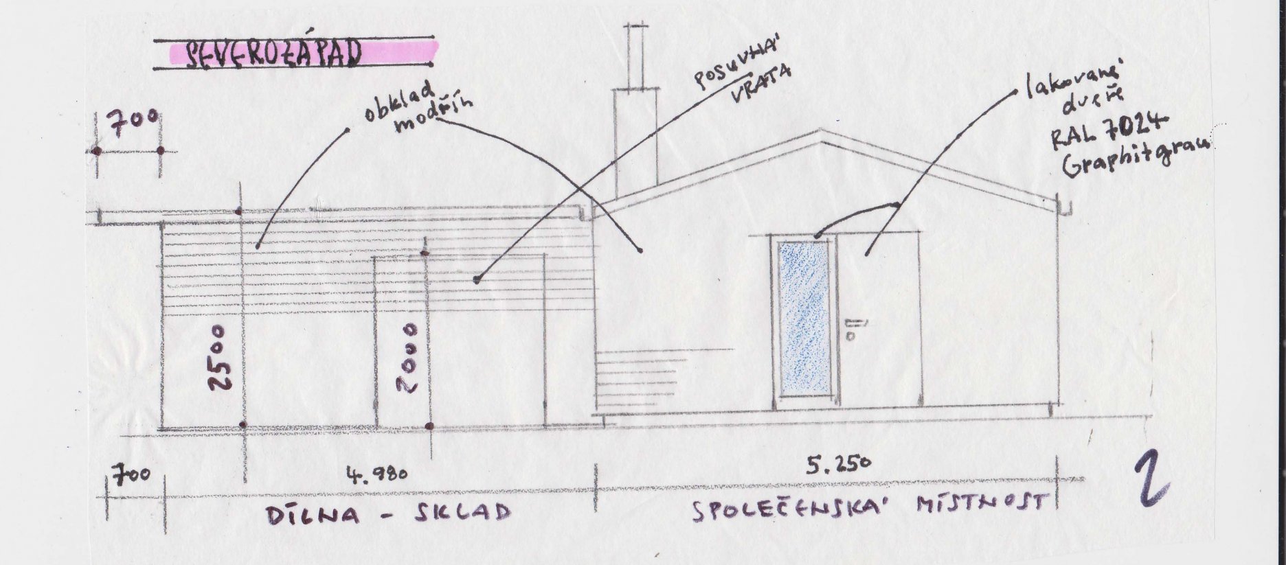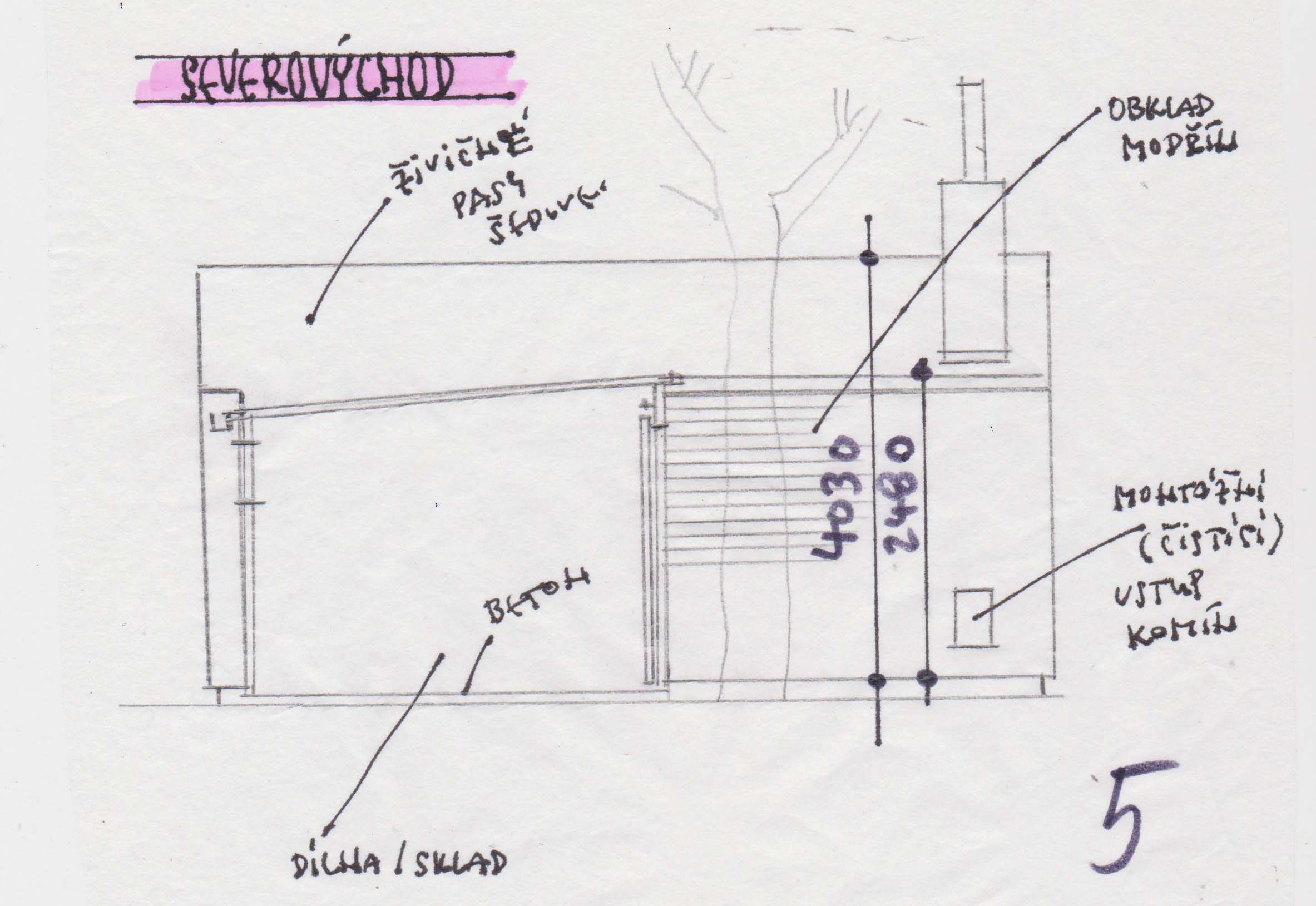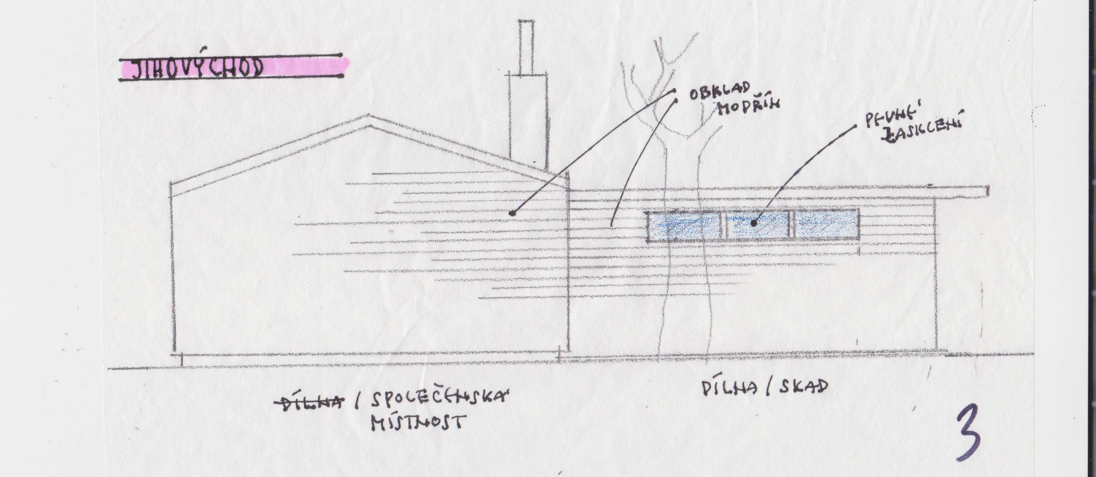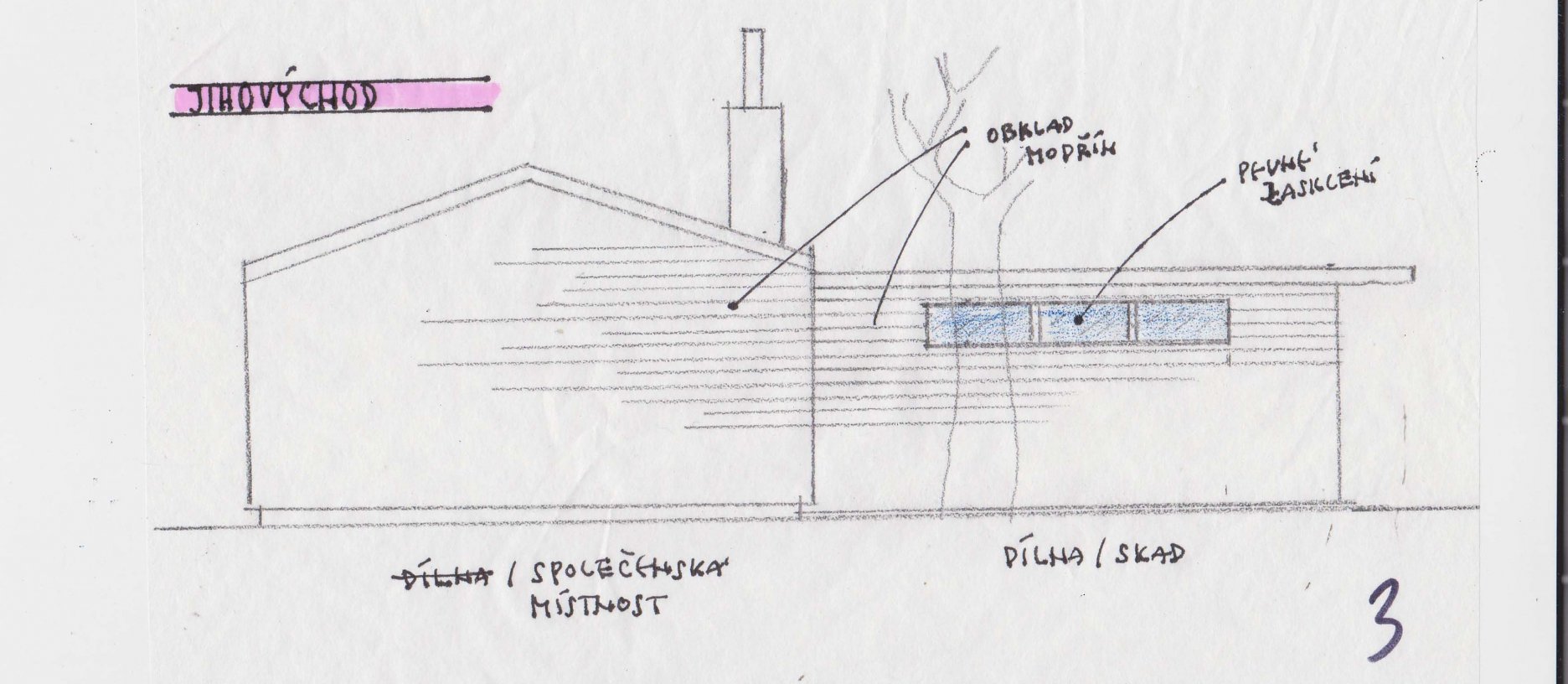Z bývalej dielne architekti vytvorili príjemný a užitočný priestor. Záhradný domček z 80. rokov minulého storočia slúžil nadšenému majstrovi. Jeho základ tvorí oceľová konštrukcia, ktorá bola vyplnená betónovými tvárnicami. Bol sem privedený prúd a kúrilo sa v liatinových kachliach. Aj napriek odporúčaniam remeselníkov stavbu zbúrať sa architekti rozhodli využiť kostru pôvodnej stavby.