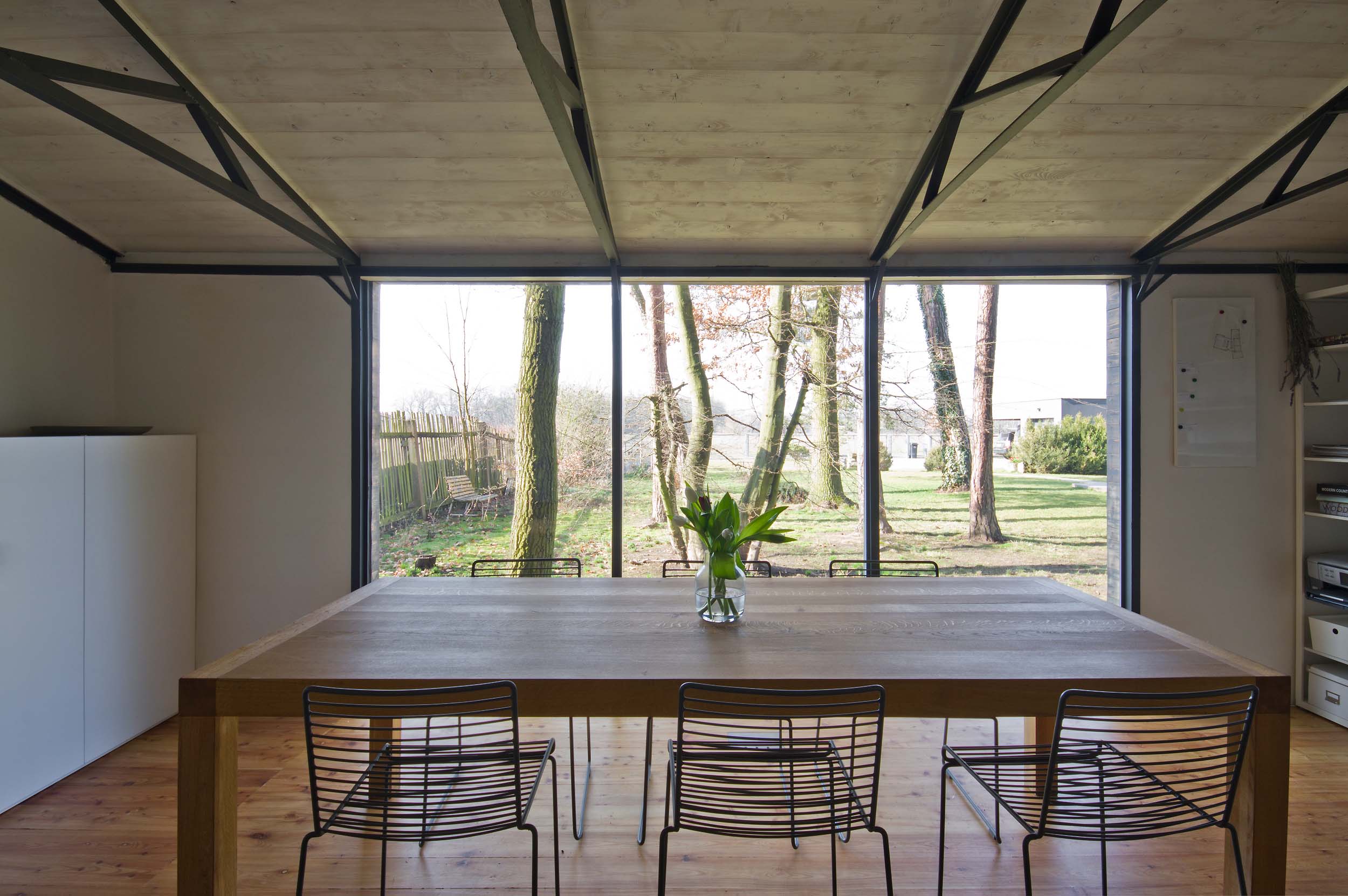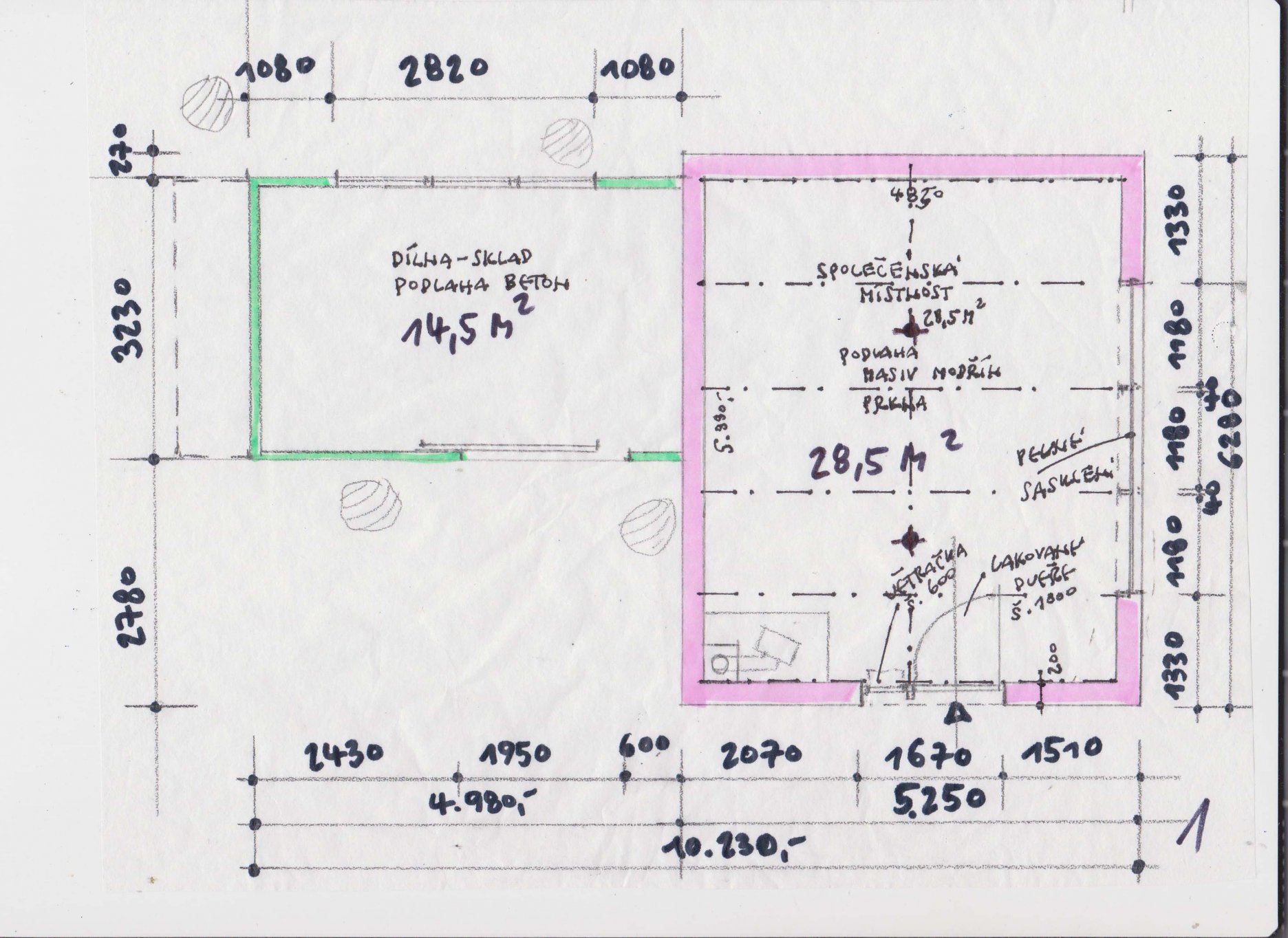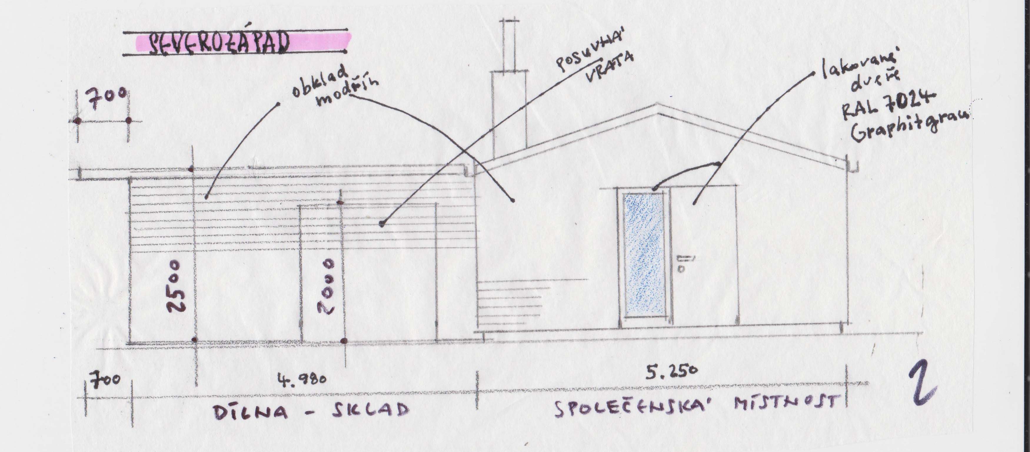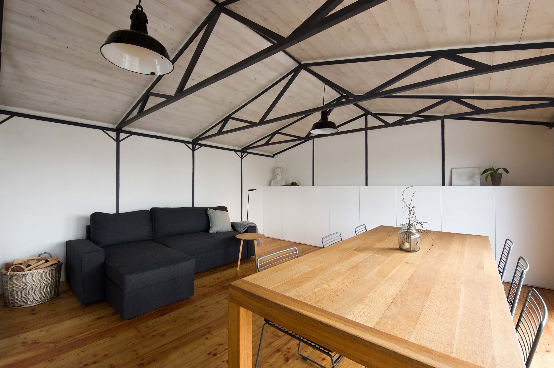 Z bývalej dielne architekti vytvorili príjemný a užitočný priestor. Záhradný domček z 80. rokov minulého storočia slúžil nadšenému majstrovi. Jeho základ tvorí oceľová konštrukcia, ktorá bola vyplnená betónovými tvárnicami. Bol sem privedený prúd a kúrilo sa v liatinových kachliach. Aj napriek odporúčaniam remeselníkov stavbu zbúrať sa architekti rozhodli využiť kostru pôvodnej stavby.
