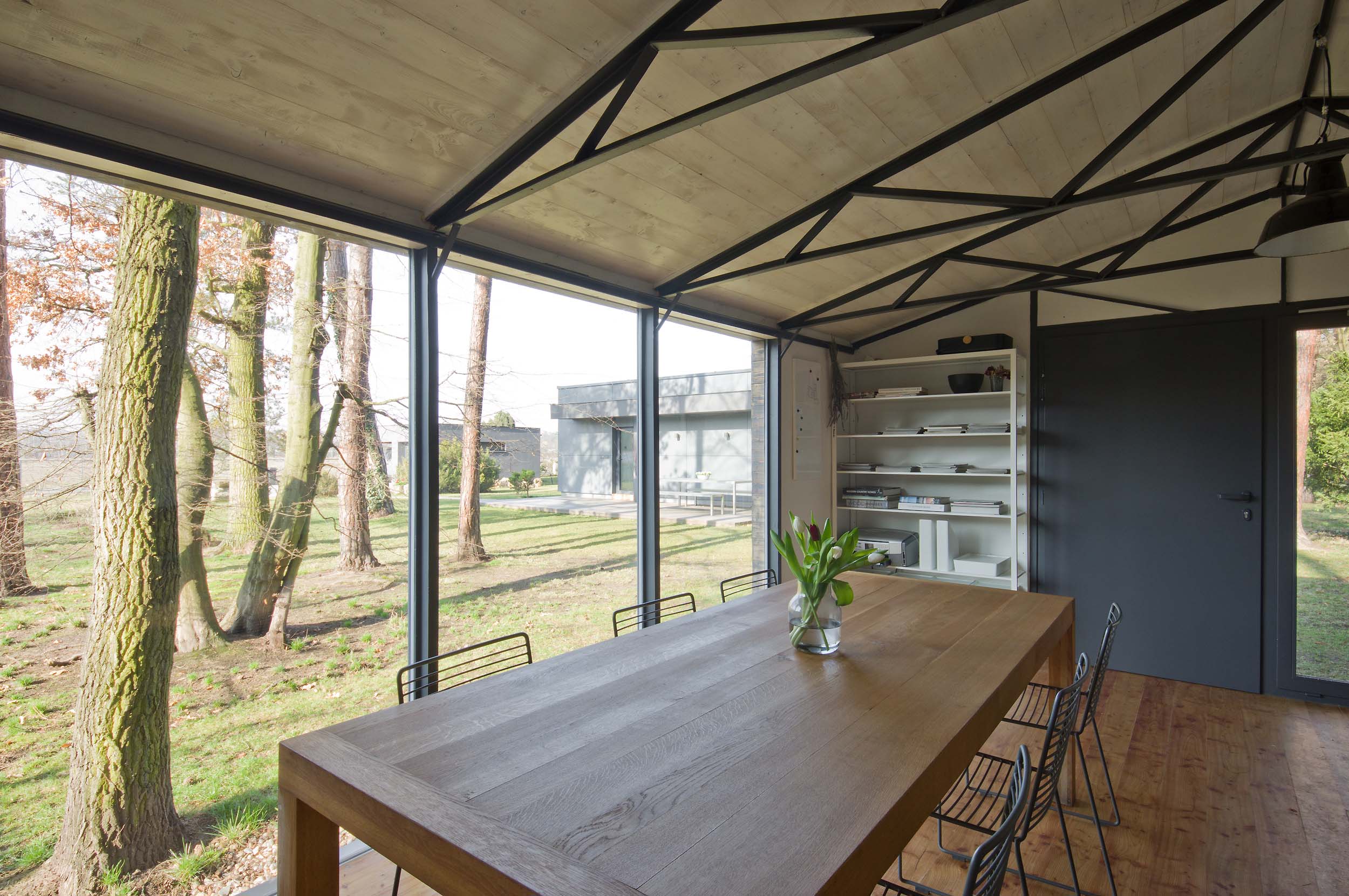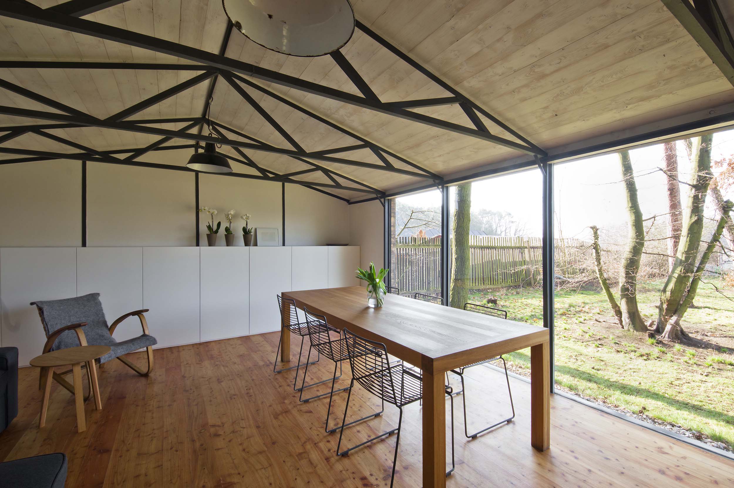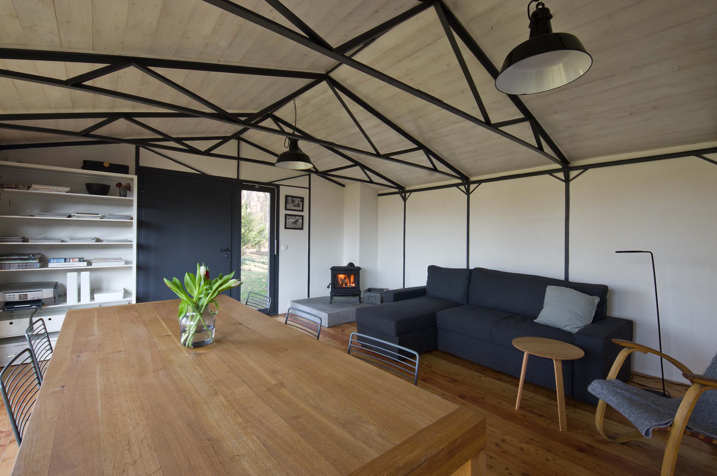 Miestnosť teraz slúži ako pracovňa, jedáleň pre väčšiu spoločnosť, útočisko pre prípad dažďa pri vonkajšom grilovaní a ako spálňa pre hostí. Teplo z kachlí a veľké okná do záhrady vytvárajú priestor, ktorý sa stal veľmi obľúbeným miestom stretávania rodiny a priateľov.
