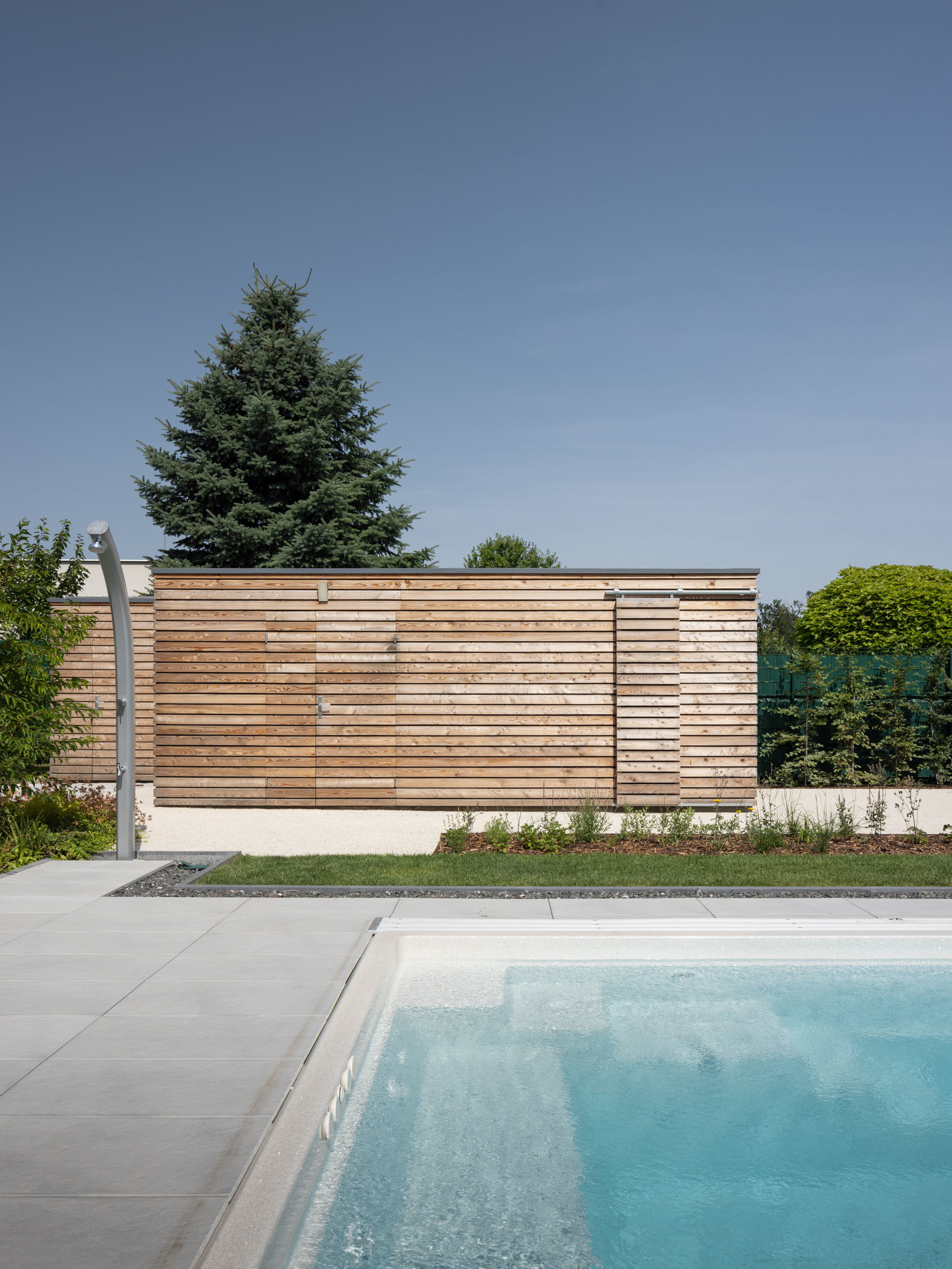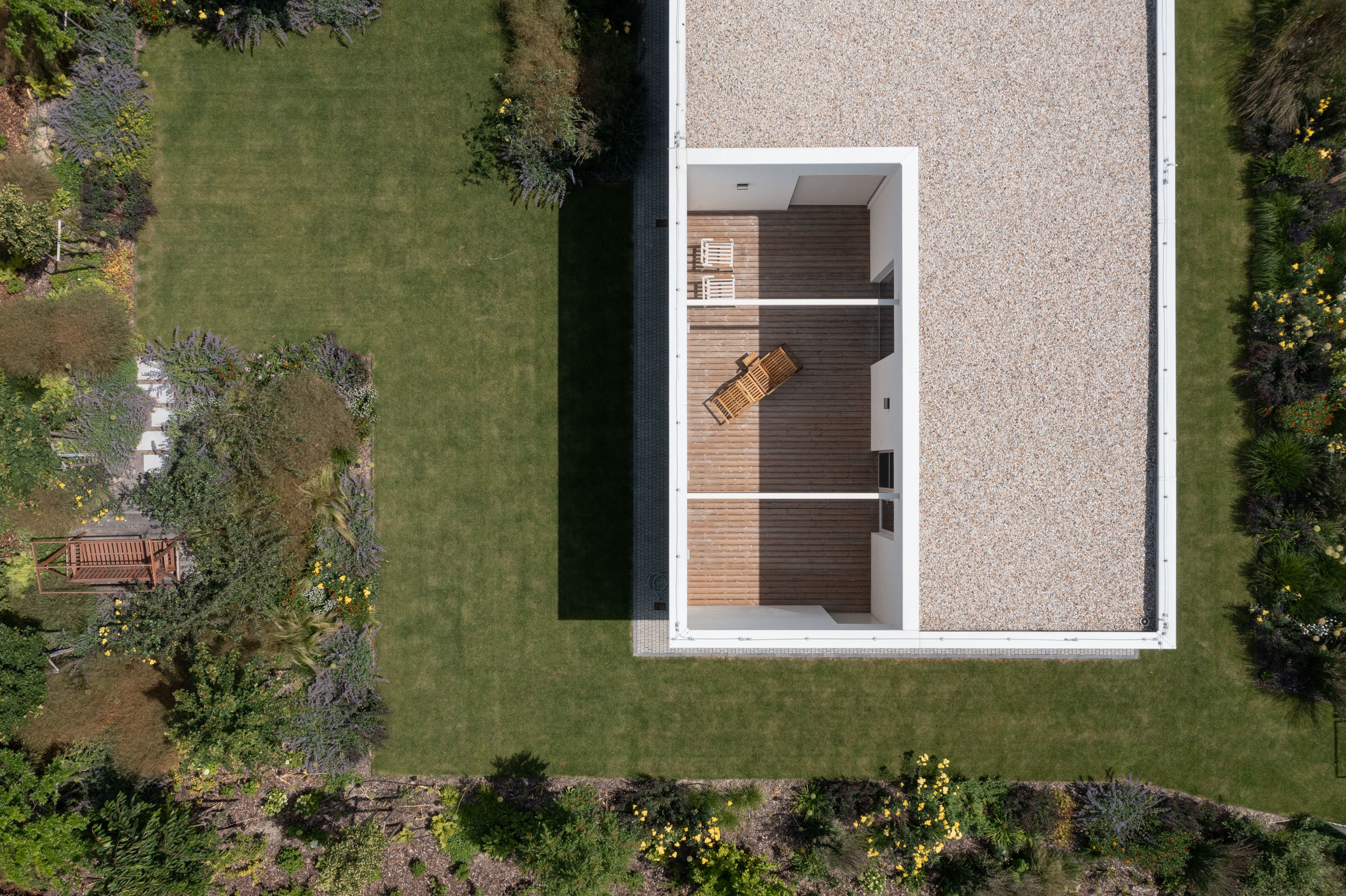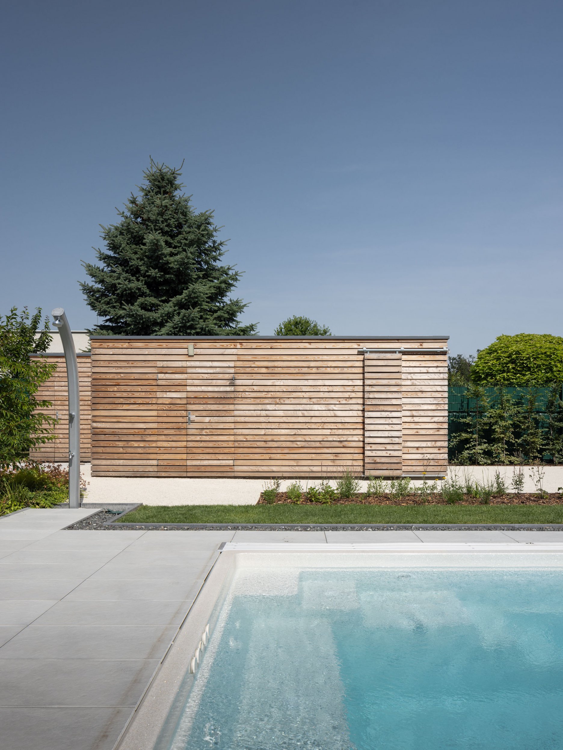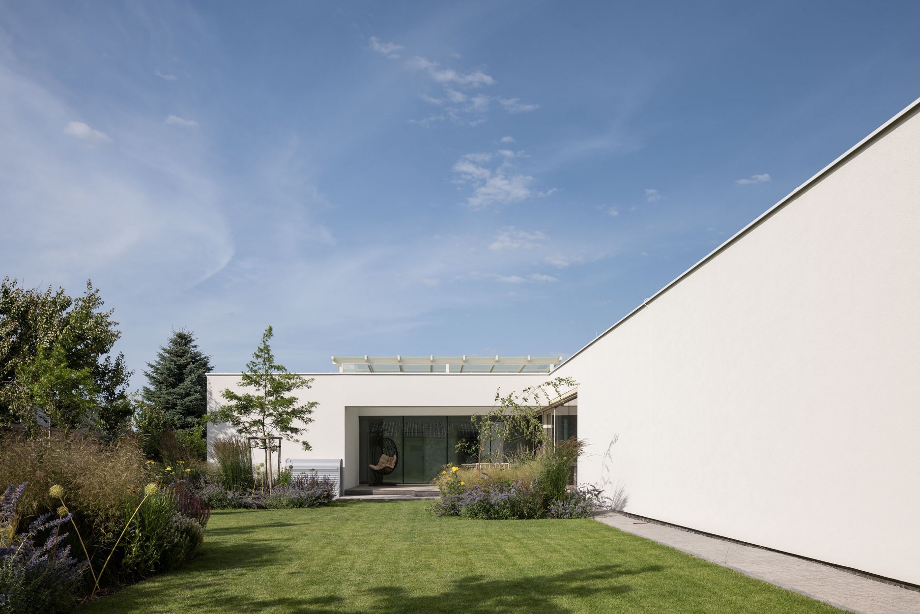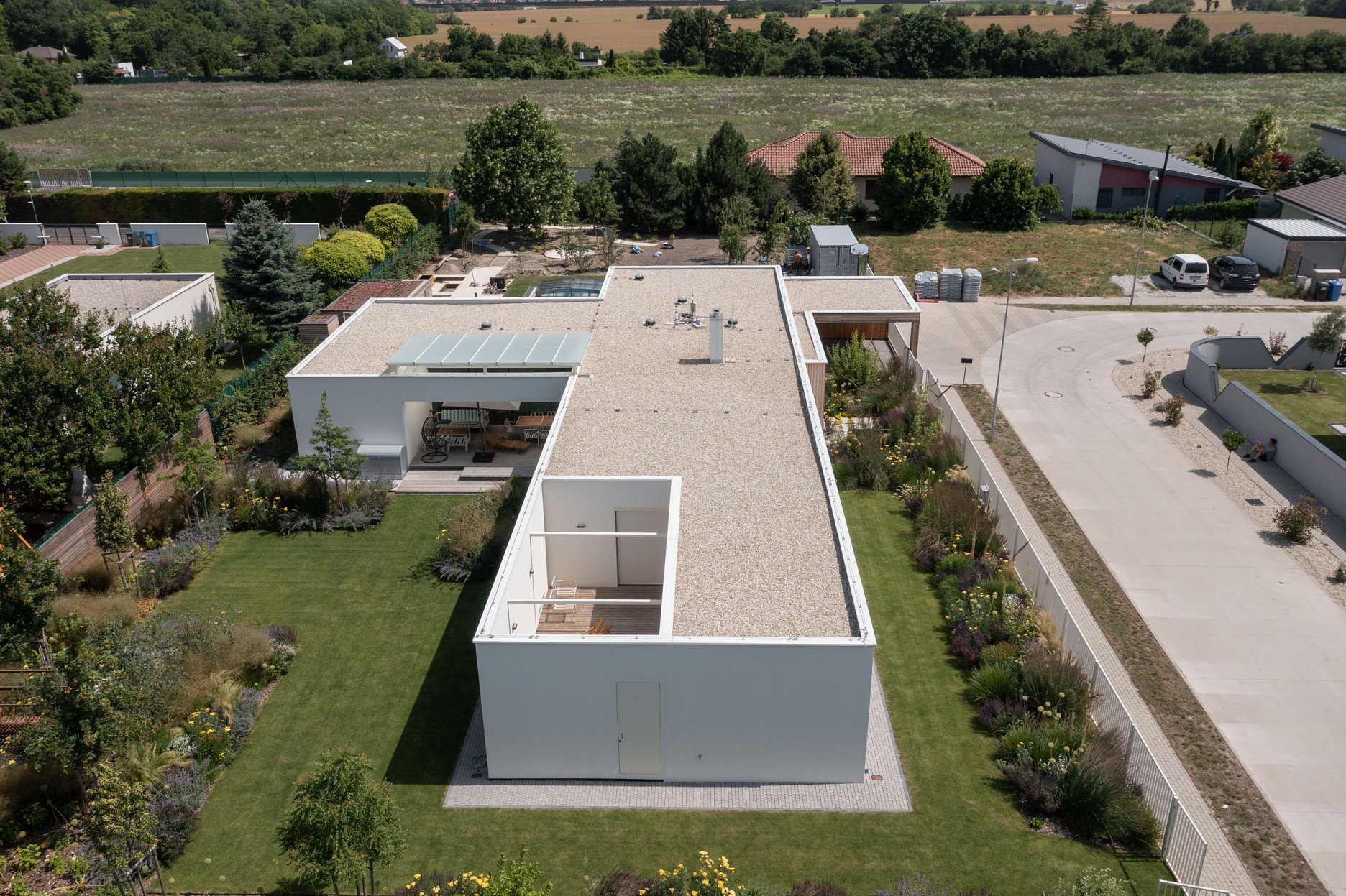 Jednopodlažný objekt na rovine, s bezbariérovovou prevádzkou na jednej úrovni a priamym prepojením na priľahlý pozemok. Strohé výrazové prostriedky, jednoduchá ortogonálna forma, drevo, biela farba a zeleň na záhrade - vytvárajú predpoklady pre príjemné, neokázalé, nadčasové bývanie.