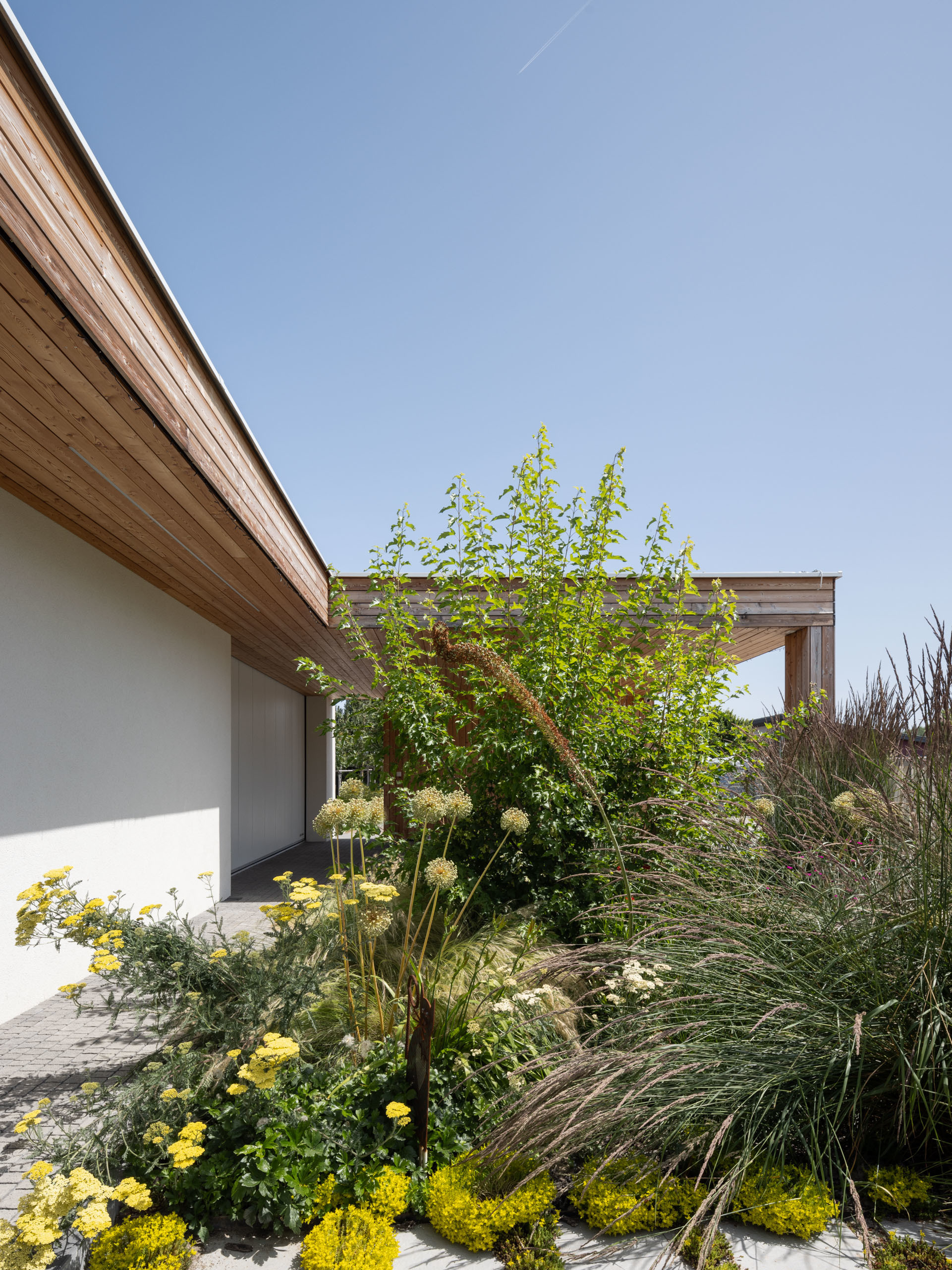 Drevená stĺpikova konštrukcia a kvalitný energetický koncept redukujú uhlíkovú stopu realizovaného riešenia.