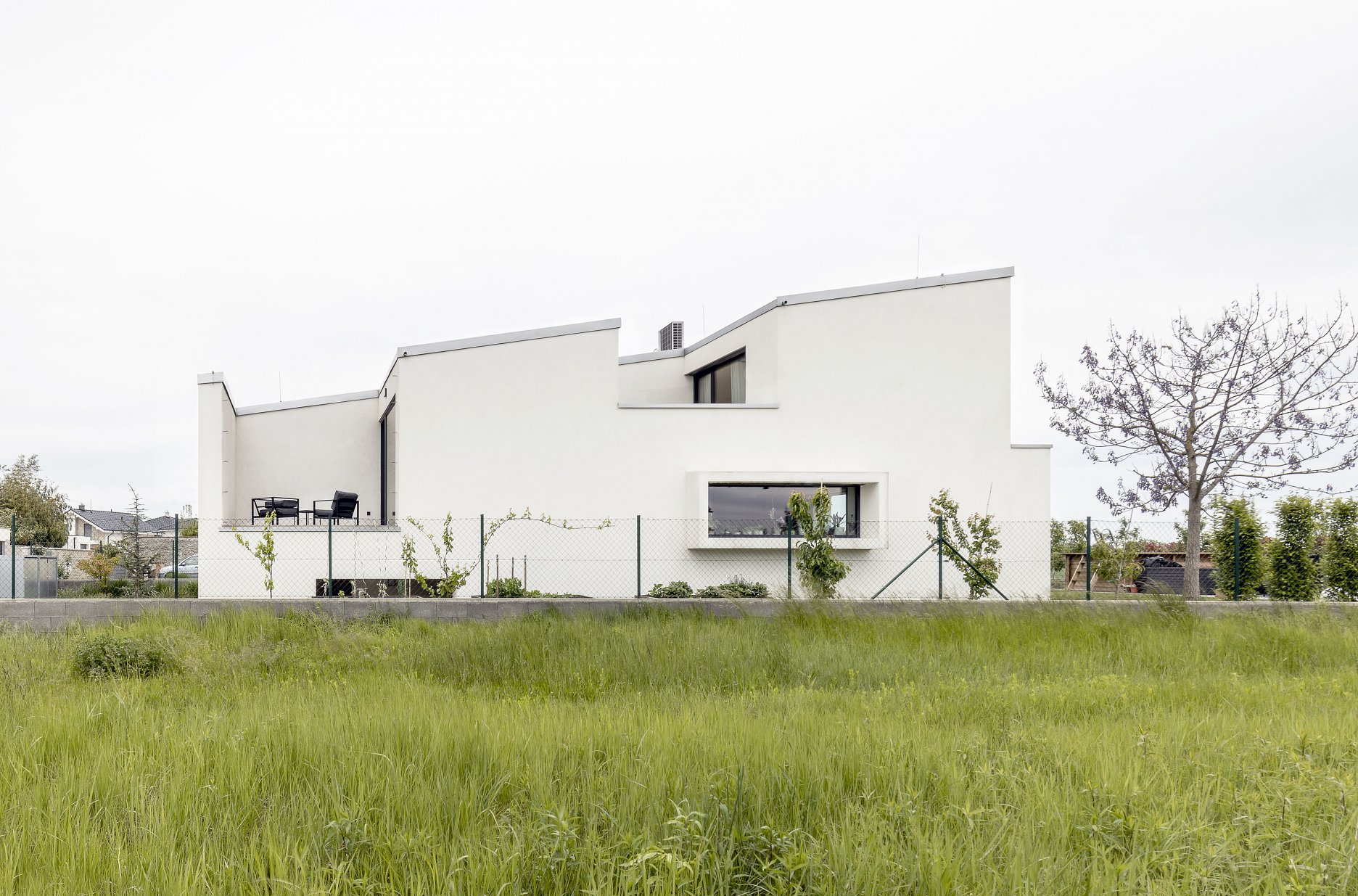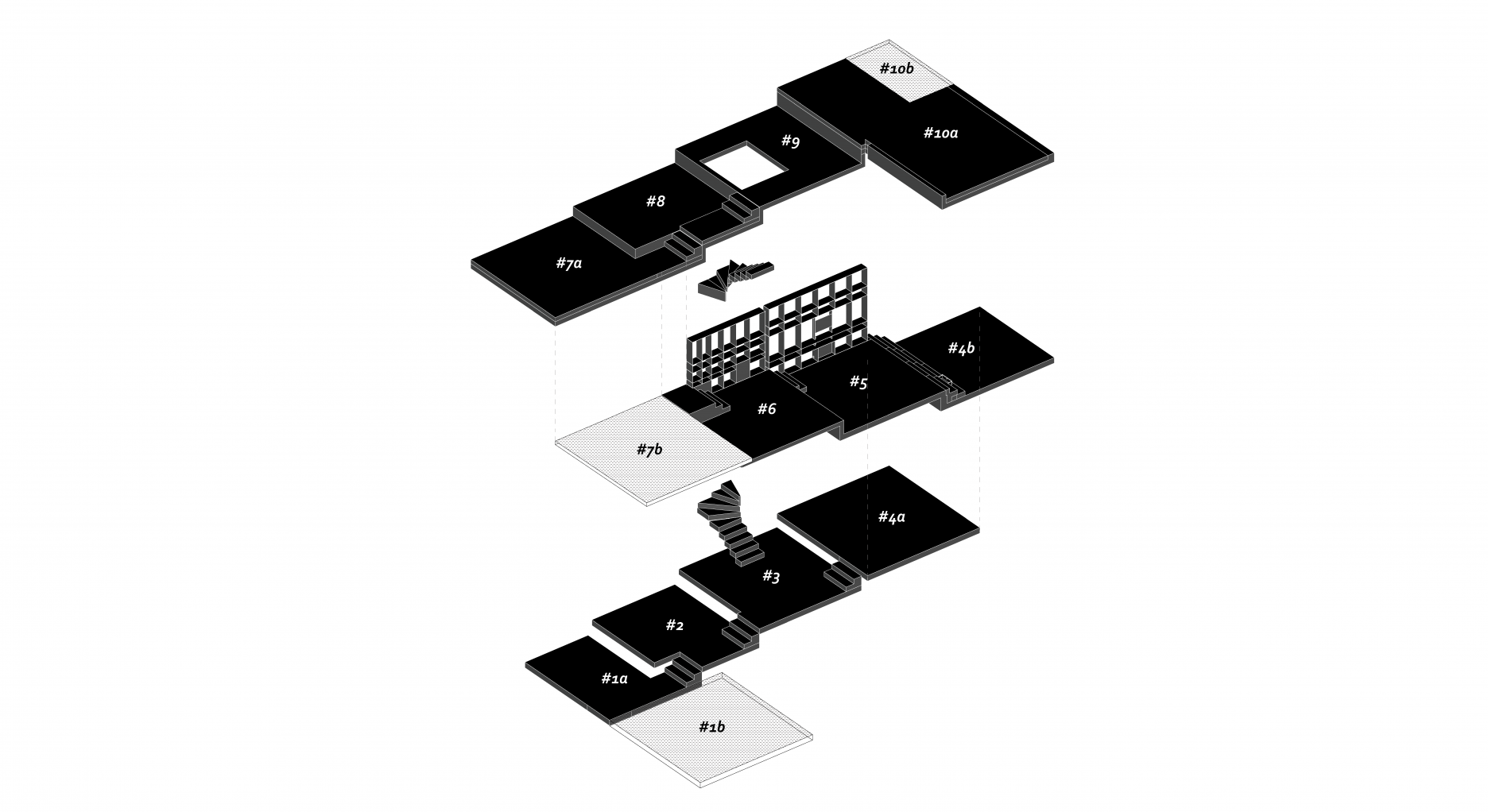 Dom 10plošín je ďalším zo série objektov v ktorých hľadáme a testujeme stratégiu, ako vytvoriť nielen dom, ale aj komplementárnu krajinu pripojenú na prostredie, parcely a záhradu. Miestne podmienky sú skromné a limitované umiestnením domu na hrane kobercovej zástavby a veľkokapacitne obhospodarovanej poľnohospodárskej produkčnej plochy.