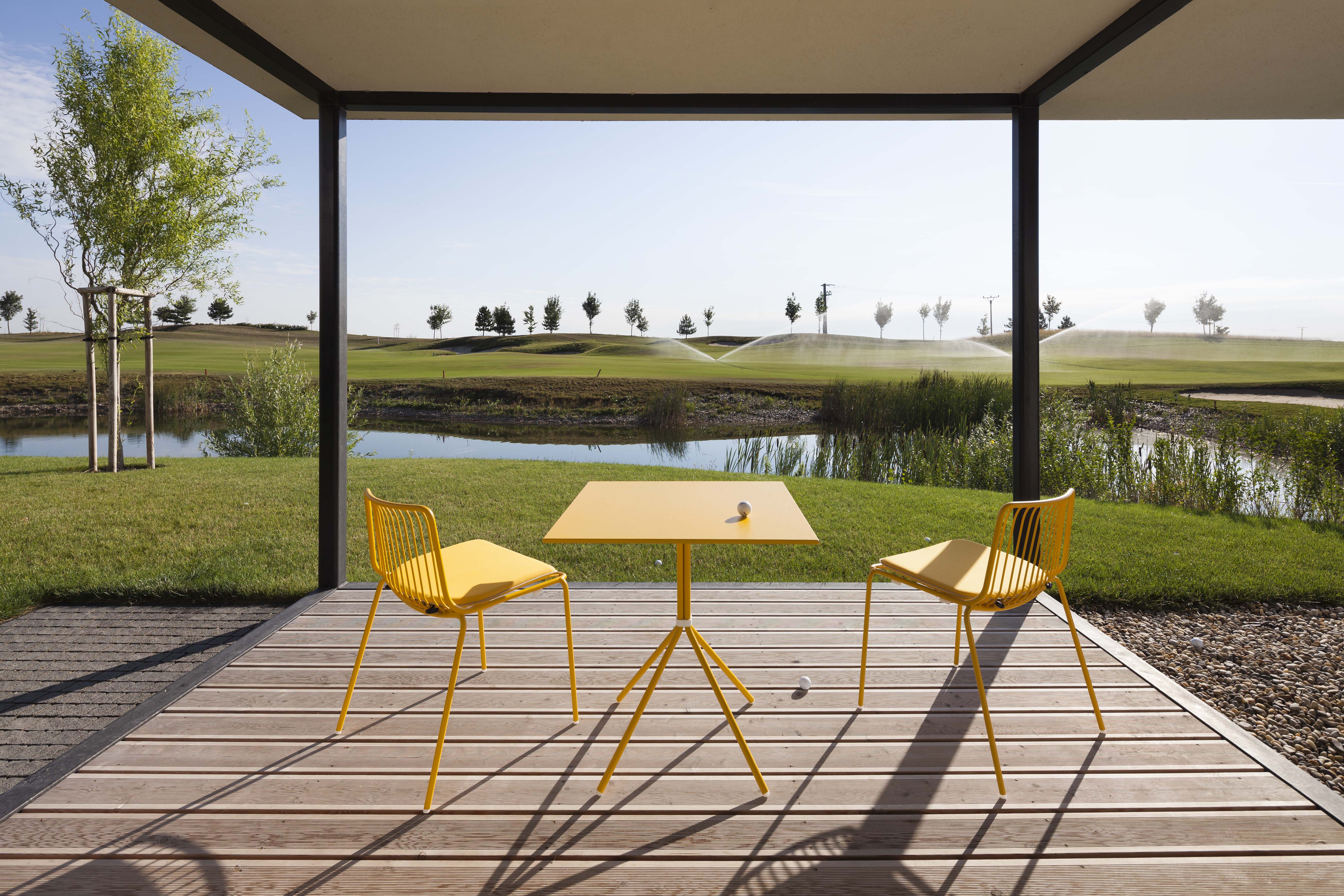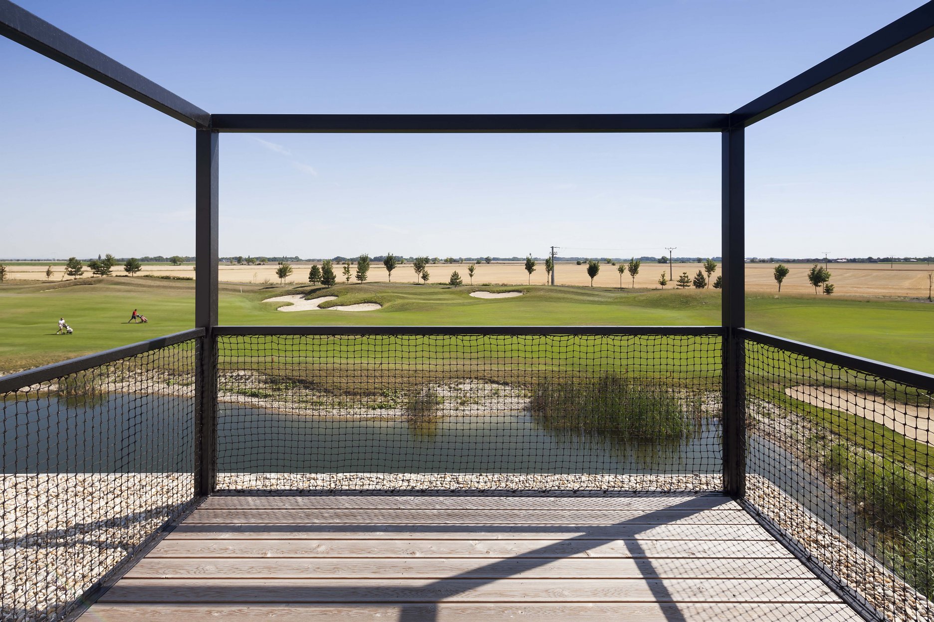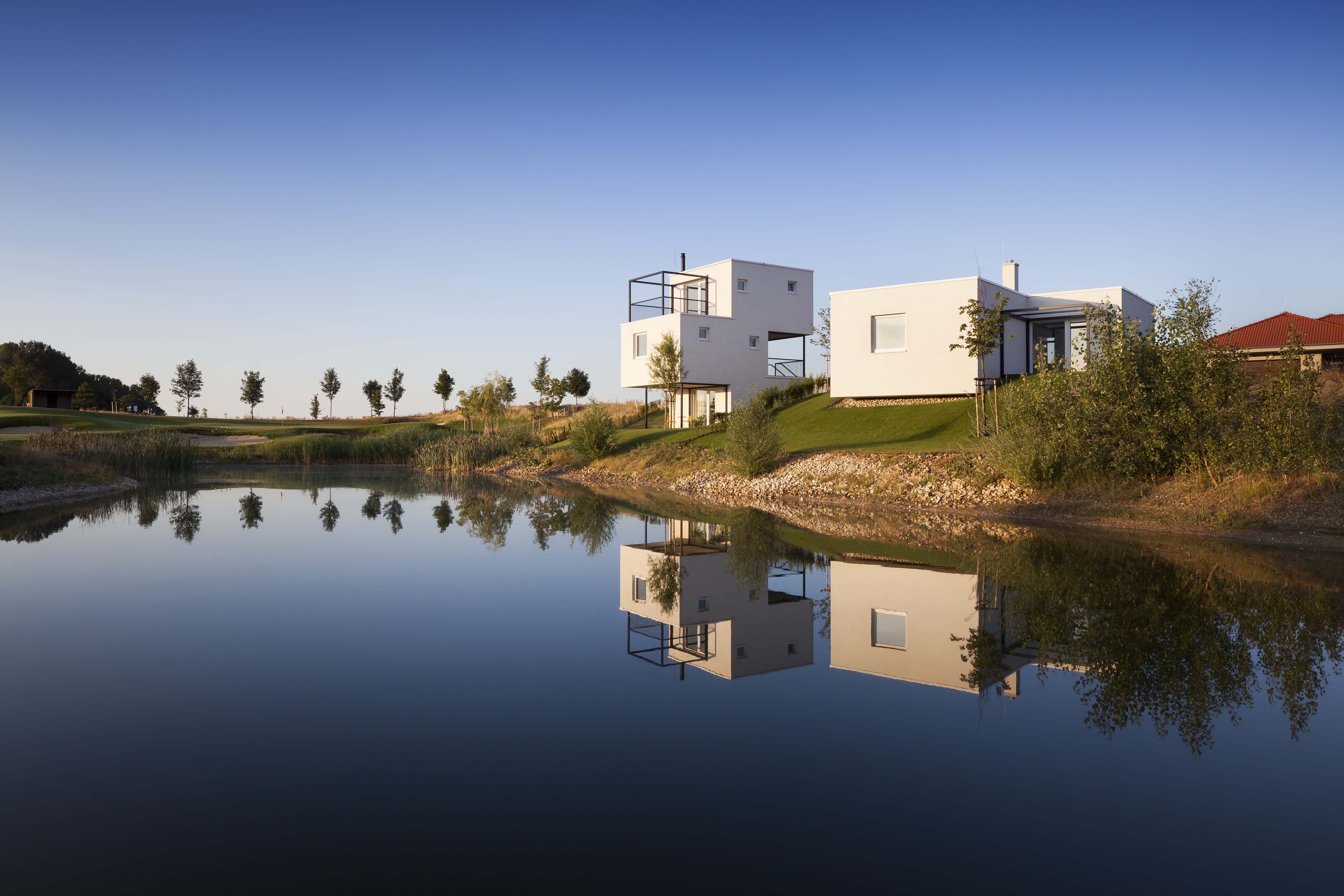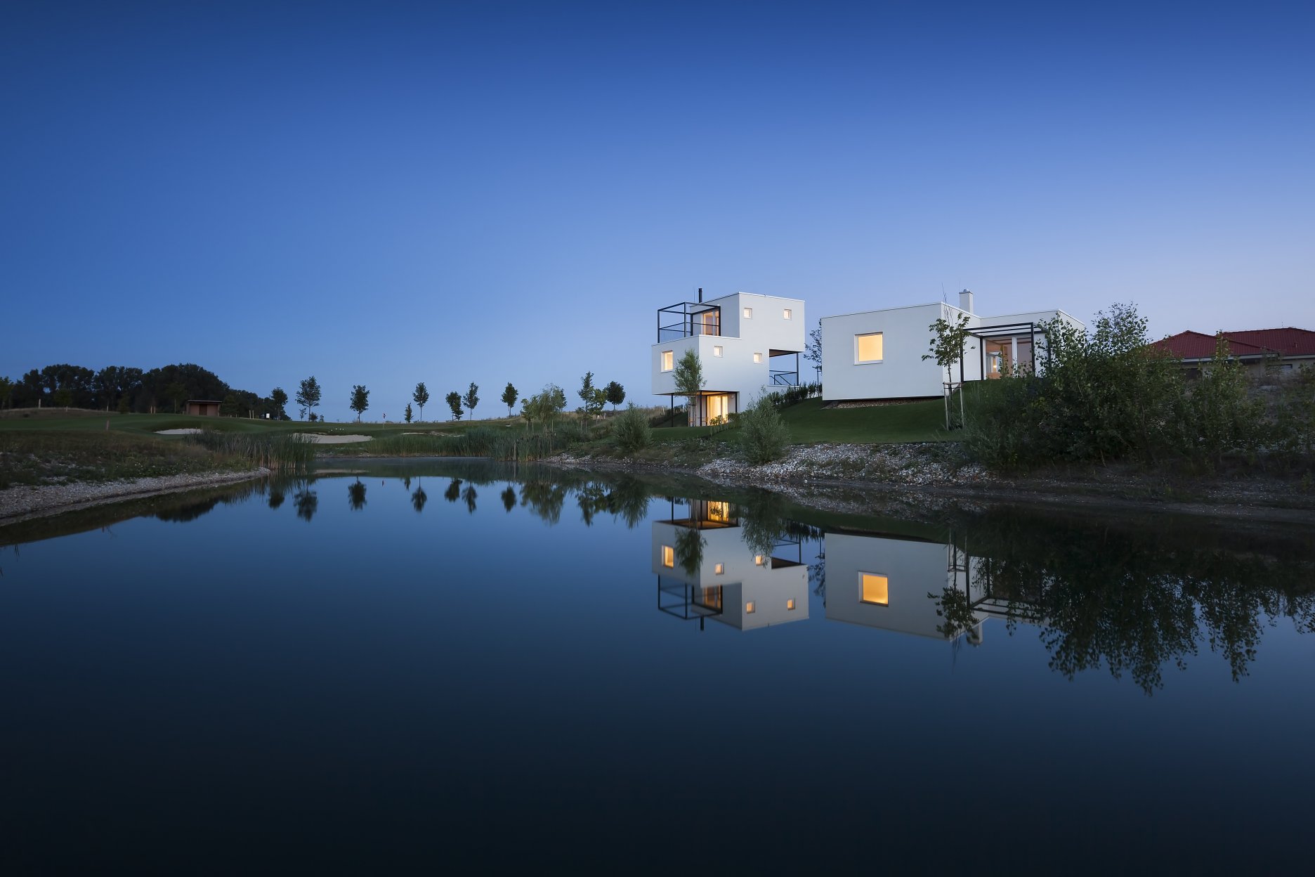 Pred časom sme predstavili dom “B”, prvý z dvoch objektov v areáli golfového rezortu v Hrubej Borši. Dnes sa k projektu vraciame. Ide o koncept rodinného (víkendového) bývania, zredukovaného na komfortné minimum za účelom minimálnej starostlivosti - náročnosti na energie, čas a náklady. Malé ergonomické domy sa dajú prirovnať k trojizbovému bytu. Projekt vznikol ako iniciatíva architektov z ateliéru Endorfine. Lokalita nie je náhodná, keďže autori sú vášniví golfisti :). Miesto je zaujímavé tým, že aj po čase zostane nezastavané a neuzavreté. Ide do istej miery o experiment. Architekti v tomto prípade neboli obmedzení požiadavkami, ani zadaním konkrétneho klienta. Chceli si overiť, či je možné postaviť za cenu trojizbového bytu v Bratislave porovnateľný dom na hodnotnom pozemku. Aj preto tu nevznikol žiaden väčší dom. Ide o overenie dvoch rôznych priestorových konceptov.