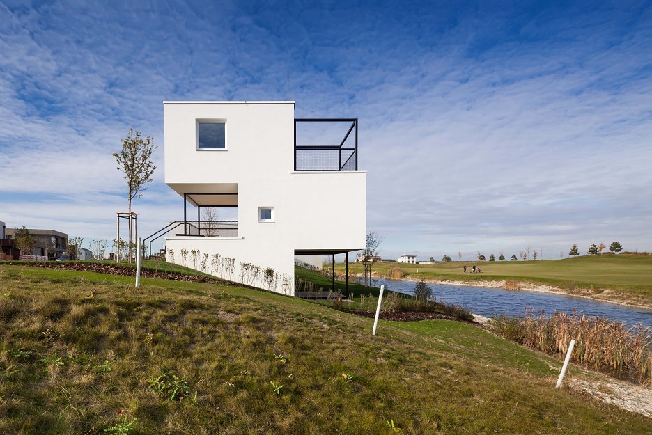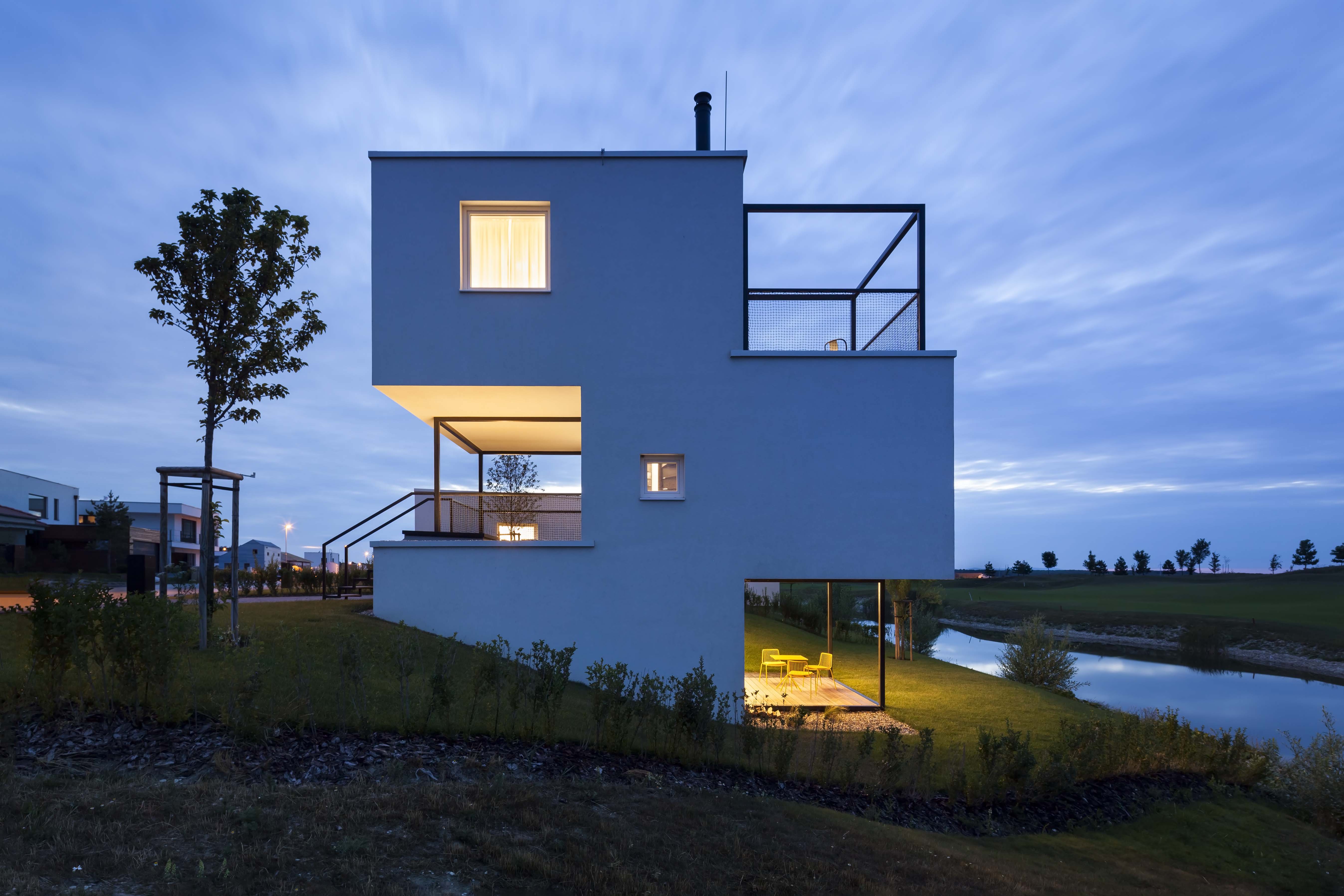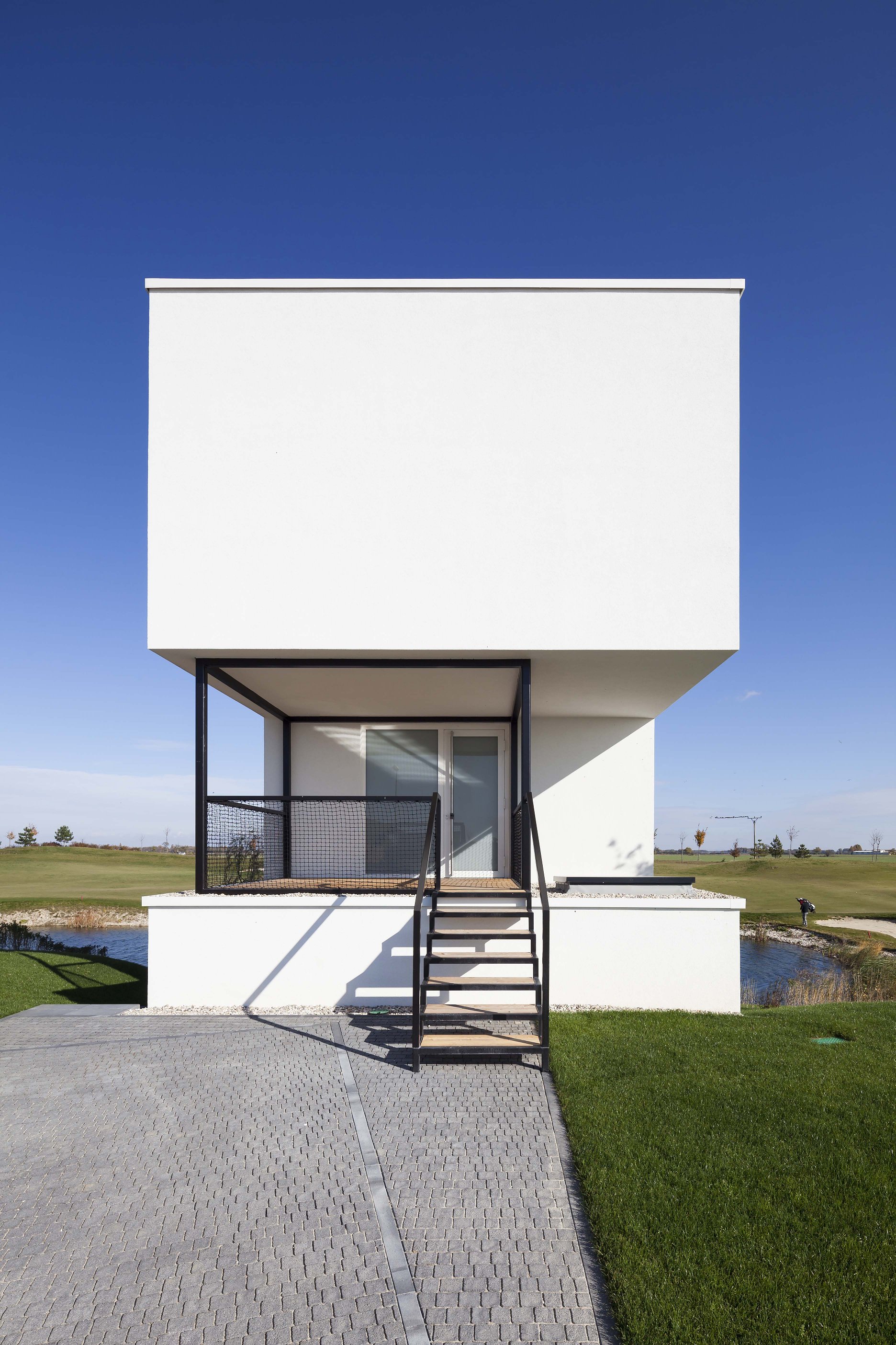 Dom je koncipovaný tak, aby mohol byť využívaný ako dom pre malú rodinu, bývanie pre seniorov alebo víkendové apartmánové bývanie. Základom domu je kubus - obytná miestnosť s kuchyňou, jedálenským stolom, krbom a terasami. K nemu prislúchajú 2 spálne so samostatnými kúpeľňami. Zvyšné priestory dopĺňajú potrebný komfort - vstup, sklad a šatník. Dom má priamy prístup k vode a výhľad na jamku majstrovského golfového ihriska.