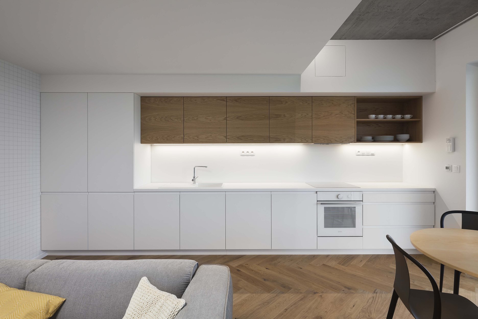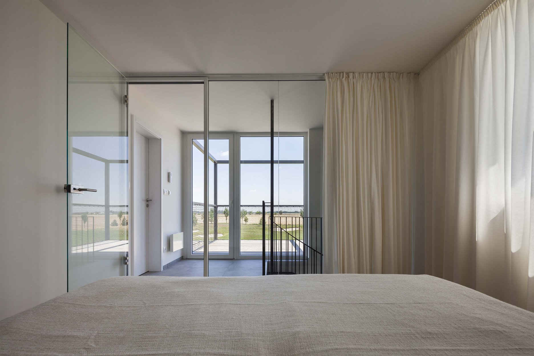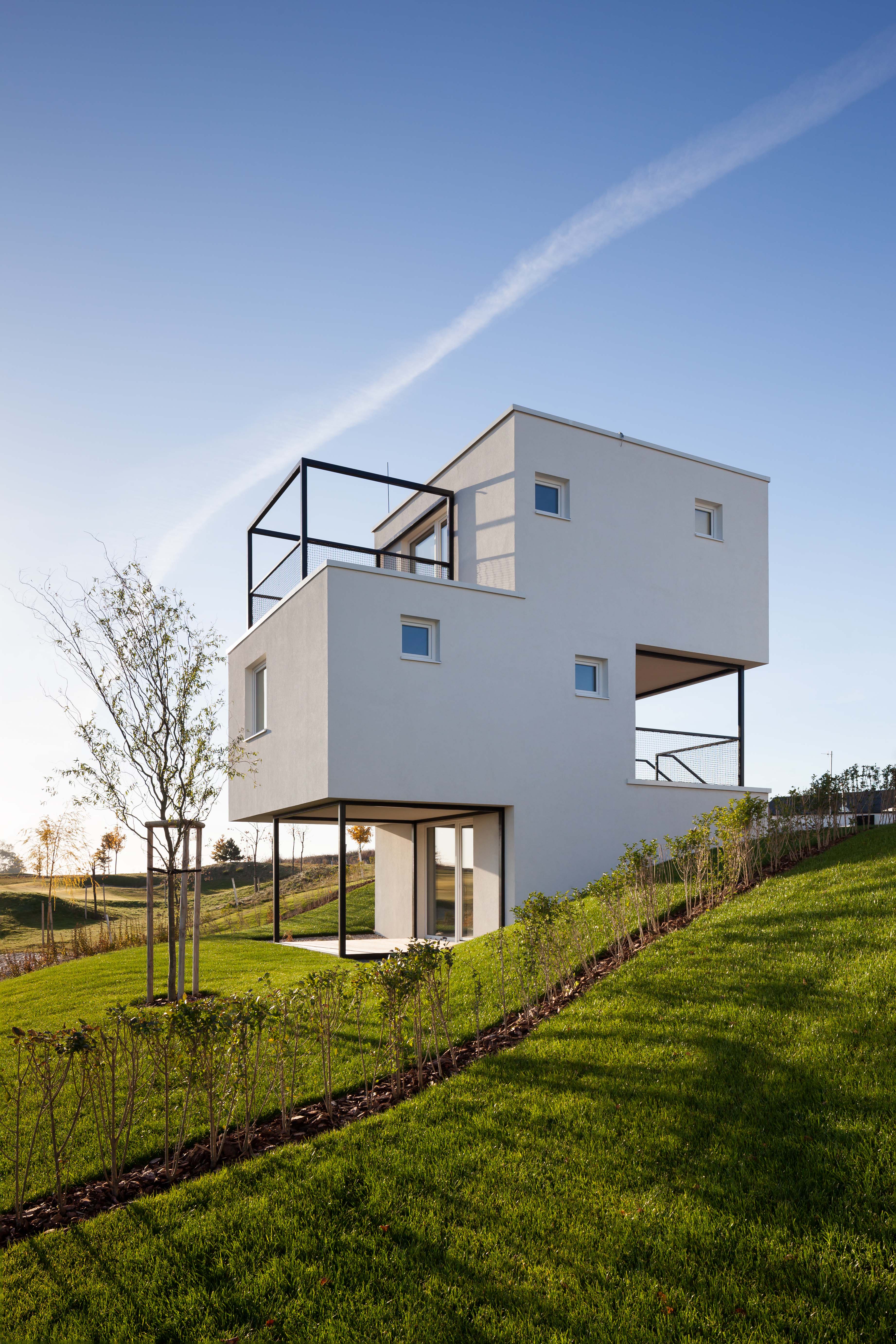 Architektonické riešenie bez akýchkoľvek príkras necháva vnímať čistú kompozíciu hmôt aj ich vzájomné spolupôsobenie. Monochromatické plochy bočných stien s minimom otvorov zvýrazňujú členitú siluetu domu. Presklené plochy rozšírené o priestor terás zas posúvajú obytný priestor aj do exteriéru. Architektúra domu je hľadaním ideálneho pomeru medzi súkromím a komunikáciou s okolím. Medzi funkciou a krásou, medzi požiadavkami a možnosťami.