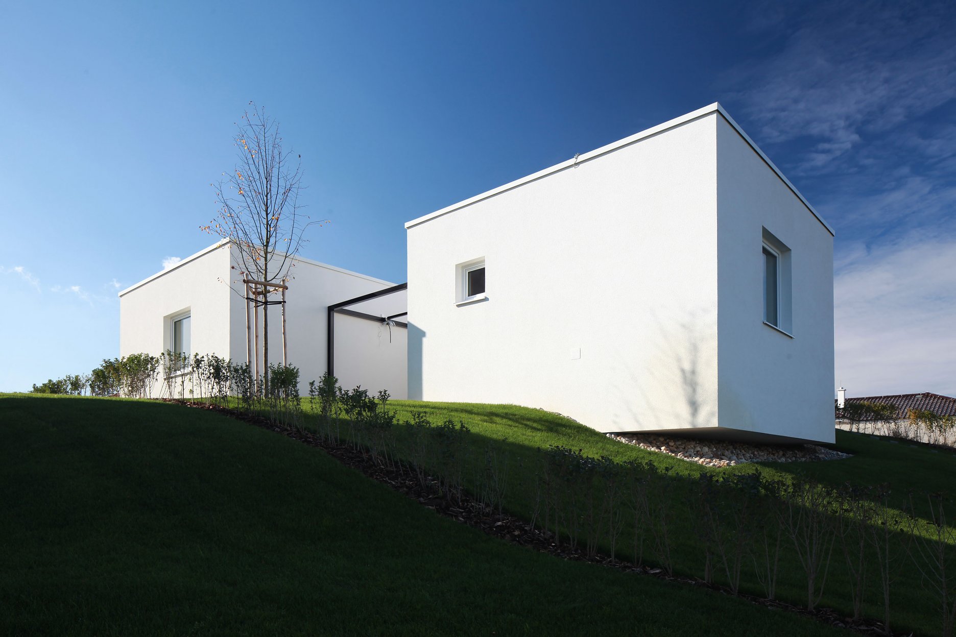 Rodinné domy 3x3 tvorí dvojica objektov v areáli golfového rezortu v Hrubej Borši. Veľkosť domov je rovnaká, odlišujú sa od seba systémom radenia jednotlivých priestorov. Základný modul - kubus je v prípade domu “A” usporiadaný vertikálne, dom “B” je rozložený horizontálne. Priestor medzi posunutými modulmi je v oboch prípadoch využitý na umiestnenie terás. Dnes predstavujeme prízemný objekt.