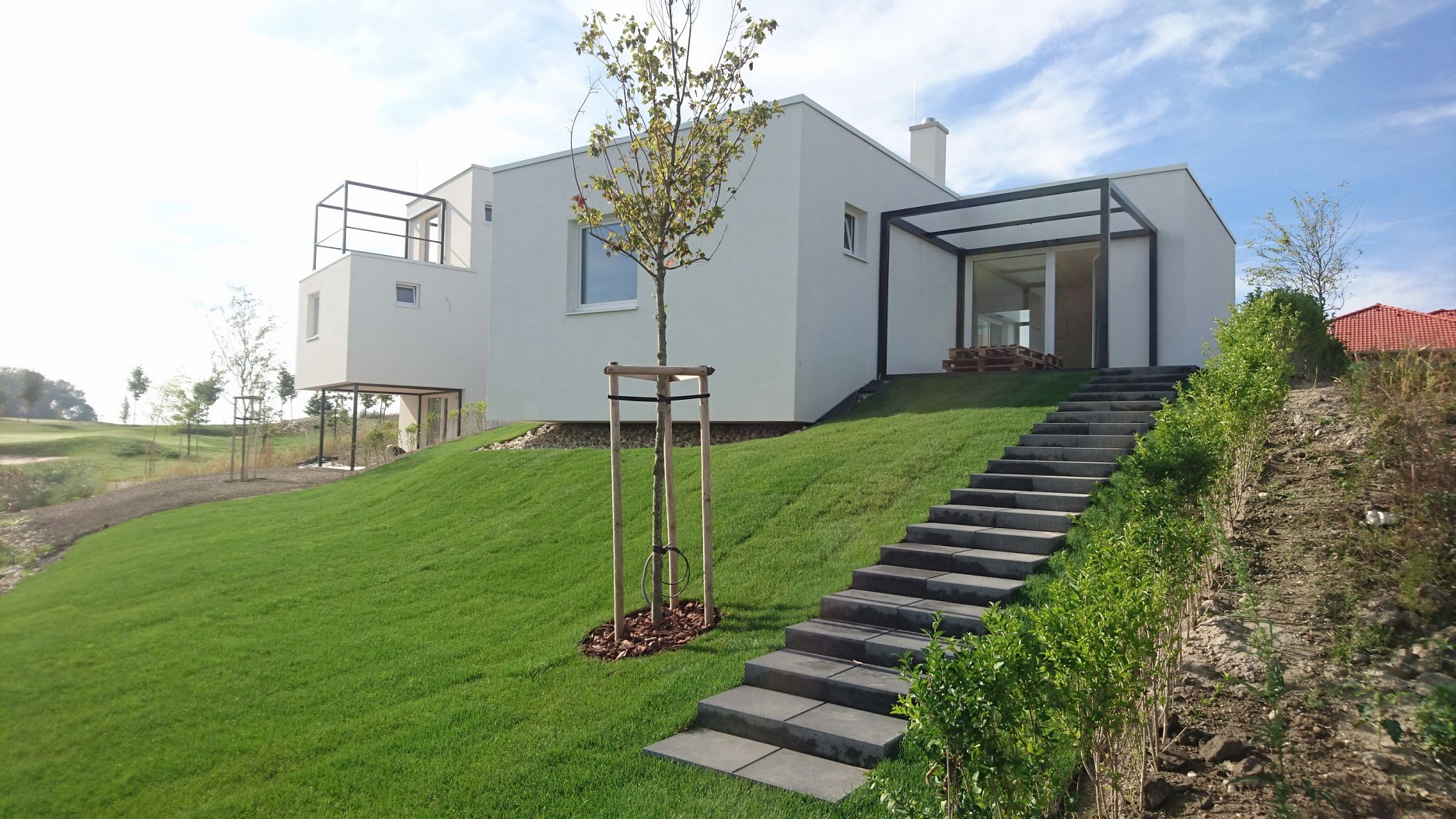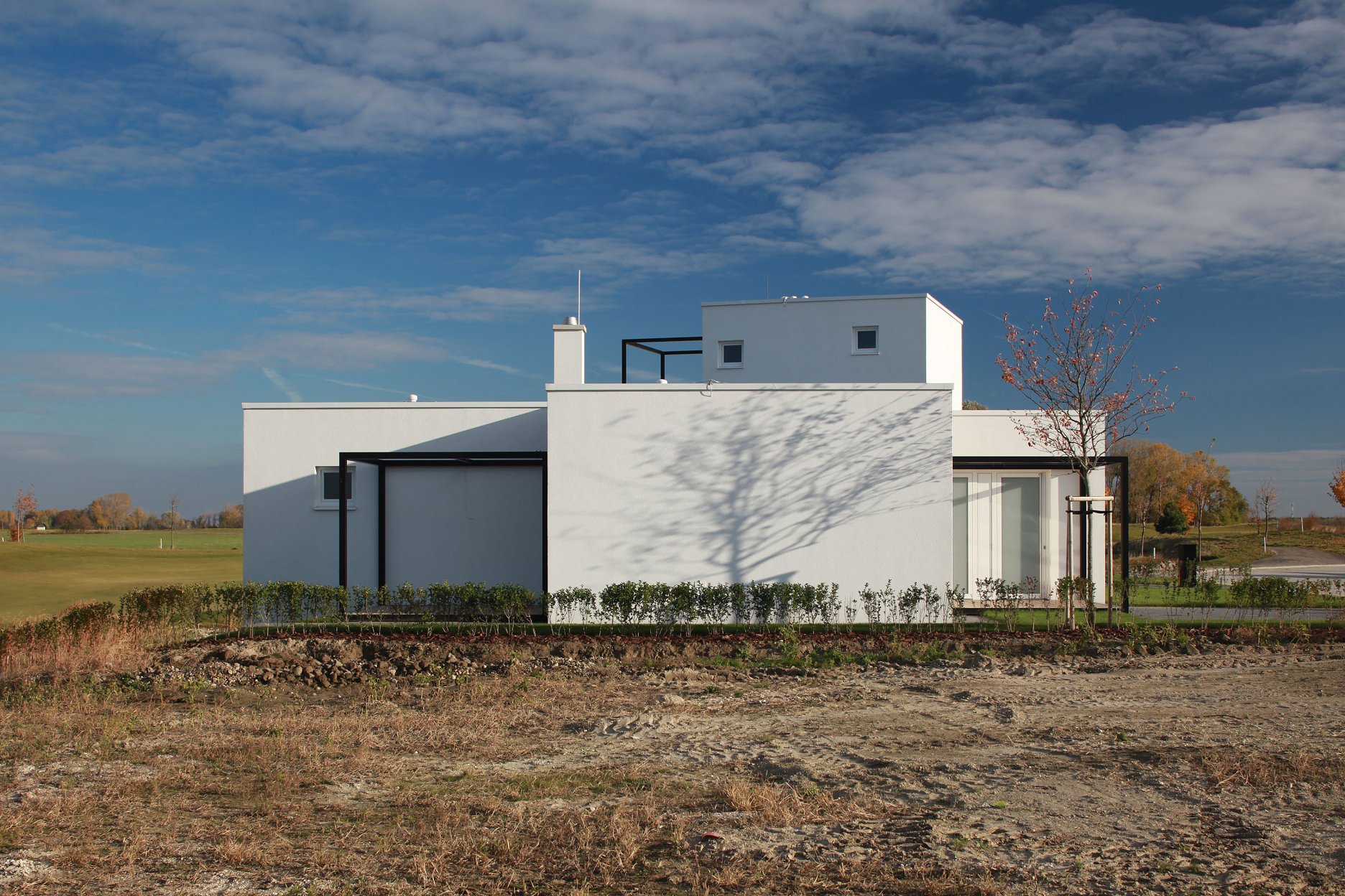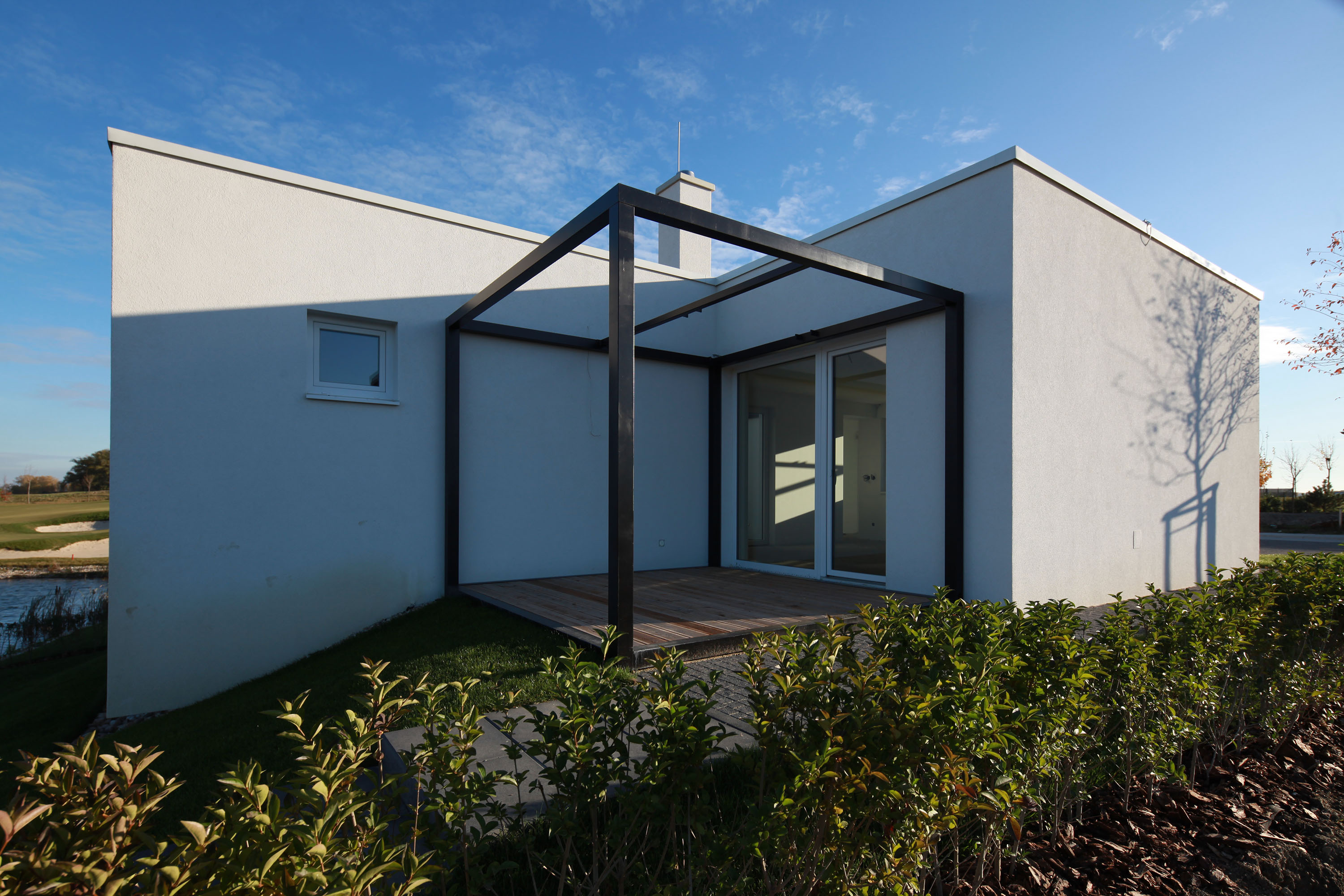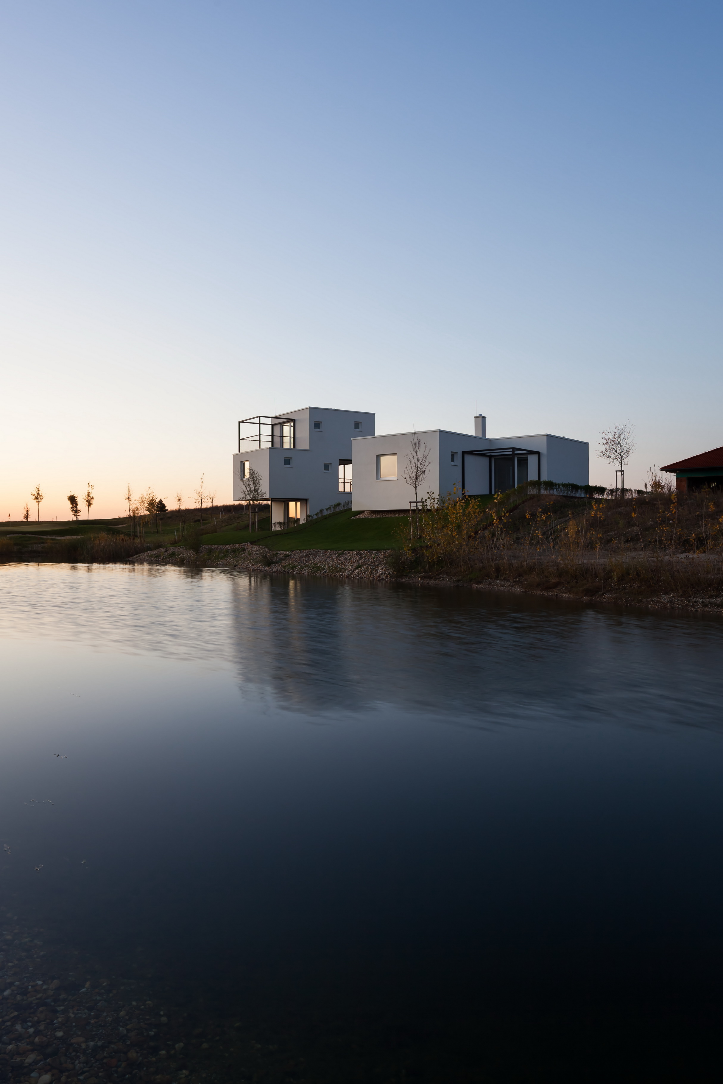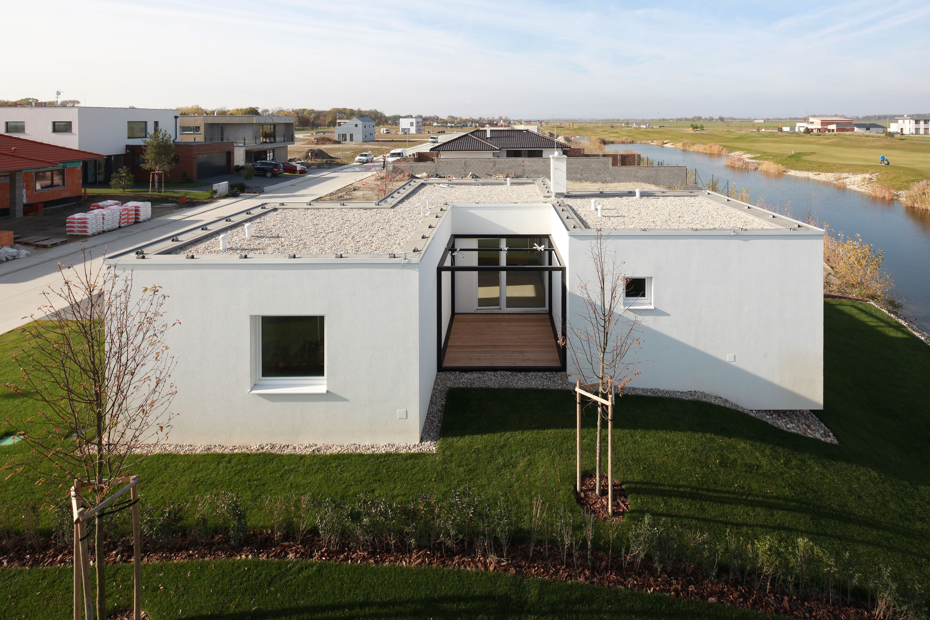 Objekt je nízkoenergetický a koncipovaný tak, aby mohol byť využívaný ako dom pre malú rodinu, bývanie pre seniorov alebo víkendové apartmánové bývanie. Základom domu je kubus - obytná miestnosť s kuchyňou, jedálenským stolom, krbom a terasami. K nemu prislúchajú 2 spálne so samostatnými kúpeľňami. Zvyšné priestory dopĺňajú potrebný komfort - vstup, sklad a šatník. Dom má priamy prístup k vode a výhľad na jamku majstrovského golfového ihriska.