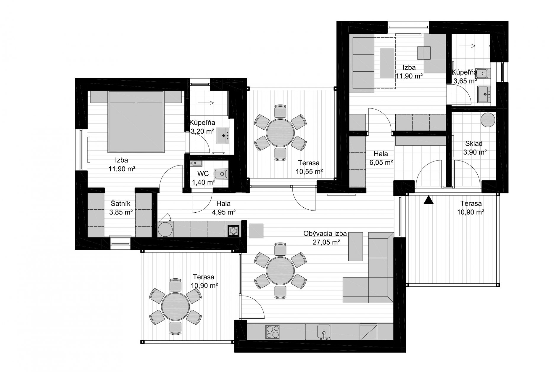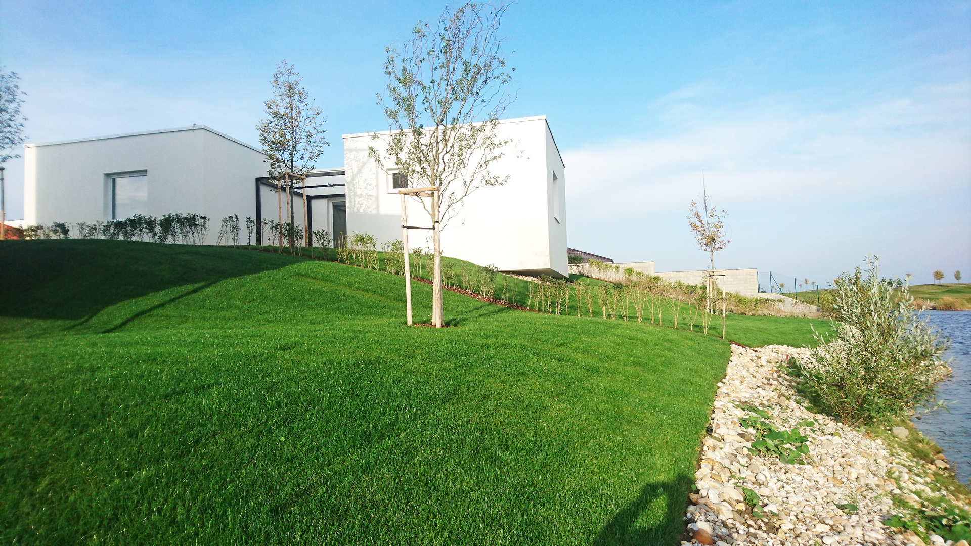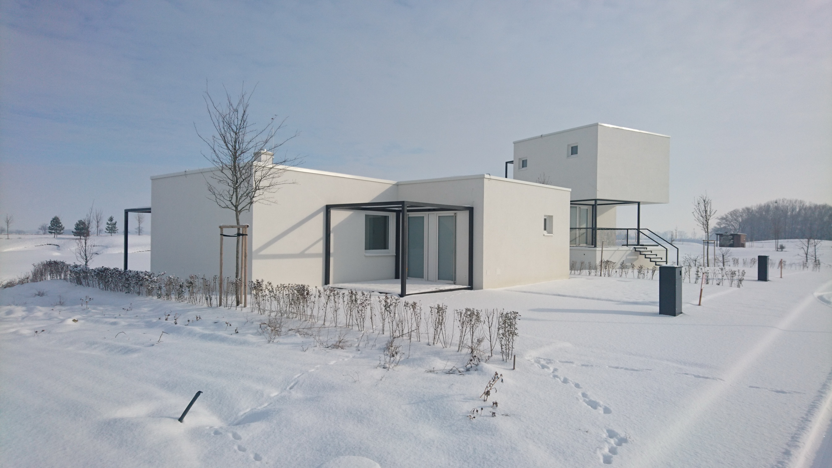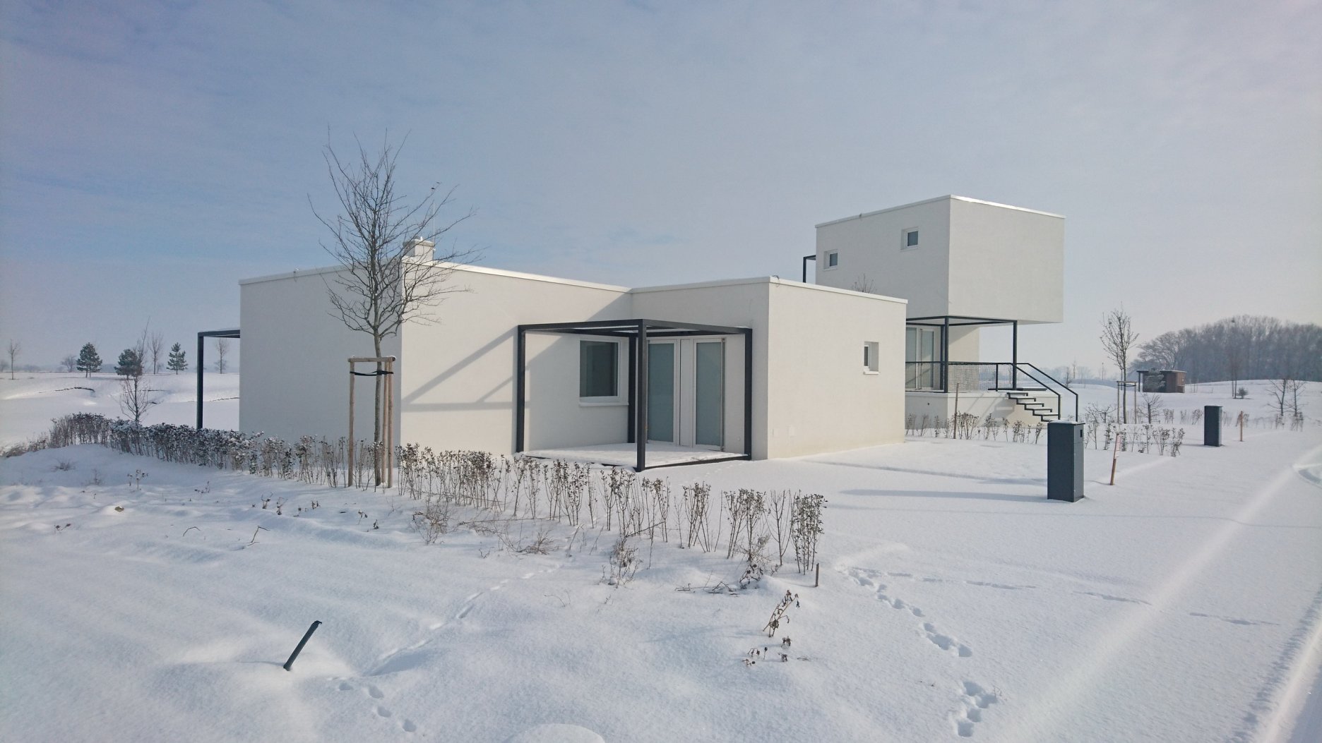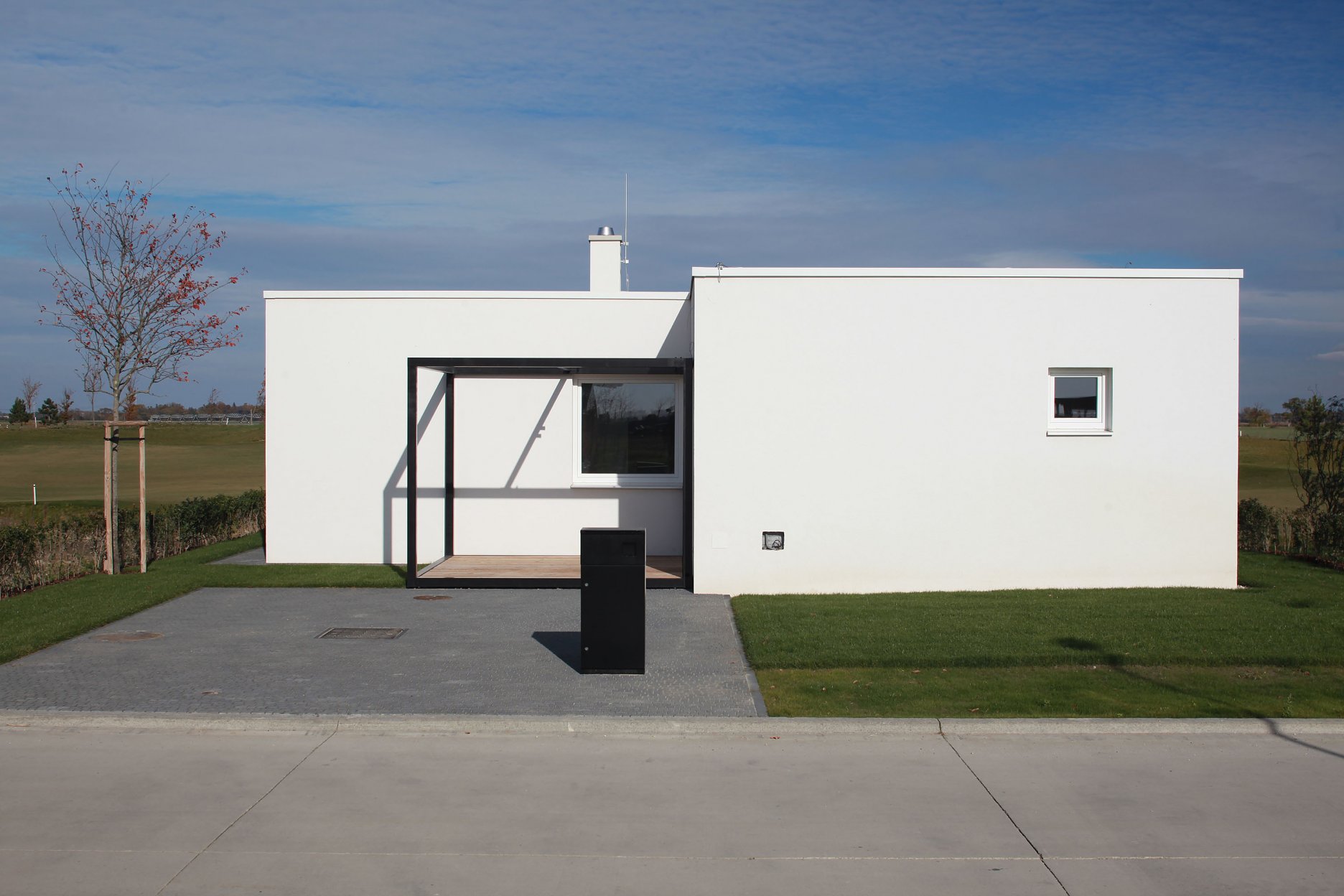 Objekt je nízkoenergetický a koncipovaný tak, aby mohol byť využívaný ako dom pre malú rodinu, bývanie pre seniorov alebo víkendové apartmánové bývanie. Základom domu je kubus - obytná miestnosť s kuchyňou, jedálenským stolom, krbom a terasami. K nemu prislúchajú 2 spálne so samostatnými kúpeľňami. Zvyšné priestory dopĺňajú potrebný komfort - vstup, sklad a šatník. Dom má priamy prístup k vode a výhľad na jamku majstrovského golfového ihriska.