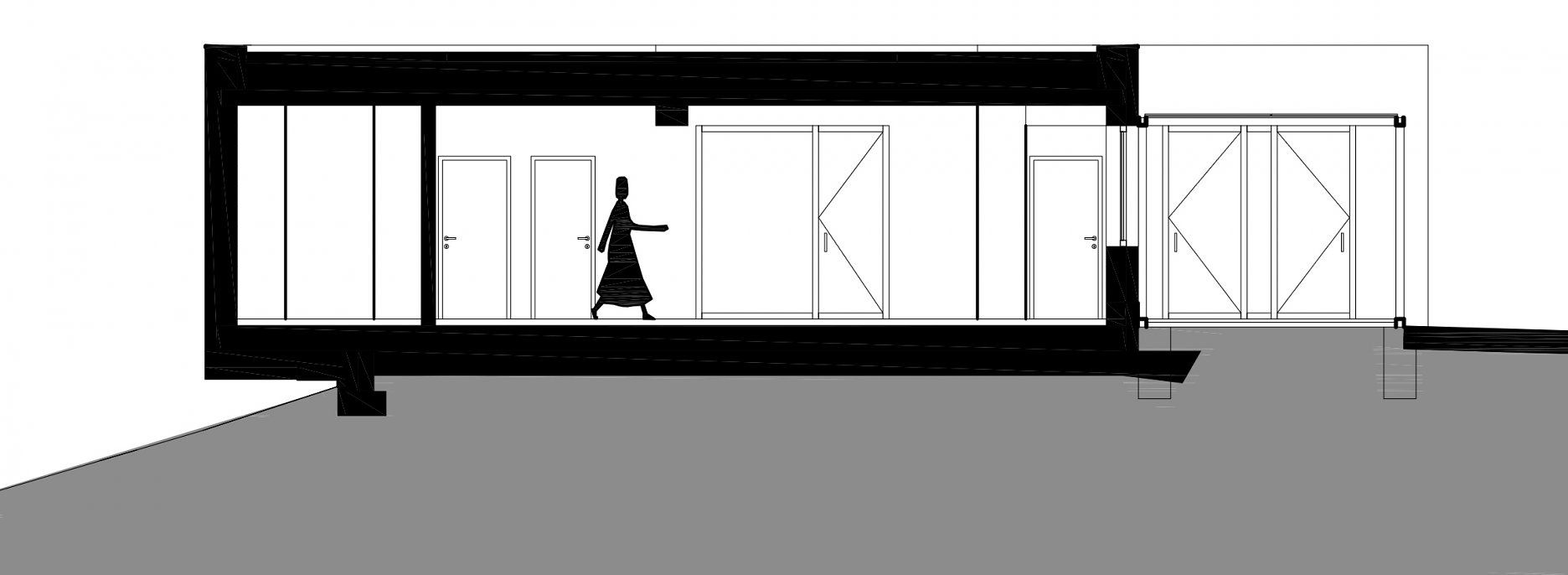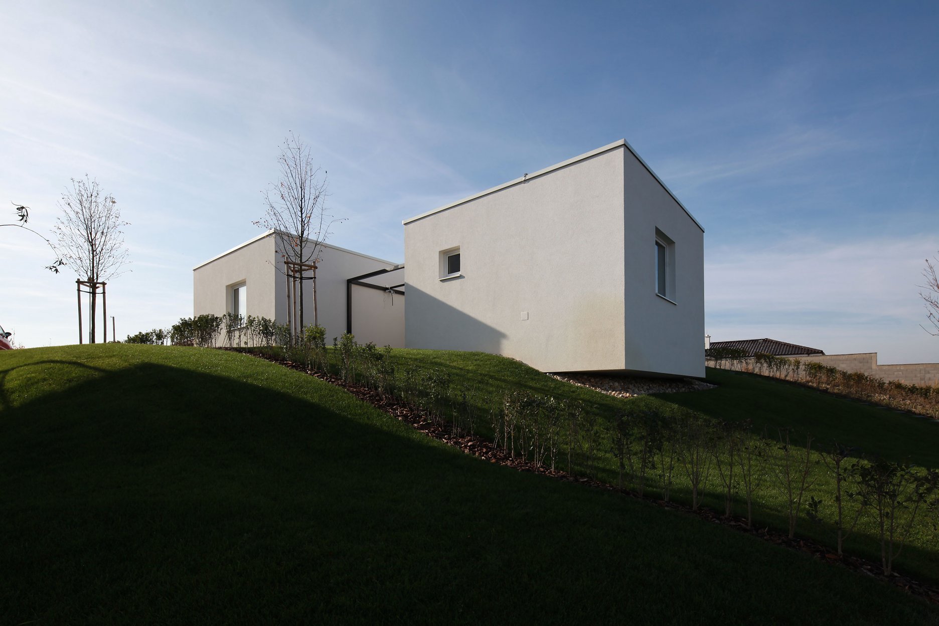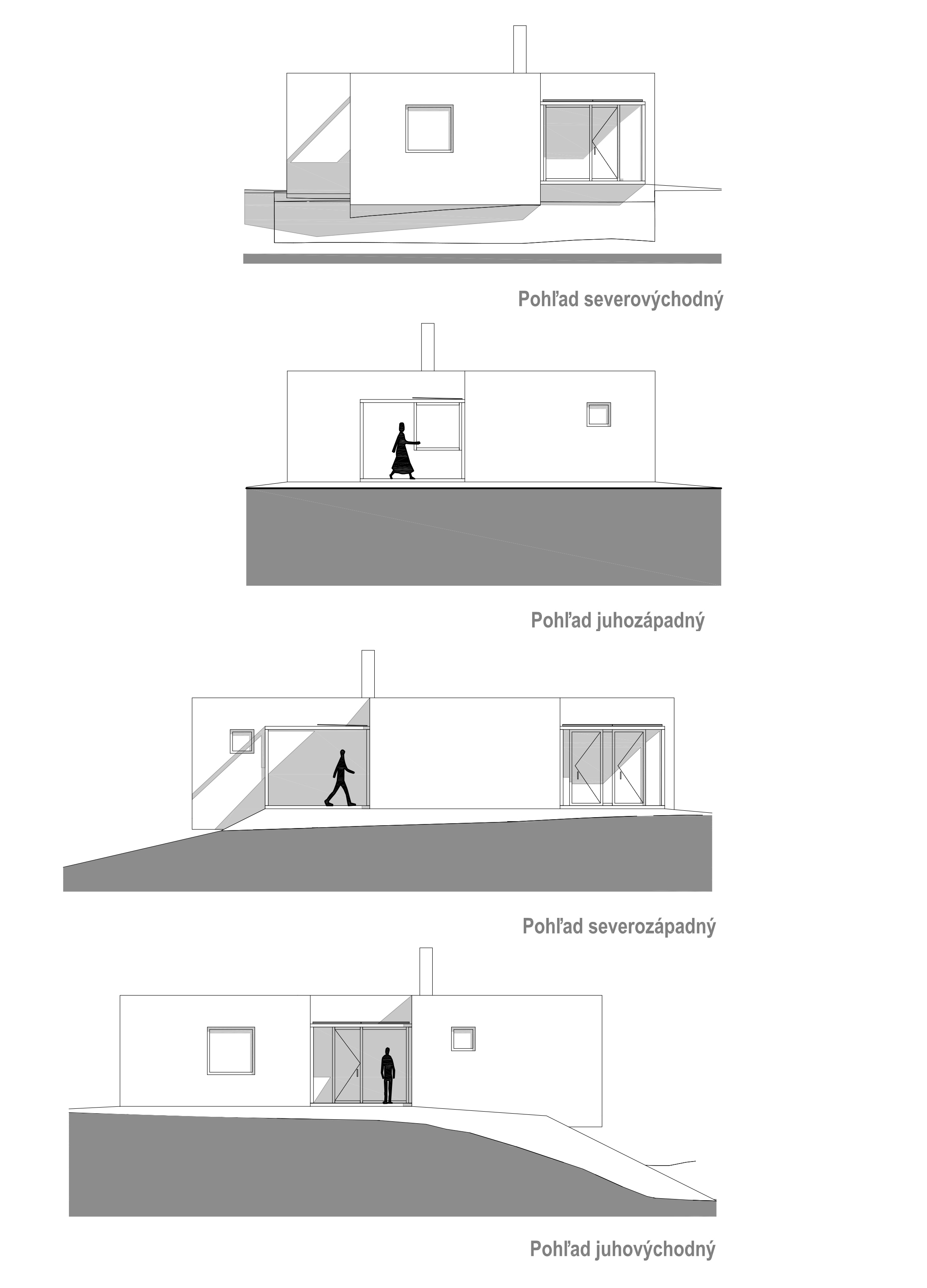 V začiatkoch bolo potrebné prehodnotiť zadanie - veľkosť, nevyhnutné miestnosti, ich orientácie, vybavenie technológiami, potrebu a spôsob riešenia súkromia. Požiadavky následne zredukovať na komfortné minimum za účelom minimálnej starostlivosti - náročnosti na energie, čas a peňaženku budúceho majiteľa. A nakoniec navrhnúť formu, ktorá zhmotní myšlienku na reálnej parcele. Celý zámer je podporený minimálnym dizajnovým jazykom bez akýchkoľvek príkras a necháva vyniknúť kompozíciu hmôt aj ich vzájomného spolupôsobenia. Dom je hľadaním ideálneho pomeru medzi súkromím a komunikáciou s okolím, medzi funkčnosťou a krásou, medzi požiadavkami a možnosťami.