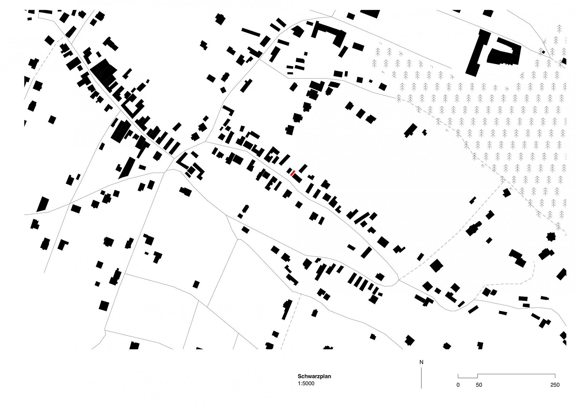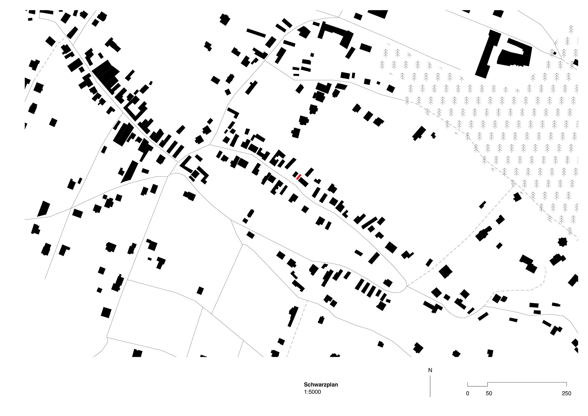 Navrhovaný dom sa snažíme umiestniť do najmenej prívetivej časti pozemku. Vypĺňame chýbajúci objem v uličnej fronte. Navrhujeme úzky a dlhý dom, tak aby začal na ulici a skončil až v záhrade, preč od tieniacich objektov susedných domov.
