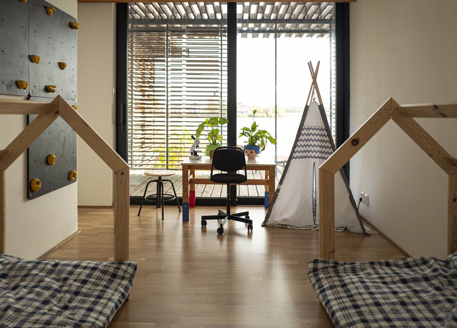 Na svereozápadnom brehu štrkoviska Jakubov, pár kilometrov západne od Malaciek, dokončil ateliér DeRaxa trojicu domov. Prvý objekt - bývanie a ateliér Petra Rakšányho, ktorý získal v roku 2015 cenu časopisu ARCH, sme podrobne predstavili v samostatnom článku. Dom na jazere II. rozvíja viaceré princípy aplikované pri tvorbe zvyšných objektov. Patrí medzi nich snaha o potlačenie hranice interiér/exteriér a použitie materiálov v ich surovej podobe.