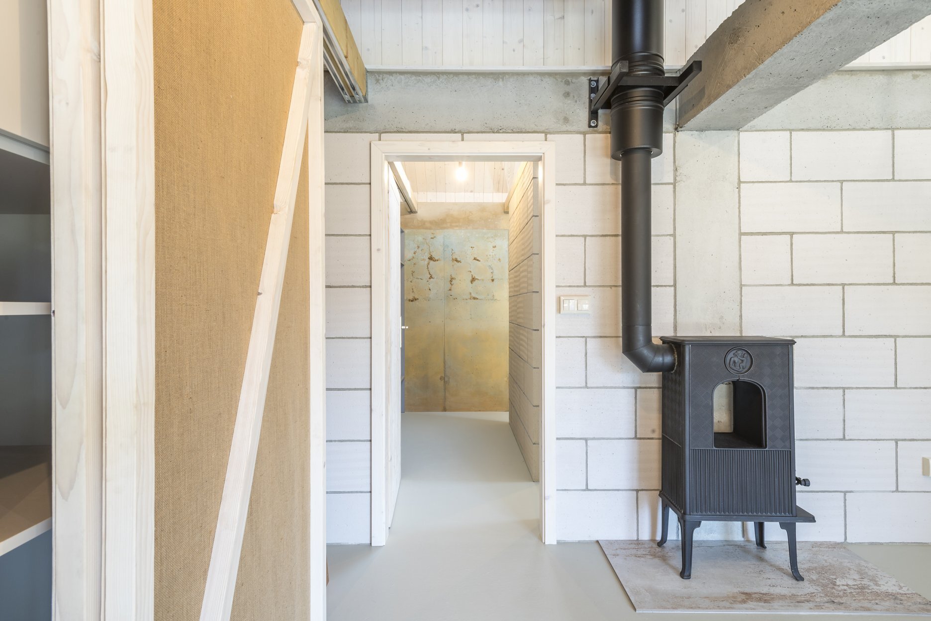 Skladba miestností: pivnica, predsieň, WC, kúpeľňa, detská izba, spálňa, obývačka s kuchyňou, galéria-pracovňa