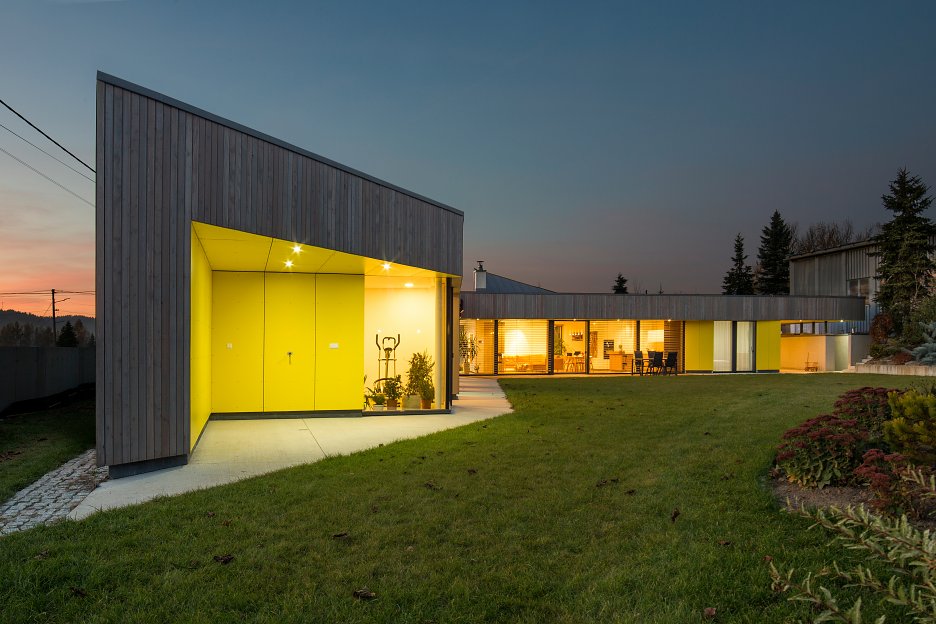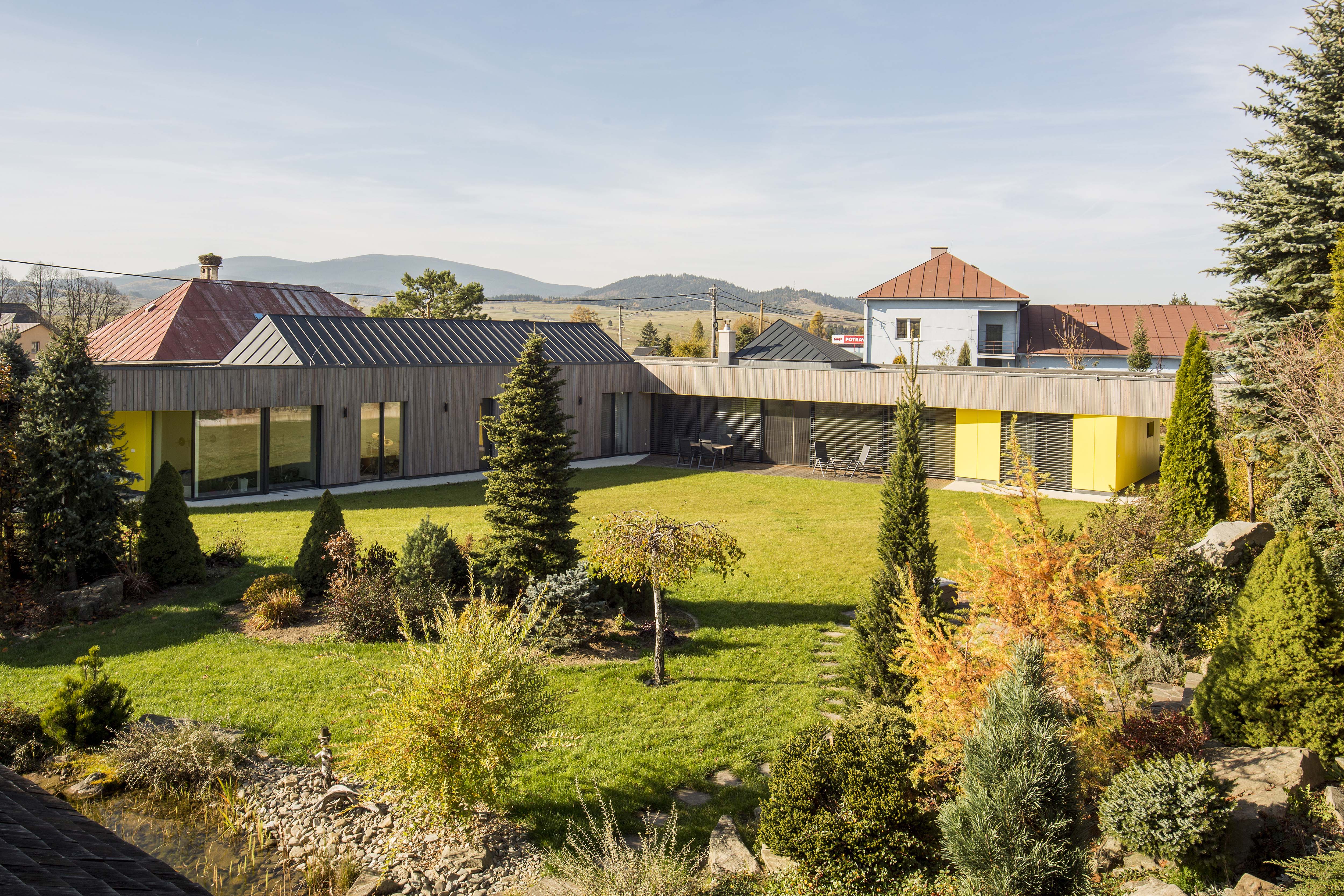 Použité materiály (drevený obklad) reagujú na zvyklosti regiónu a tiež na charakter výrobných objektov na východnej strane (stolárska dielňa). Dom je navrhnutý pre päťčlennú rodinu. Východo-západné krídlo domu je určené pre manželský pár, severo-južné krídlo pre bývanie odrastených potomkov (v budúcnosti bude slúžiť ako hosťovský apartmán so samostatným vstupom). Súčasťou projektu je tiež samostatná dvojgaráž.