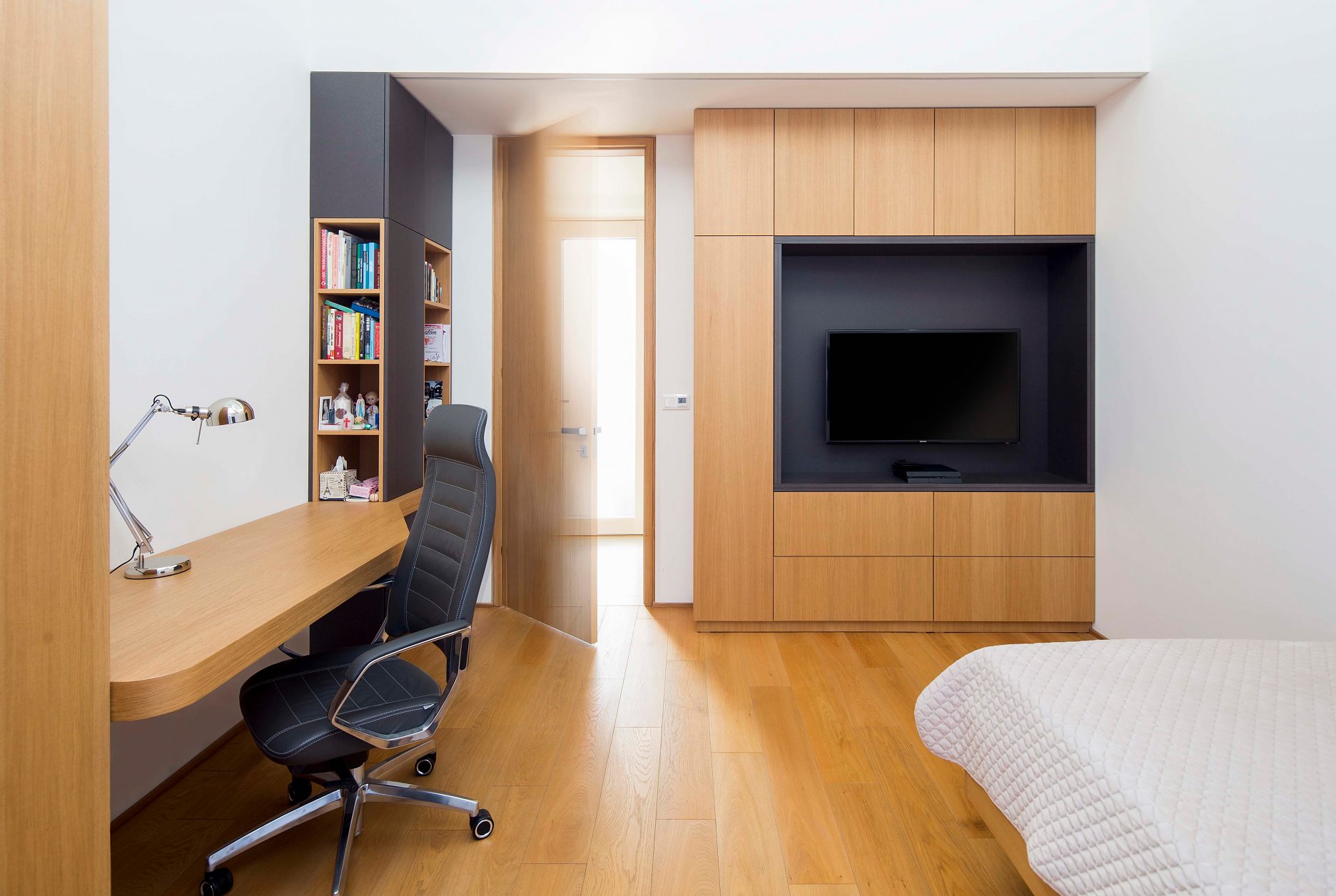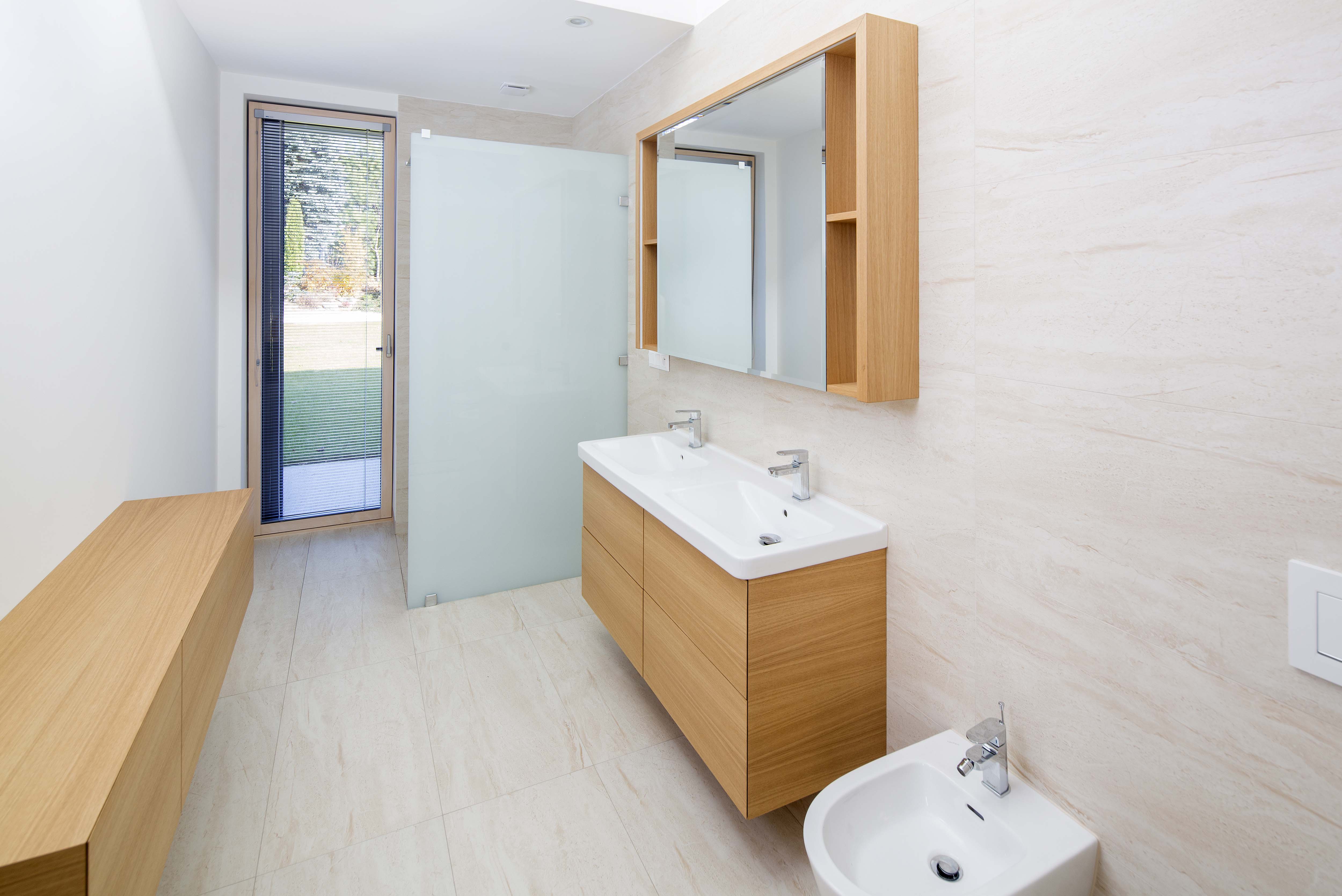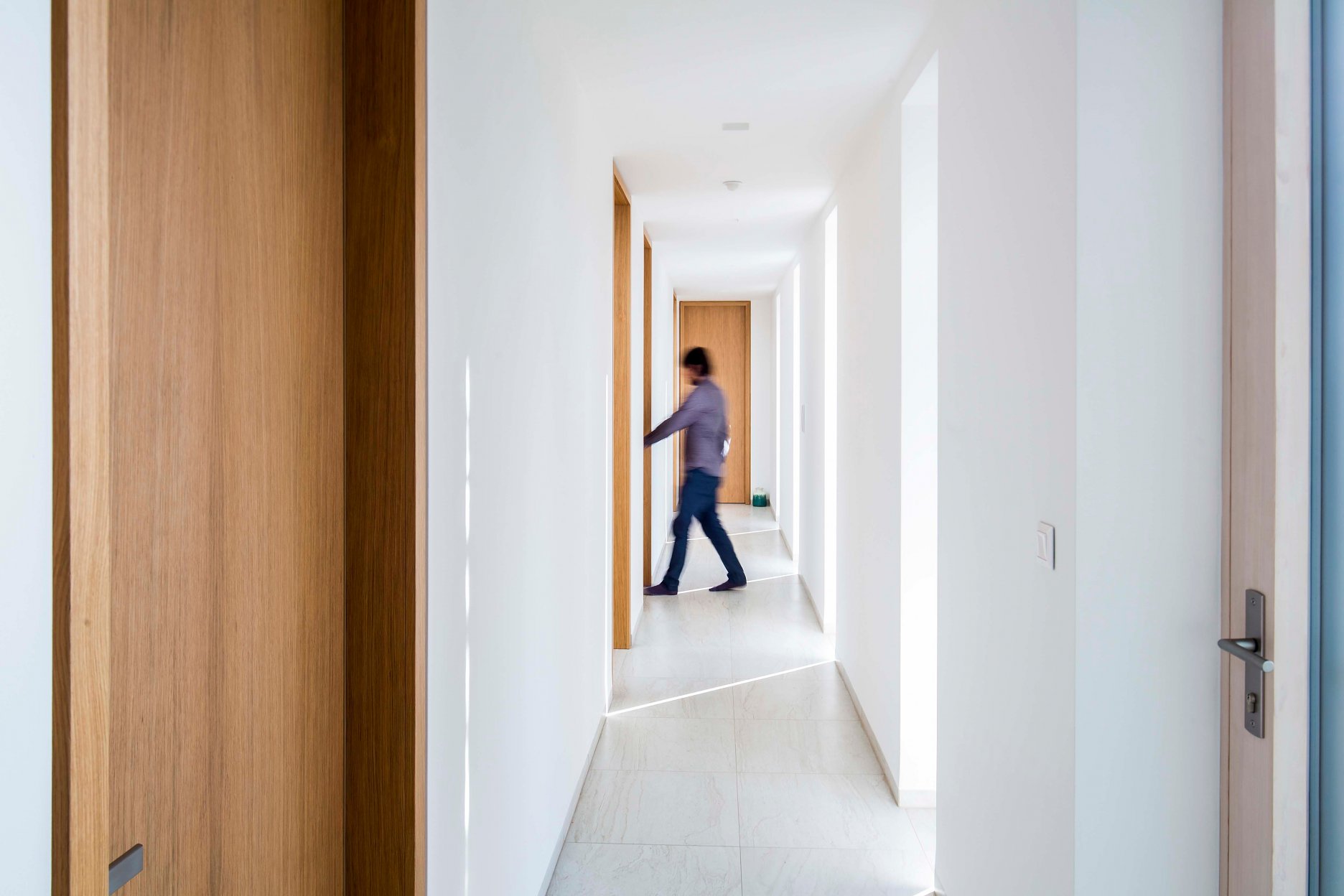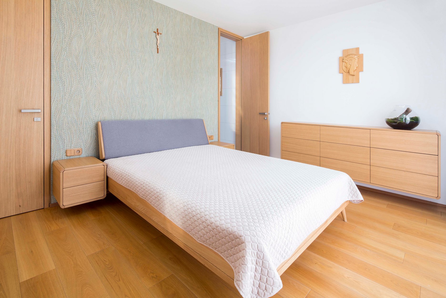 Príjemnú sivú patinu dreva, použitého na fasáde domu, strieda v interiéri "živá" farba a textúra prírodného materiálu, ktorá vyniká na monochromatickom pozadí. Priestorový koncept obohatený o prevýšené zóny pod svetlíkmi dopĺňajú výplne otvorov a nábytok využívajúce celú výšku podlažia. K výslednej kvalite prezentovaného diela prispieva aj precízna remeselná práca, zrejmá najmä na nábytkových solitéroch.