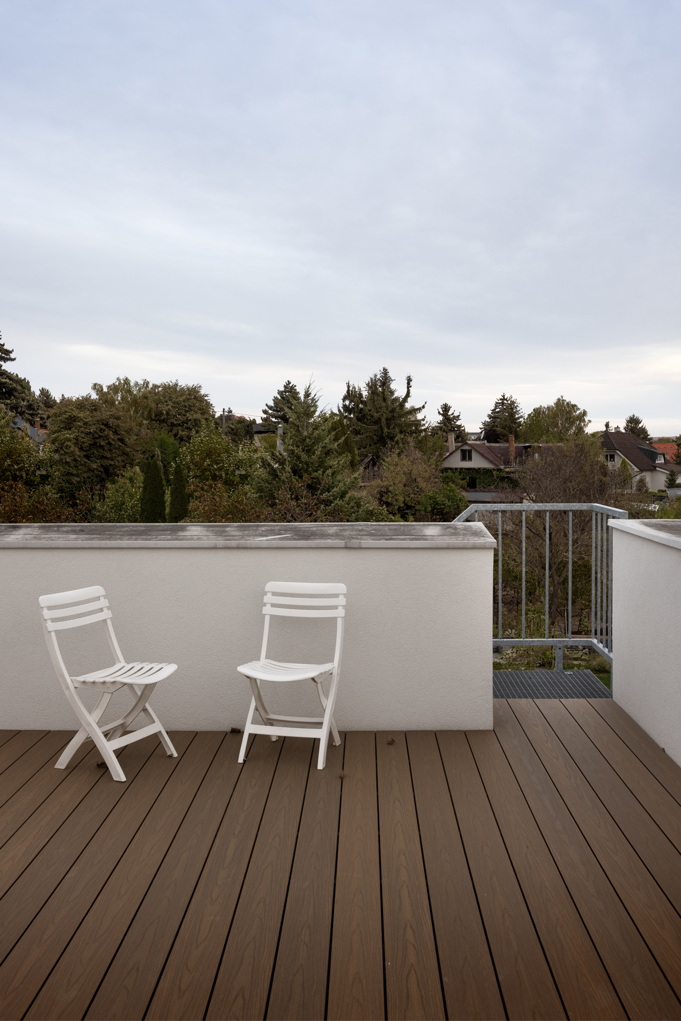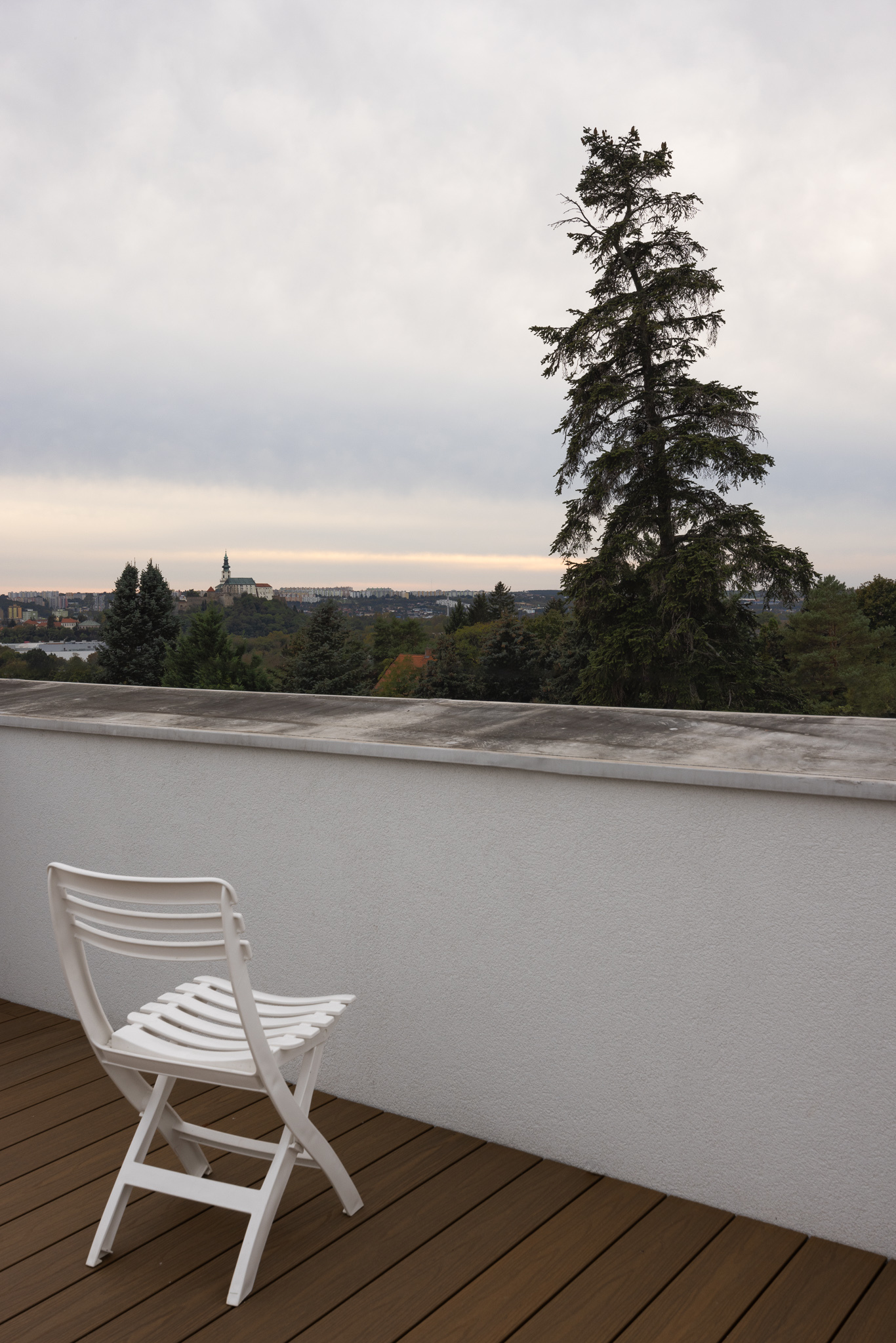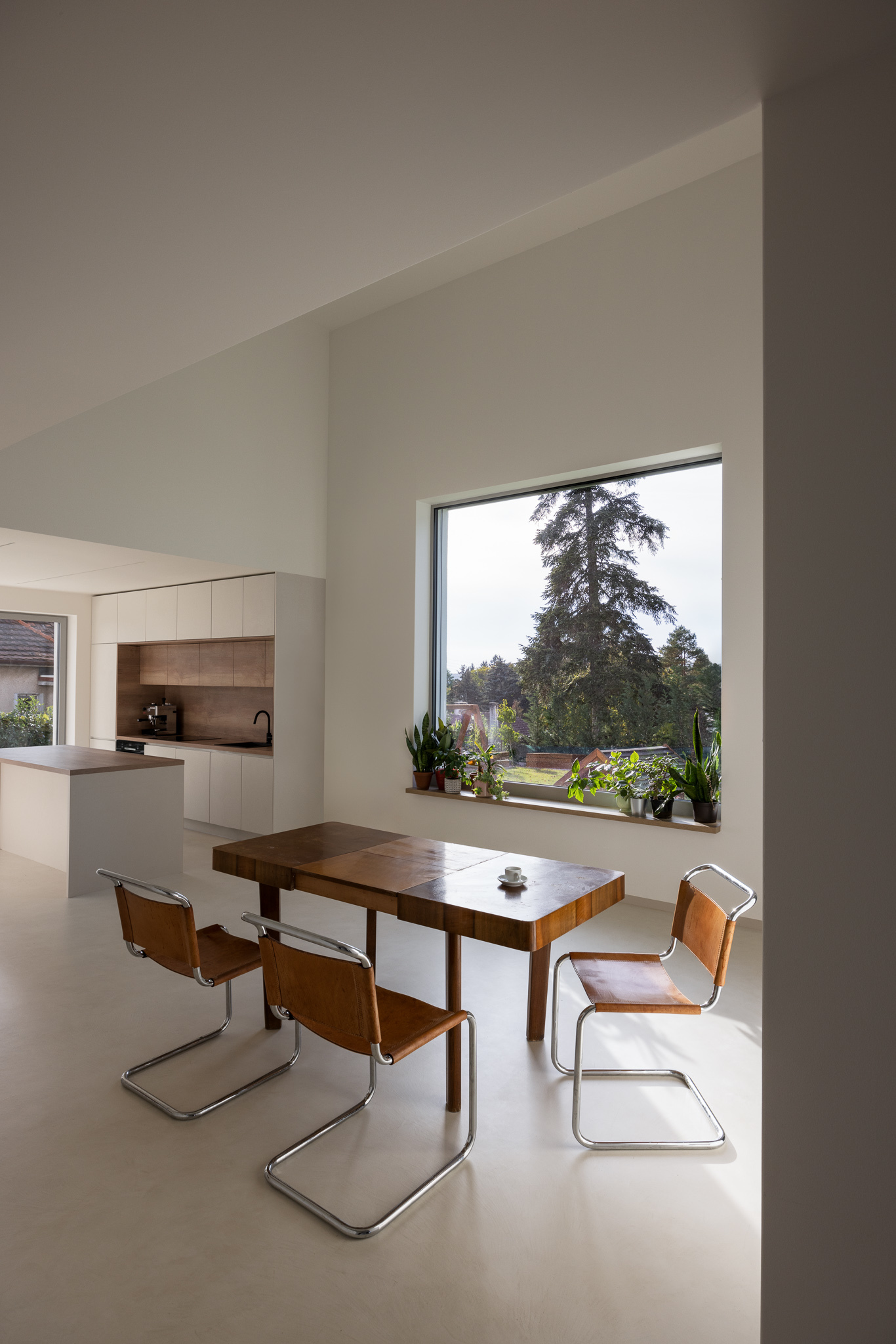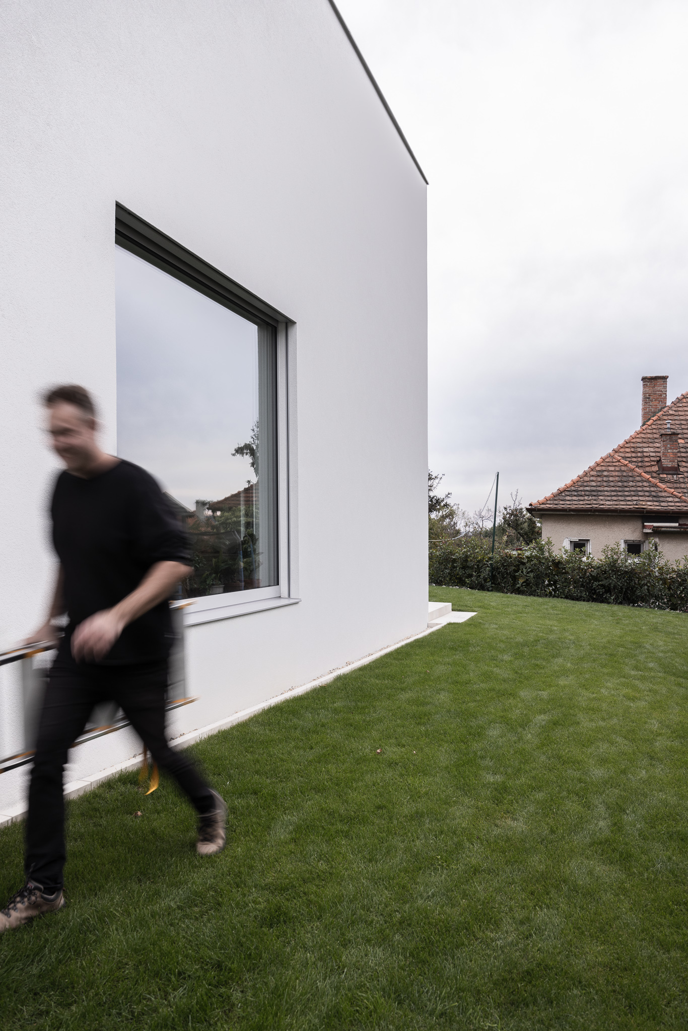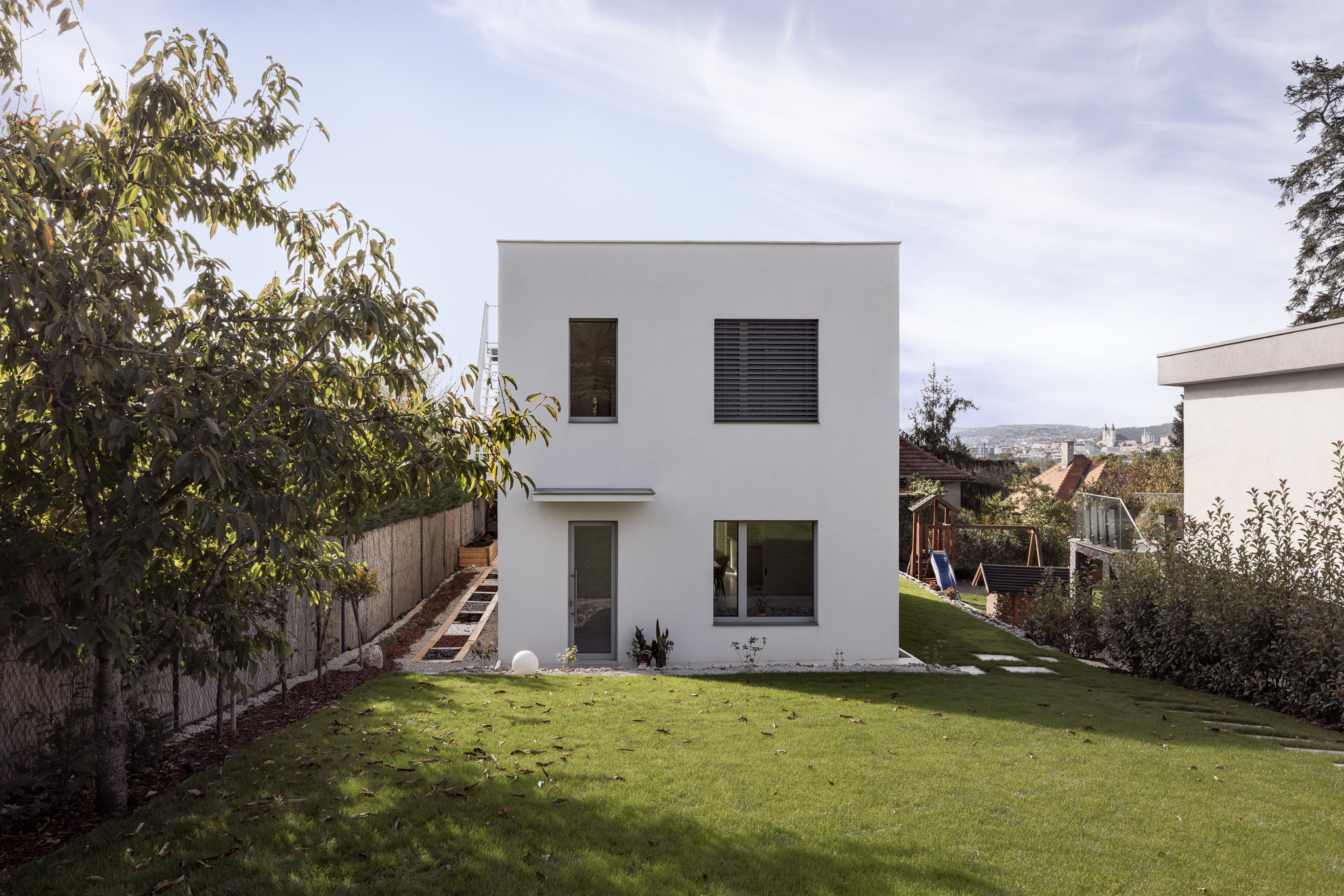 Kompaktné bývanie, priehľady priestorom, prevýšená denná zóna, strešná terasa s výhľadom na mesto. Strohá vonkajšia obálka, s minimalisticky riešenými detailmi, ukrýva otvorené bývanie v kontakte so záhradou.