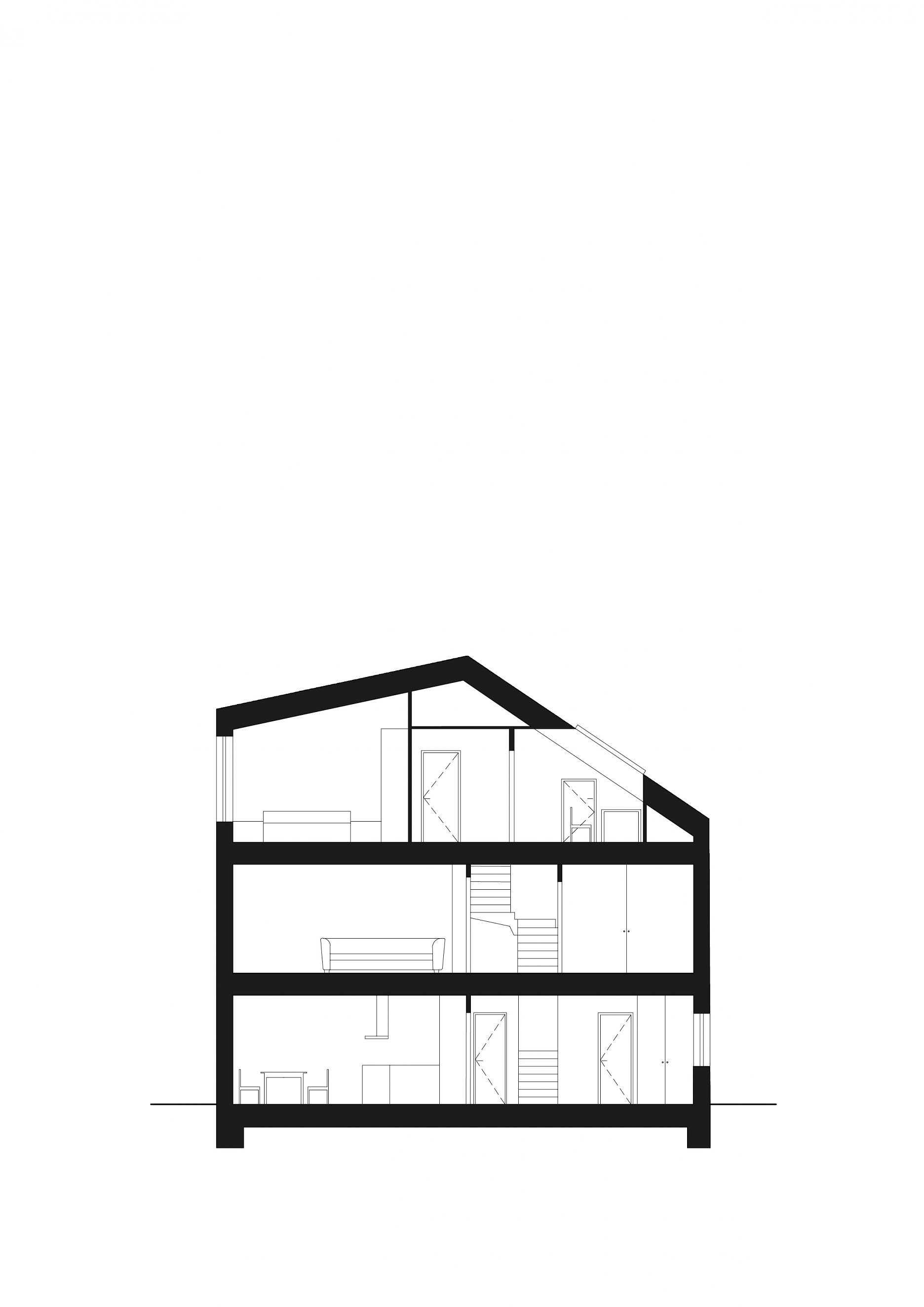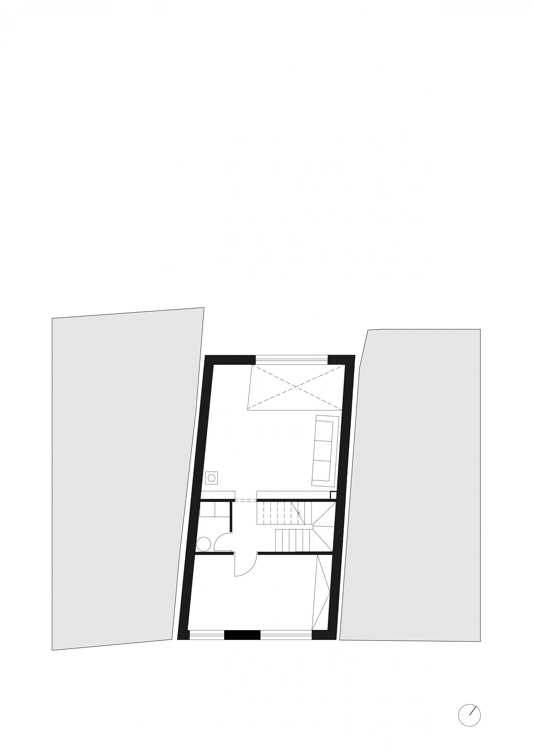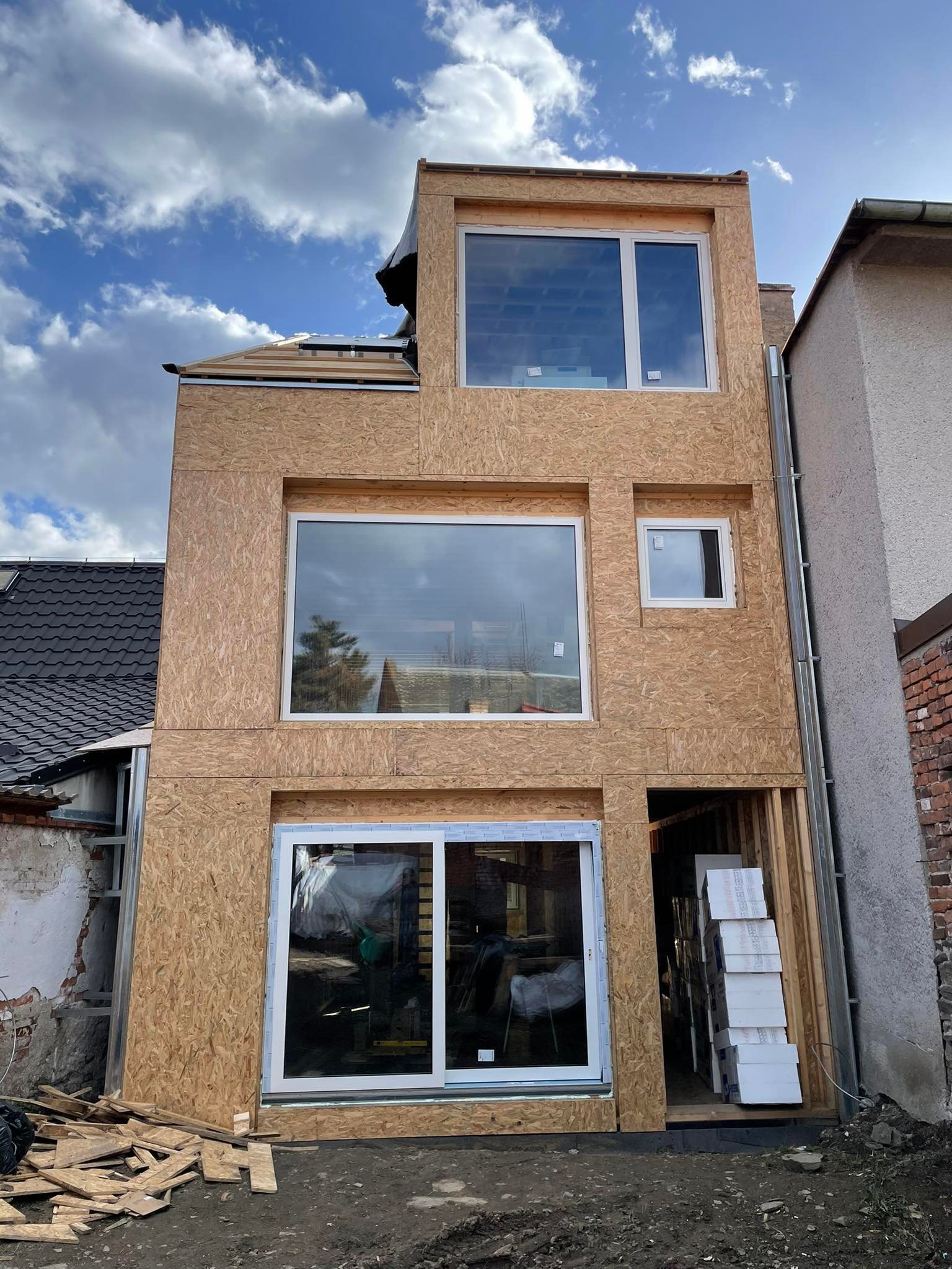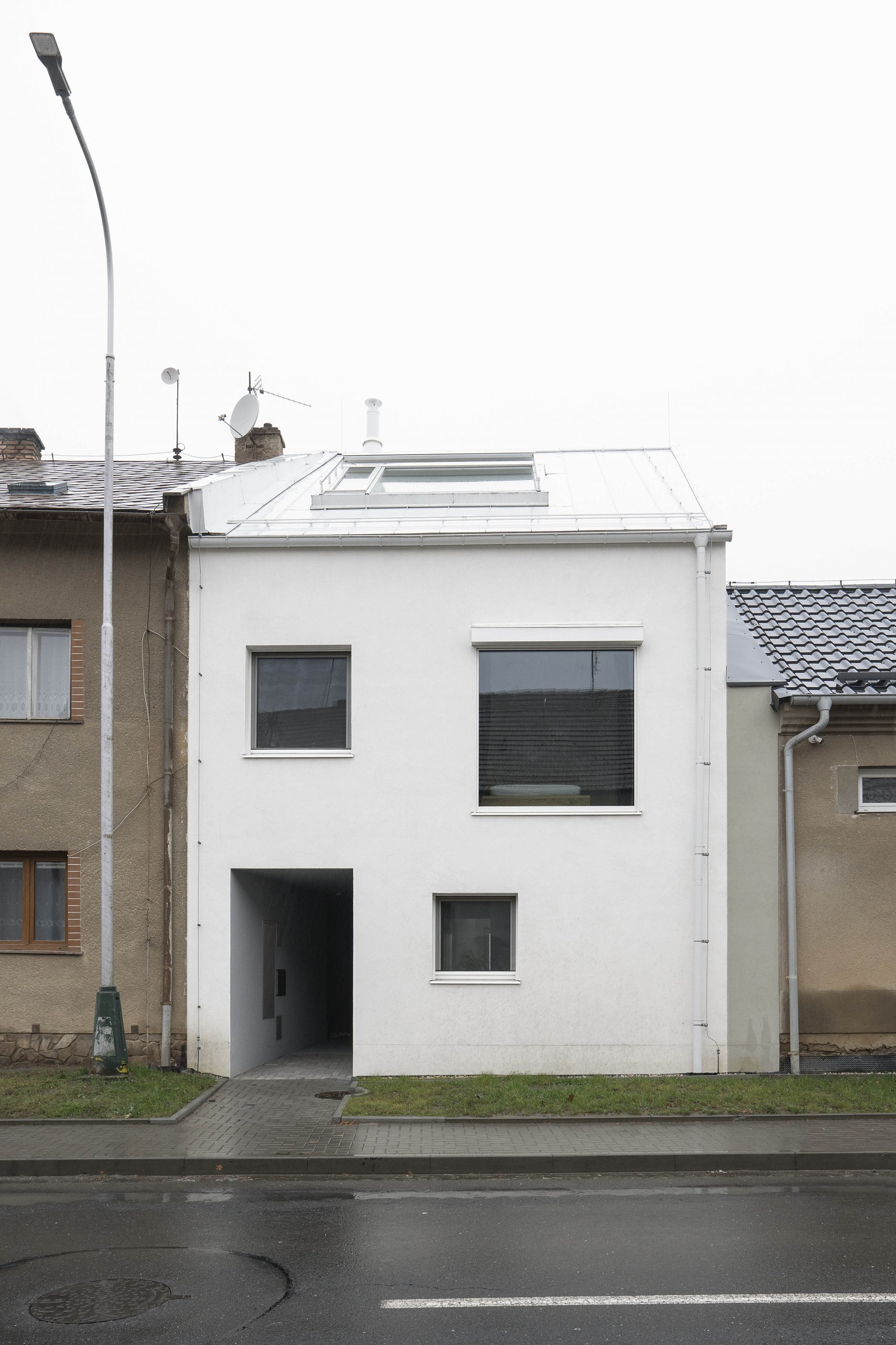 Aktuálna realizácia česko-slovenského kolektívu TŘI.ČTRNÁCT architekti. Pôvodný dom, vklinený medzi bytovkami, nahradila kompaktná trojpodlažná drevostavba. Medzi dôležité aspekty projektu patrí zachovanie priechodu medzi ulicou a záhradou, vertikálne prepojenie obytných priestorov a presvetlenie hlbokej dispozície prostredníctvom rozsiahlych plôch presklenia. Aj vďaka spomínaným východiskám a účelnému riešeniu interiéru vytvárajú architekti na zastavanej ploche iba 76 m2 voľné pôsobisko pre mladú rodinu s dvomi deťmi.
