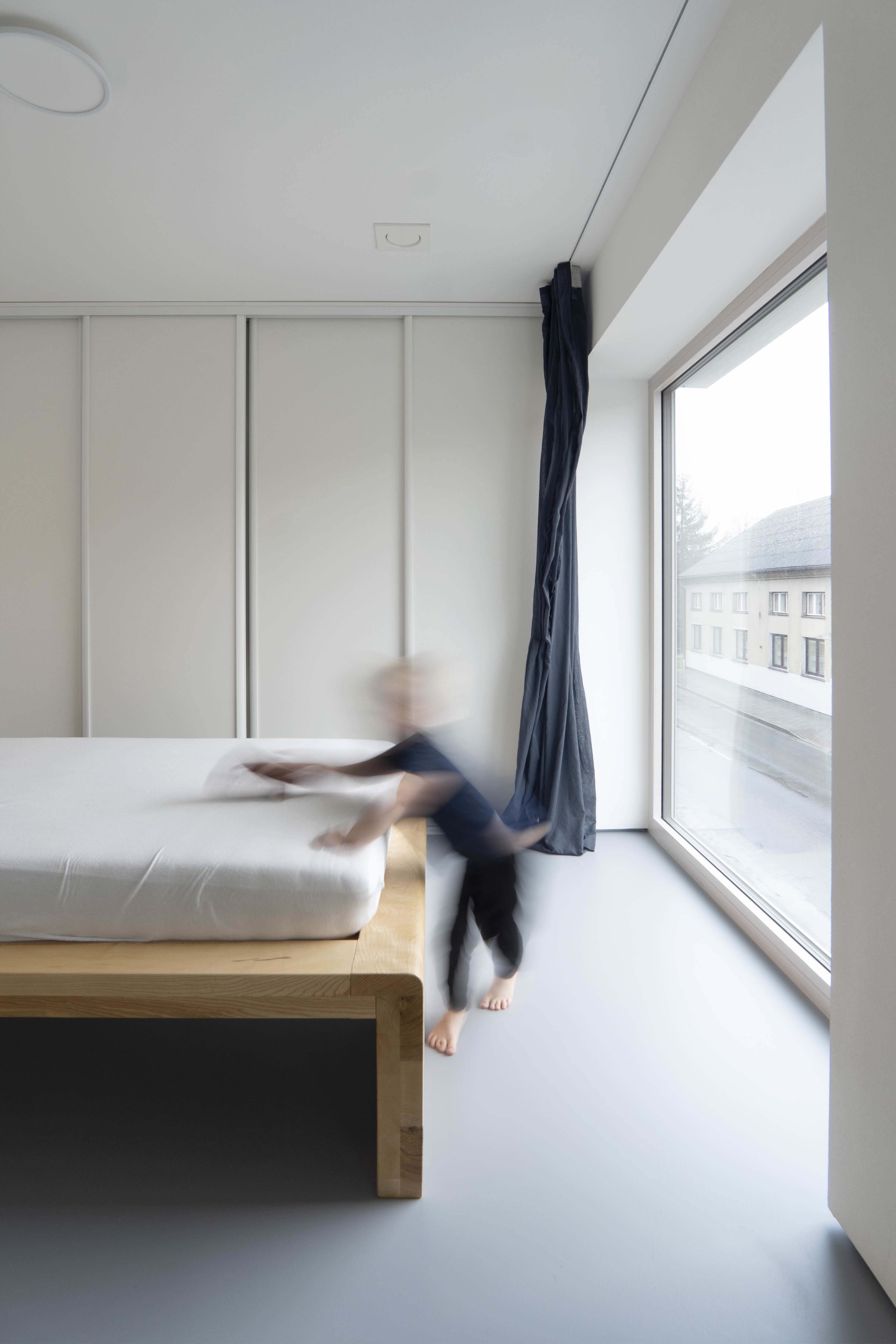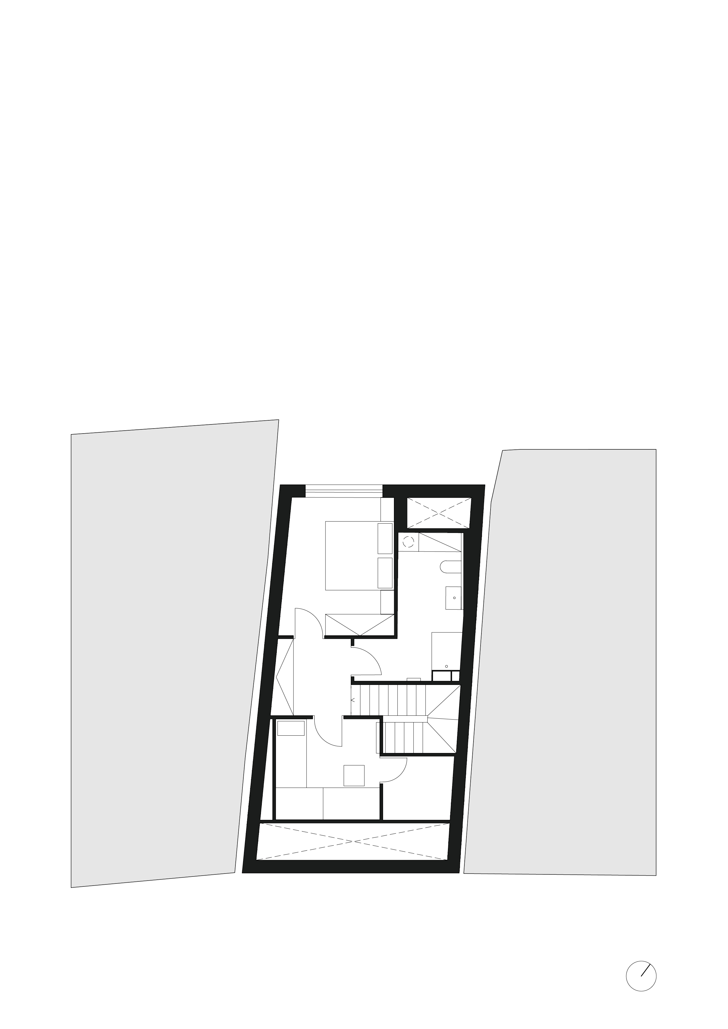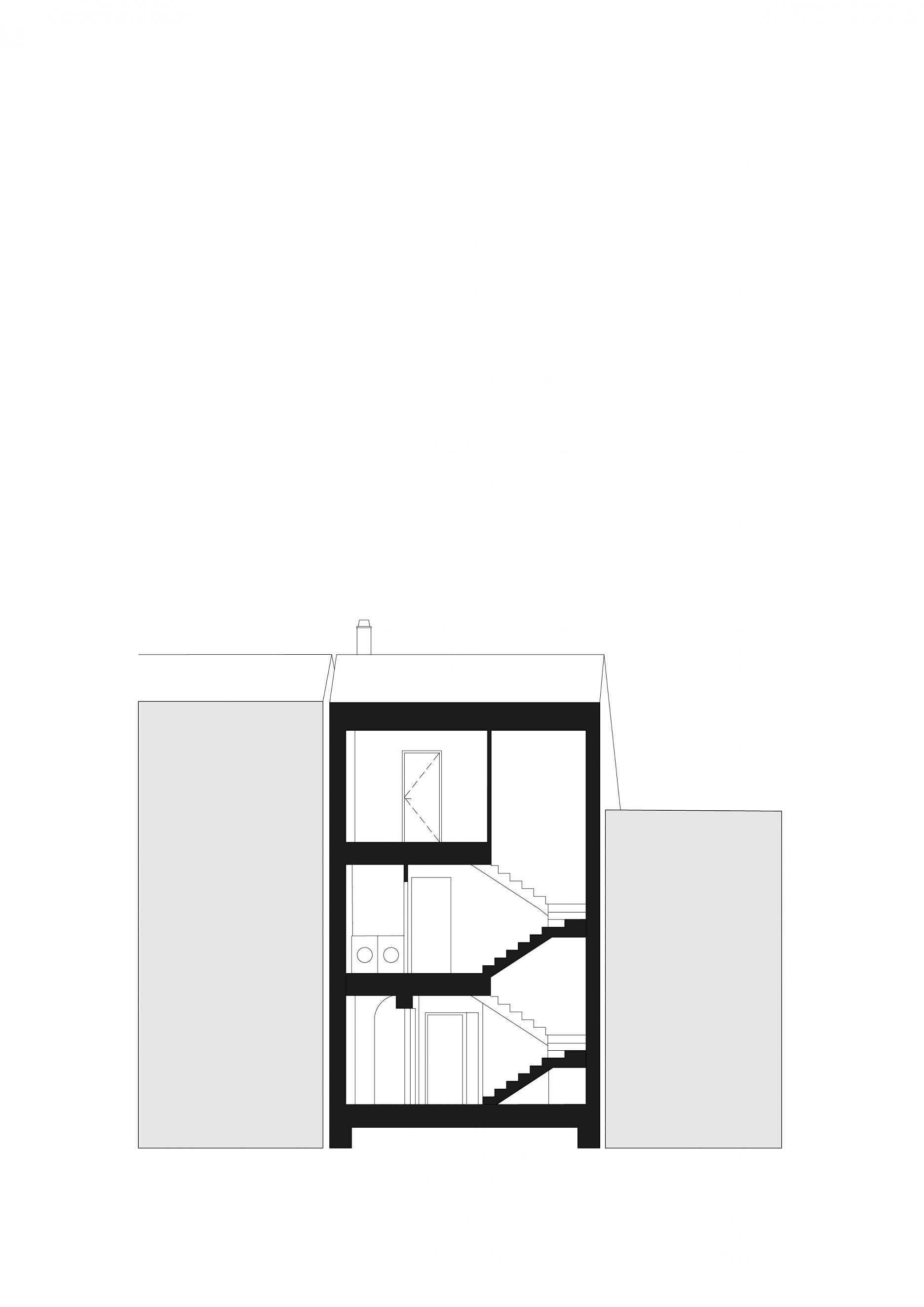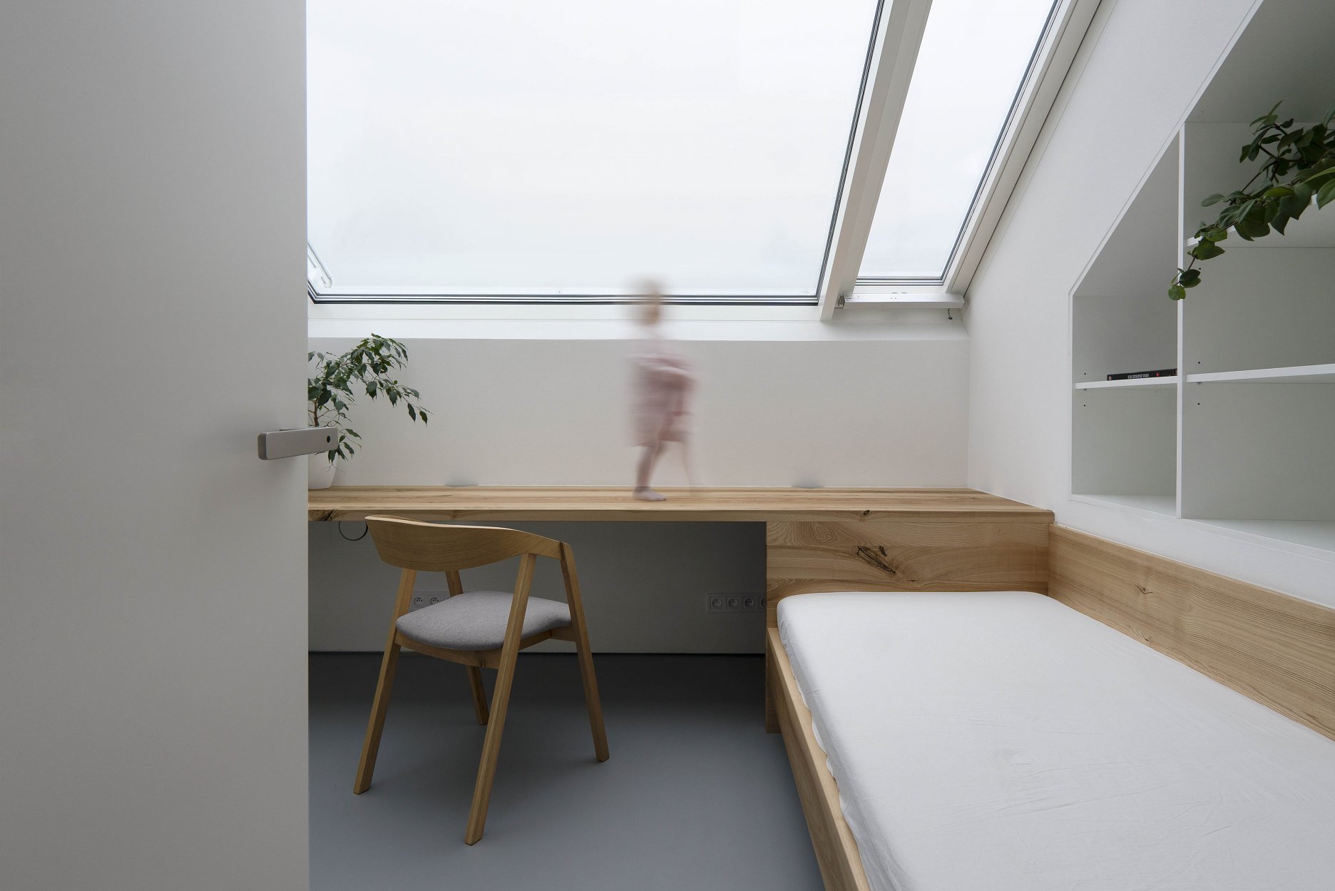 Aktuálna realizácia česko-slovenského kolektívu TŘI.ČTRNÁCT architekti. Pôvodný dom, vklinený medzi bytovkami, nahradila kompaktná trojpodlažná drevostavba. Medzi dôležité aspekty projektu patrí zachovanie priechodu medzi ulicou a záhradou, vertikálne prepojenie obytných priestorov a presvetlenie hlbokej dispozície prostredníctvom rozsiahlych plôch presklenia. Aj vďaka spomínaným východiskám a účelnému riešeniu interiéru vytvárajú architekti na zastavanej ploche iba 76 m2 voľné pôsobisko pre mladú rodinu s dvomi deťmi.