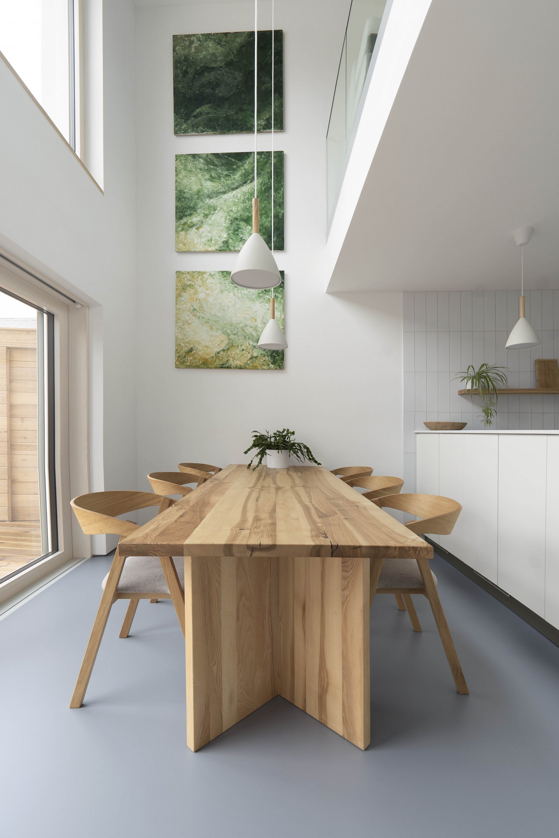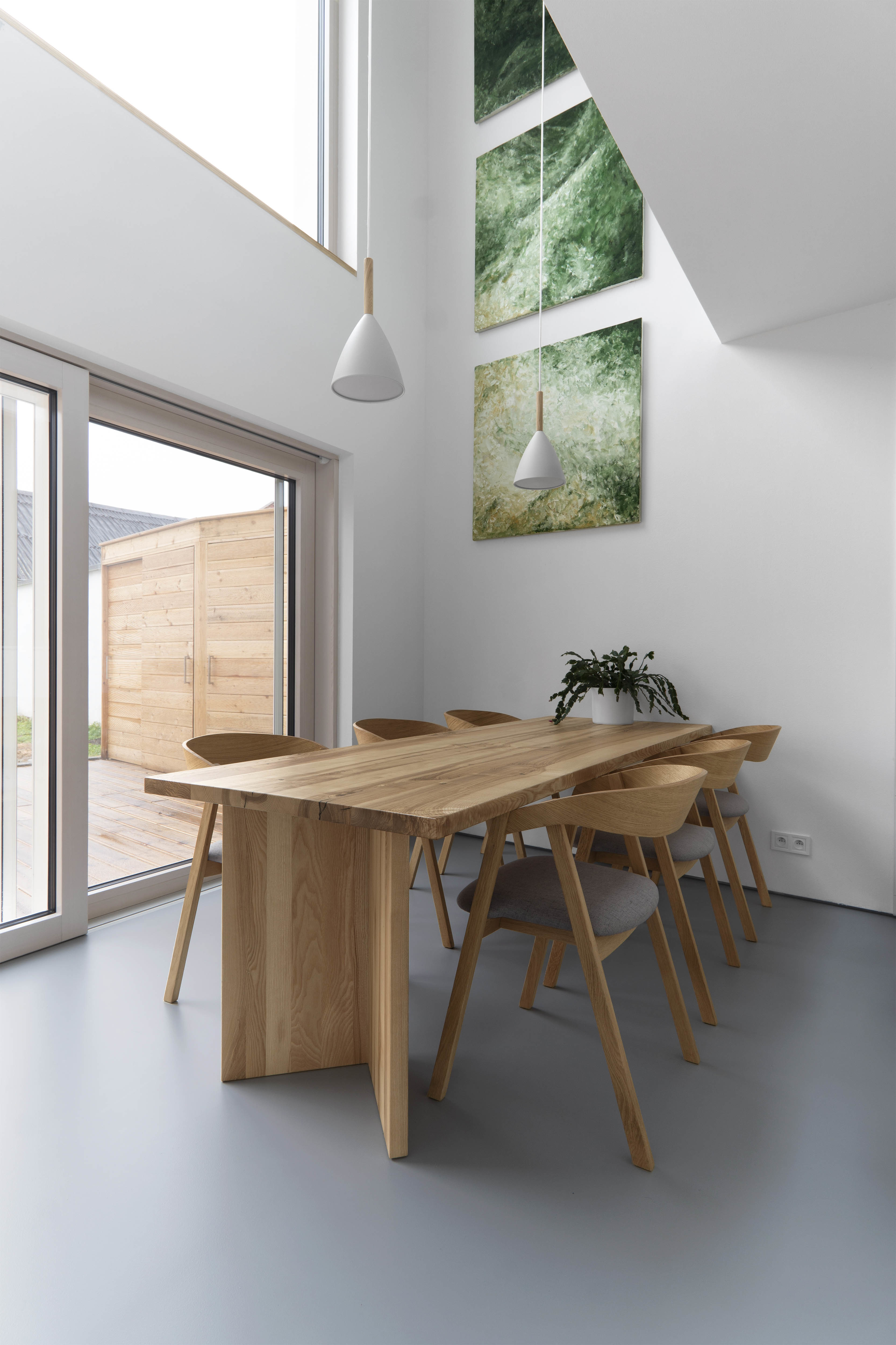Dům je určen pro mladou rodinu se dvěma dětmi a klade důraz na kvalitu materiálů a jednoduchost a maximální účelnost prostoru.