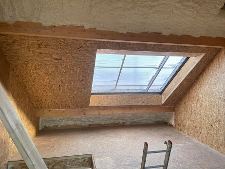 Okna jsou dřevohliníková s izolačním trojsklem a z exteriéru jsou odstíněna hliníkovými roletami. Střešní ateliéry jsou hliníkové s izolačním trojsklem z jihu doplněné o screenovou roletu. Střecha a oplechování vikýře je z bílého falcovaného plechu.