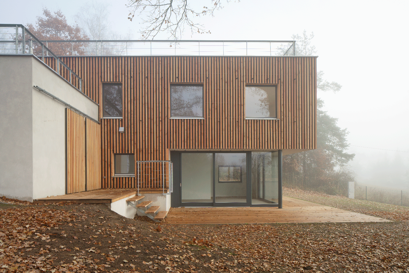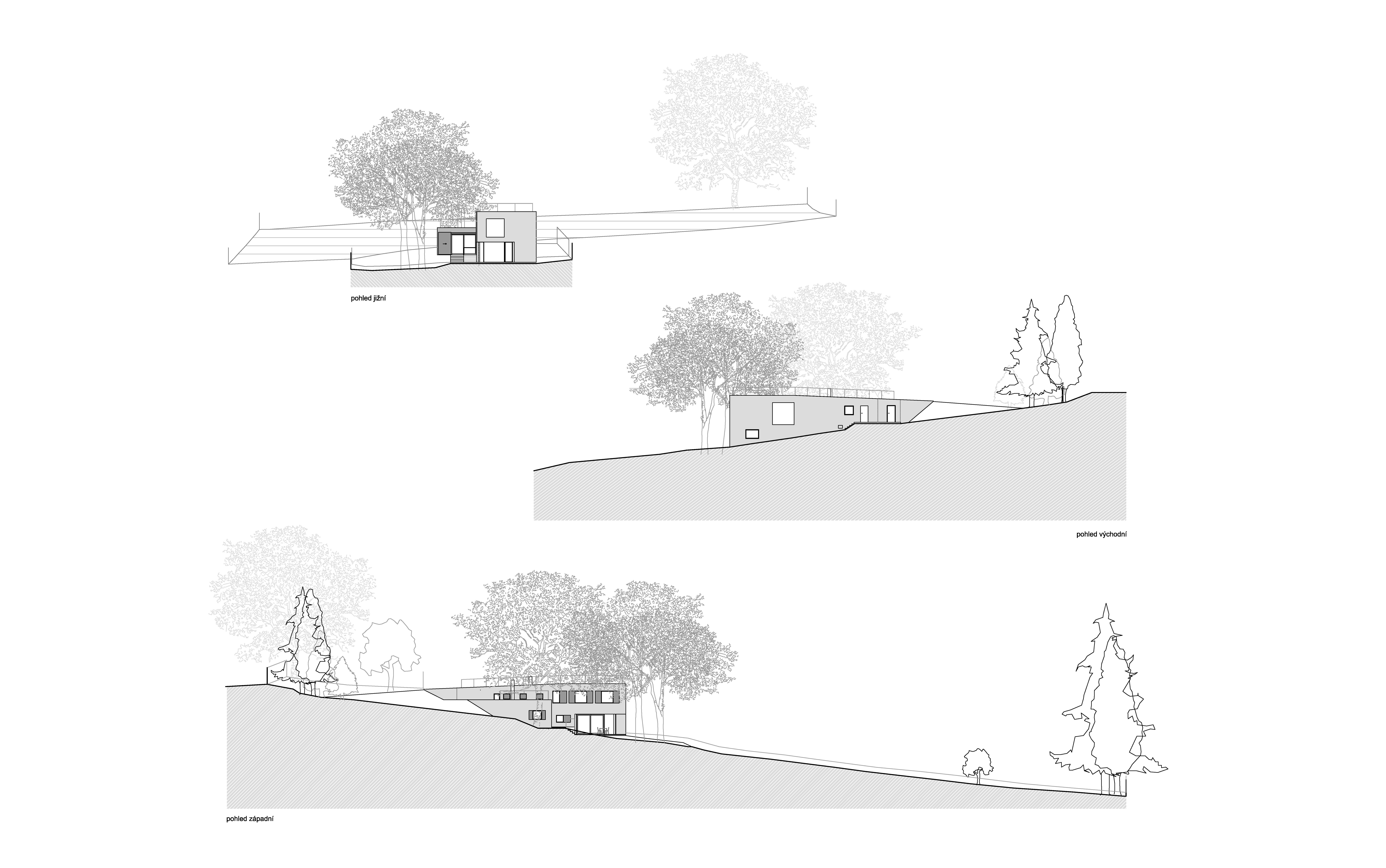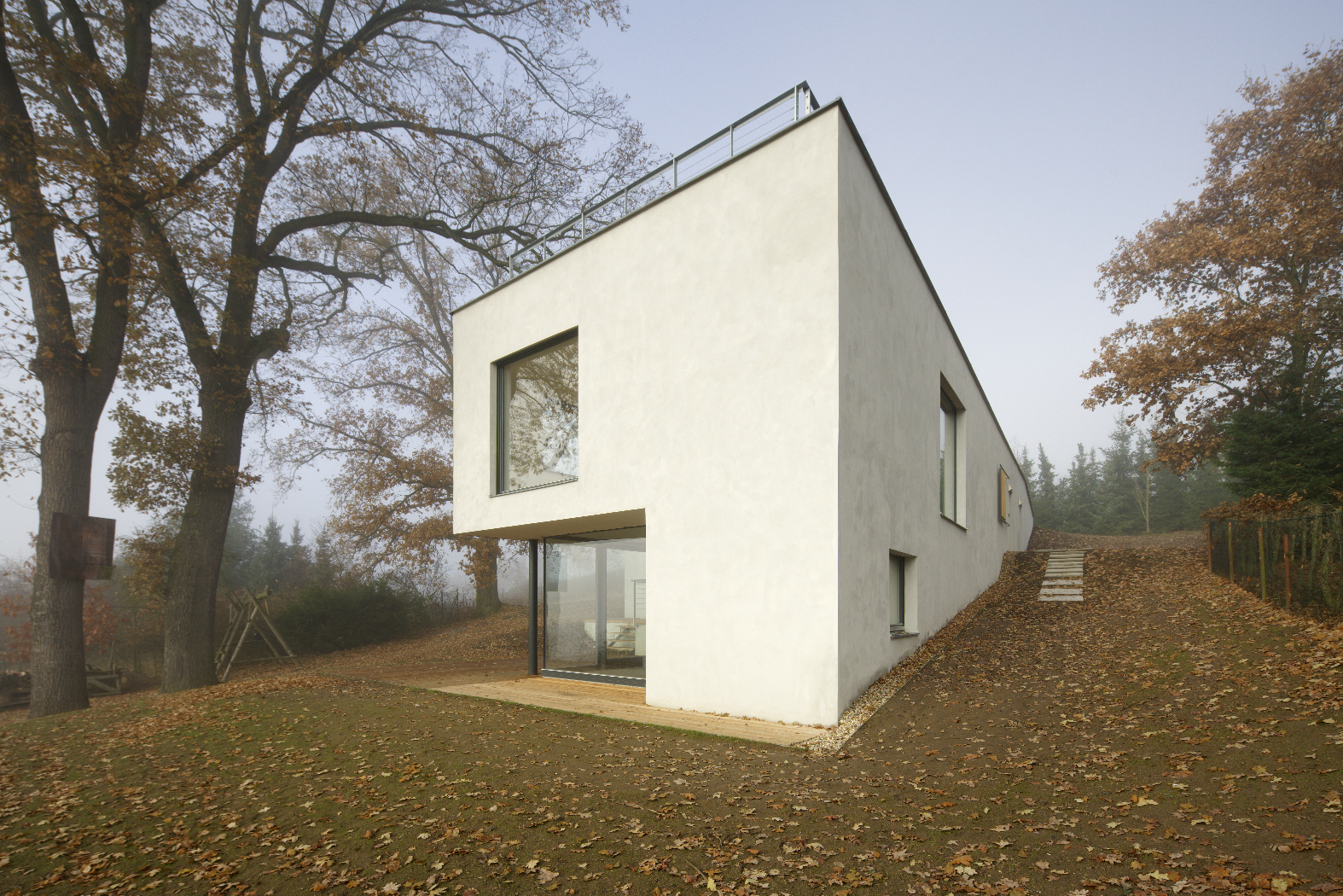 Umiestnenie domu vychádza z tvaru terénu a prístupu na pozemok zo severnej strany. Určujúcim prvkom sa stala aj poloha starých dubov. Návrh využíva kvality prostredia, ktoré stromy dotvárajú. Zvažujúci sa terén otvára výhľady na krajinu. Na južnej strane pozemku ostala zachovaná rozsiahla lúka.