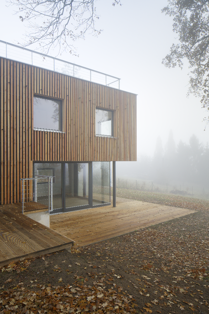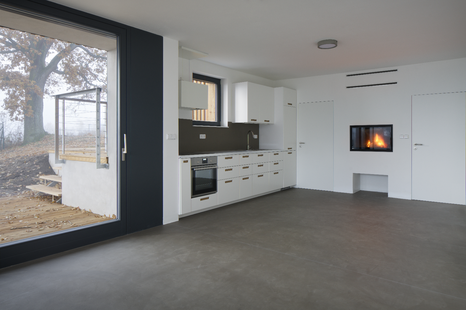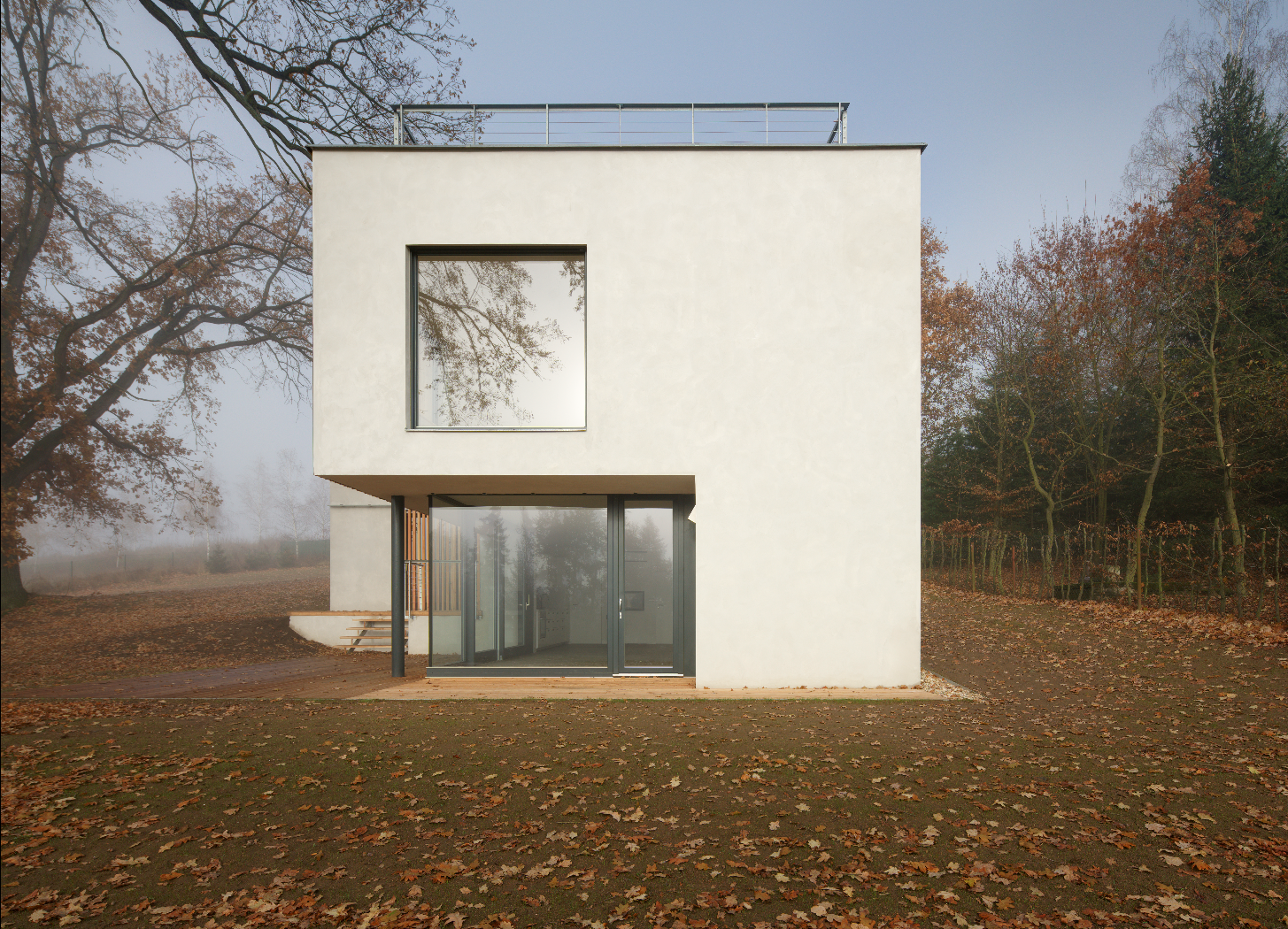 Presklené fasády opticky prepájajú vnútorné priestory s vonkajšími. Umožňujú široký výhľad do okolitej krajiny. Stromy prirodzene tienia terasy aj fasádu pred priamym juhozápadným slnkom. Zároveň zachovávajú intimitu miesta.