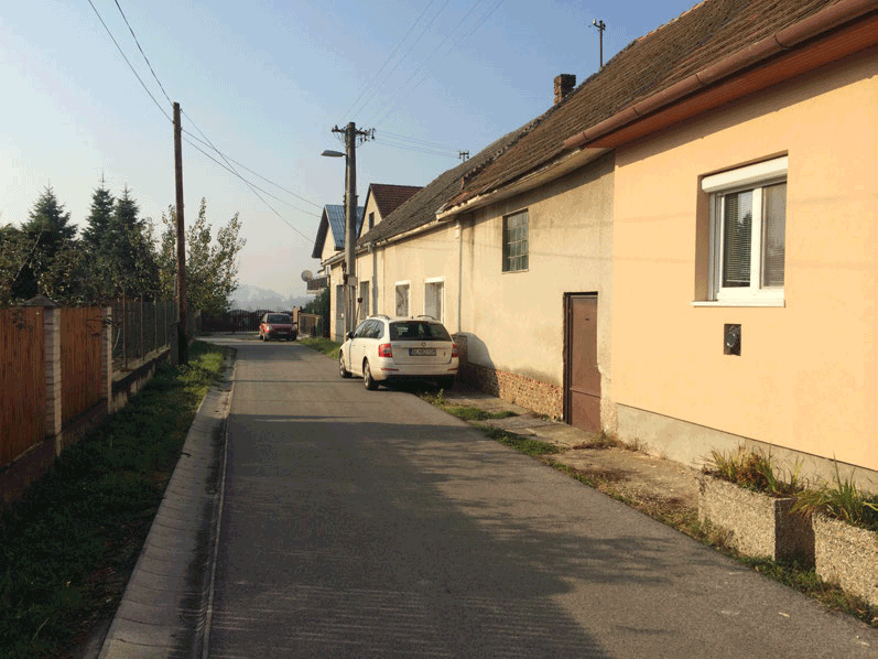 Úzka ulica pri kaštieli v Moravanoch nad Váhom si napriek koloritu stavebných úprav a pestrej farebnosti ponecháva pôvodného ducha miesta. Domy s podjazdom bez medzier boli prirodzené, majú príjemnú mierku a nevytvárajú hluché miesta na parcelách. Príjemný pocit pripisujeme práve týmto vlastnostiam.