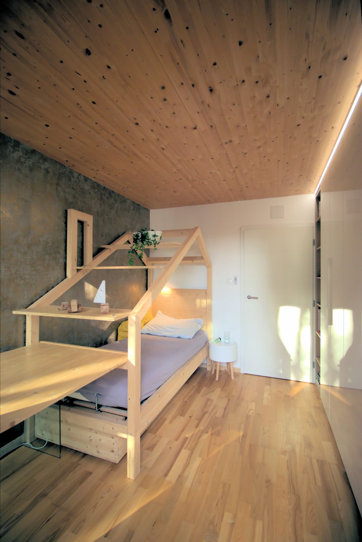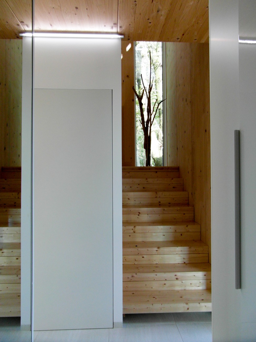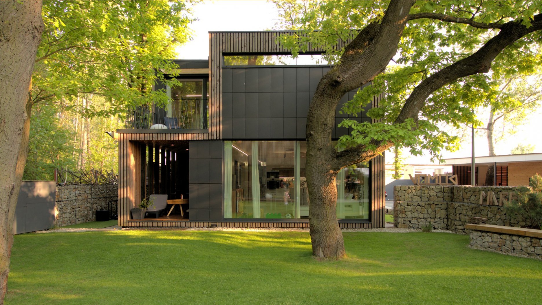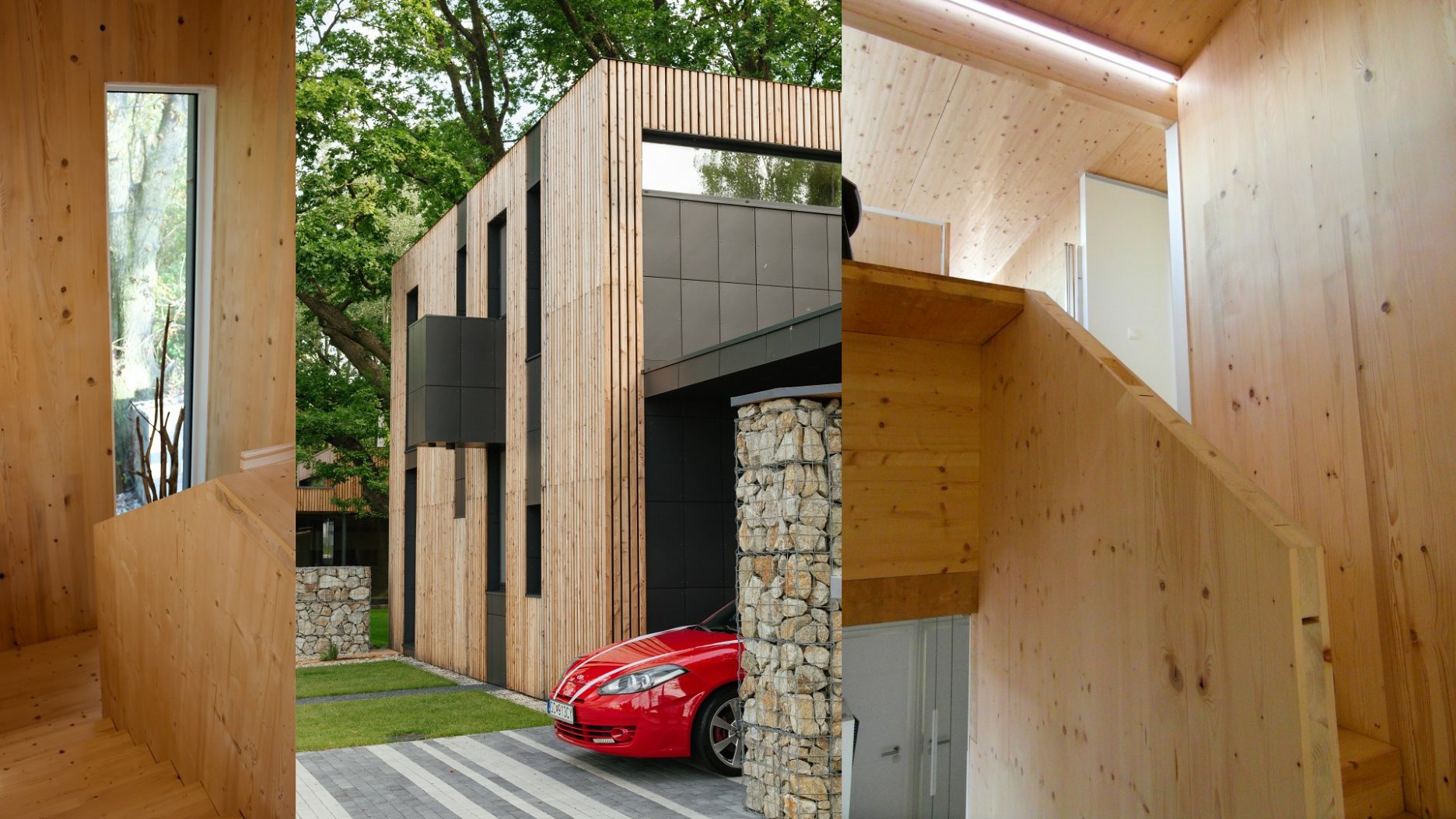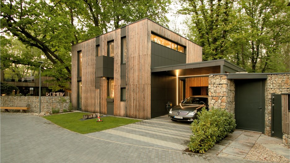 Jednotná filozofia spoločného projektu od začiatku určila, že stavby budú realizované z CLT panelov. Mikrourbanizmus ustúpil existujúcim stromom, čím vznikla nezvyčajná parcelácia s kľukatou cestou uprostred. Použitý CLT drevený masívny systém je do maximálnej mieri efektívne využitý a priznaný v interiéri bez akejkoľvek povrchovej úpravy. Zachovanie nádherných stromov na pozemku sa stalo základným mottom celého konceptu.