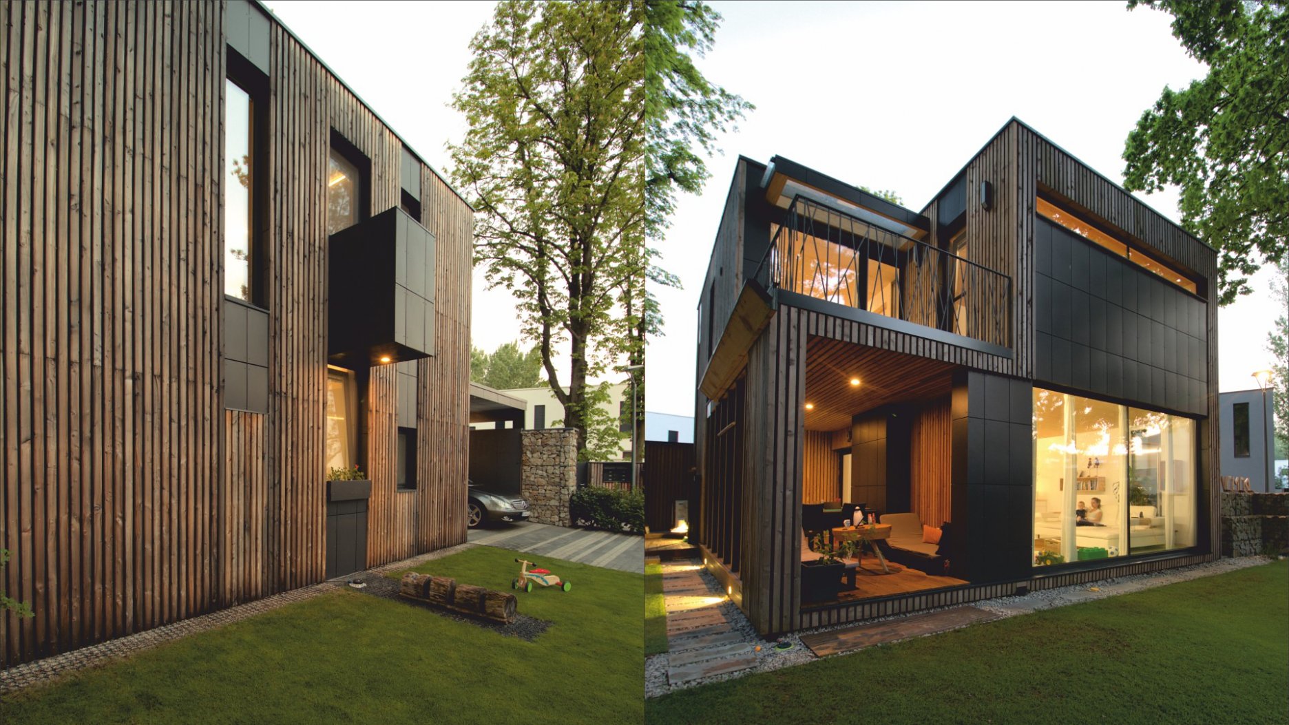 Z hľadiska architektonickej kompozície sme vychádzali z jednoduchosti foriem. Dom svojim malým objemom citlivo vstupuje do nového prírodného prostredia. Obkladové materiály fasády, najmä drevo korešponduje s charakterom lesného prostredia. Prevažujúce drevené plochy fasády kontrastujú s čiernymi fasádnymi obkladovými doskami Cembrit.
