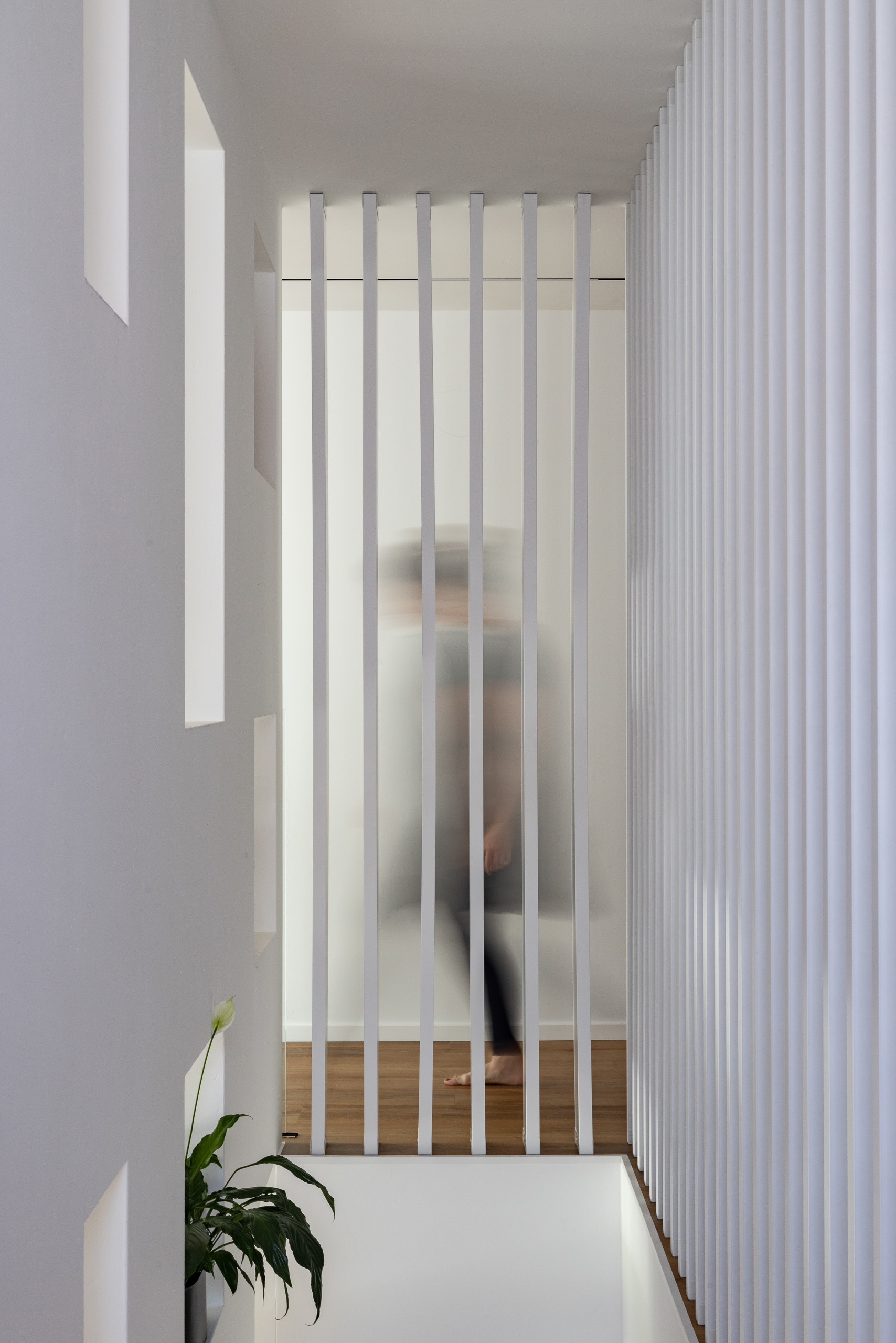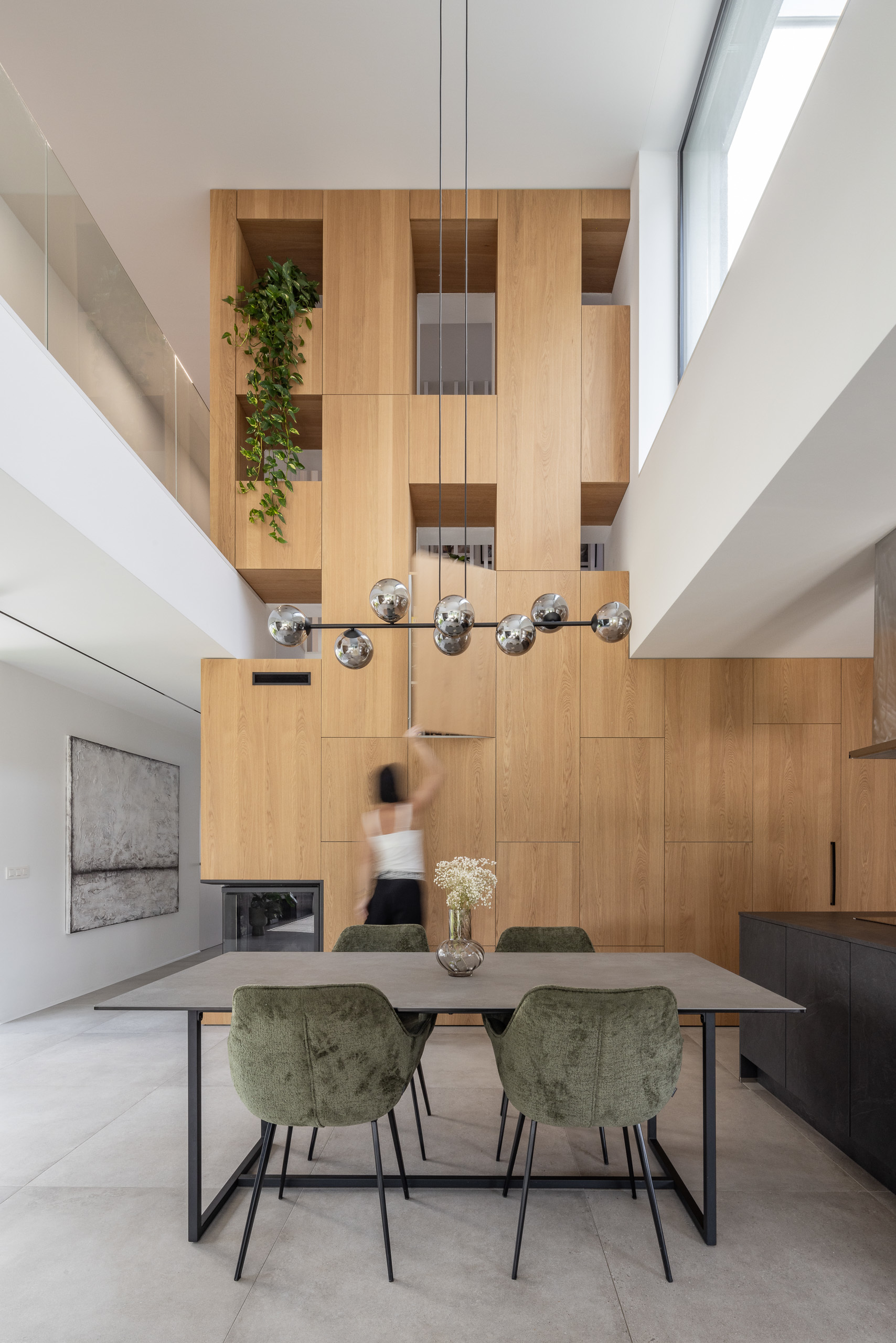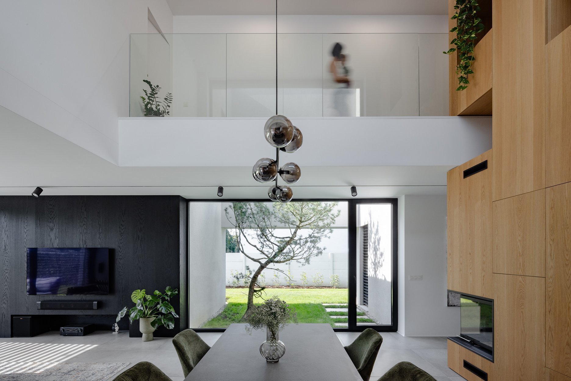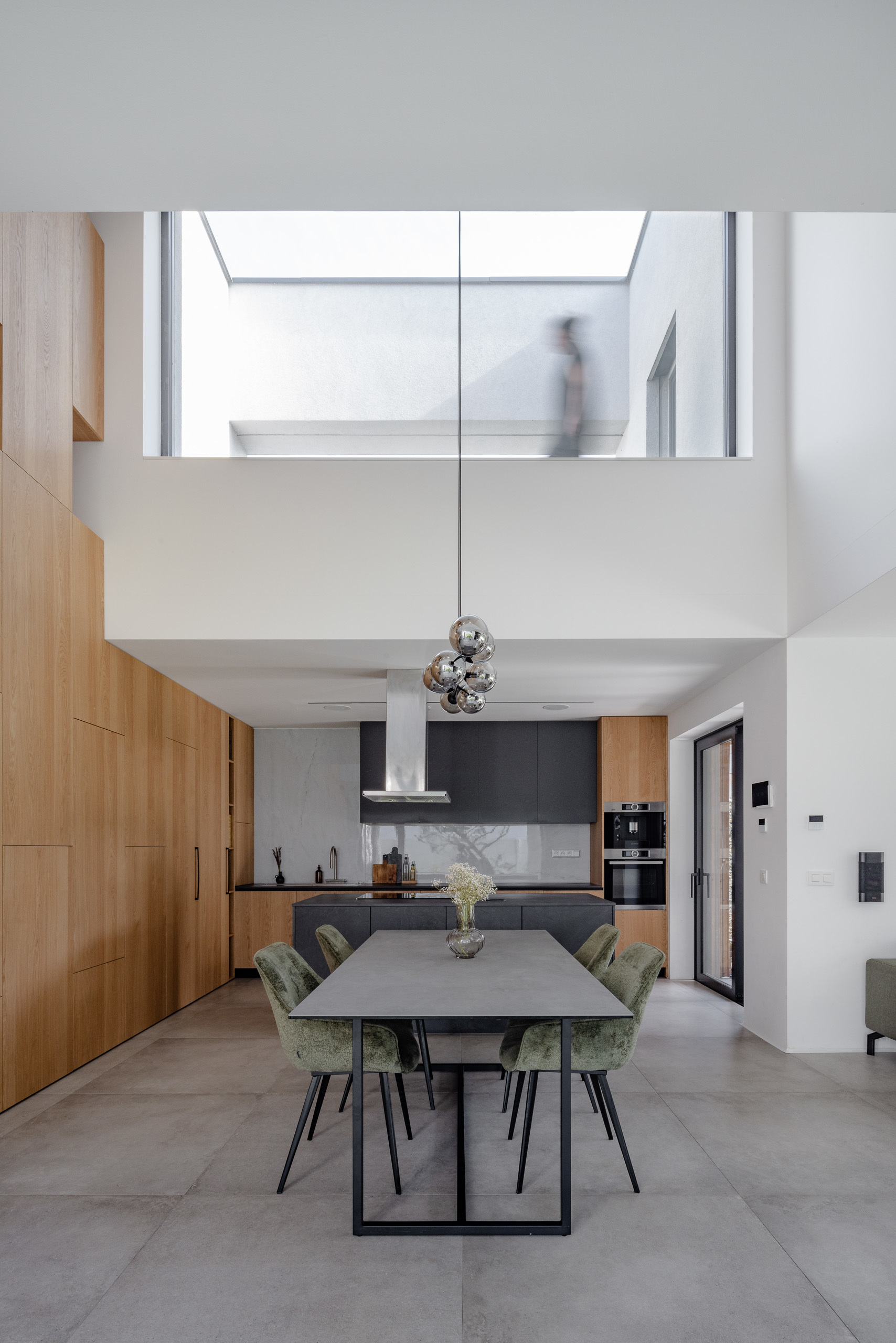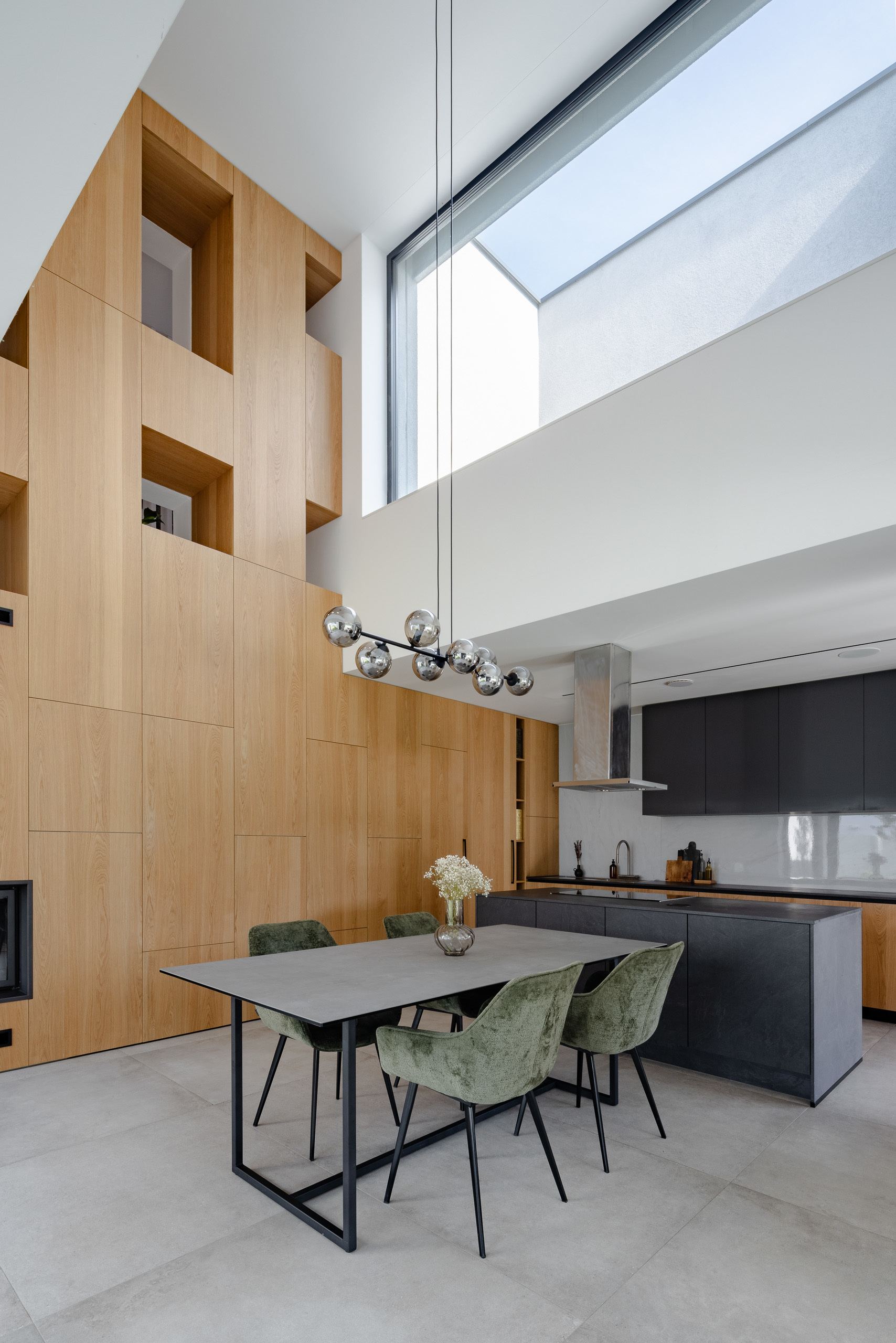 Rodinný dom z dielne ateliéru ARCHHOLIKS. Perforácia základnej hmoty, práca s prevýšenými priestormi v interiéri a ich prirodzeným presvetlením.