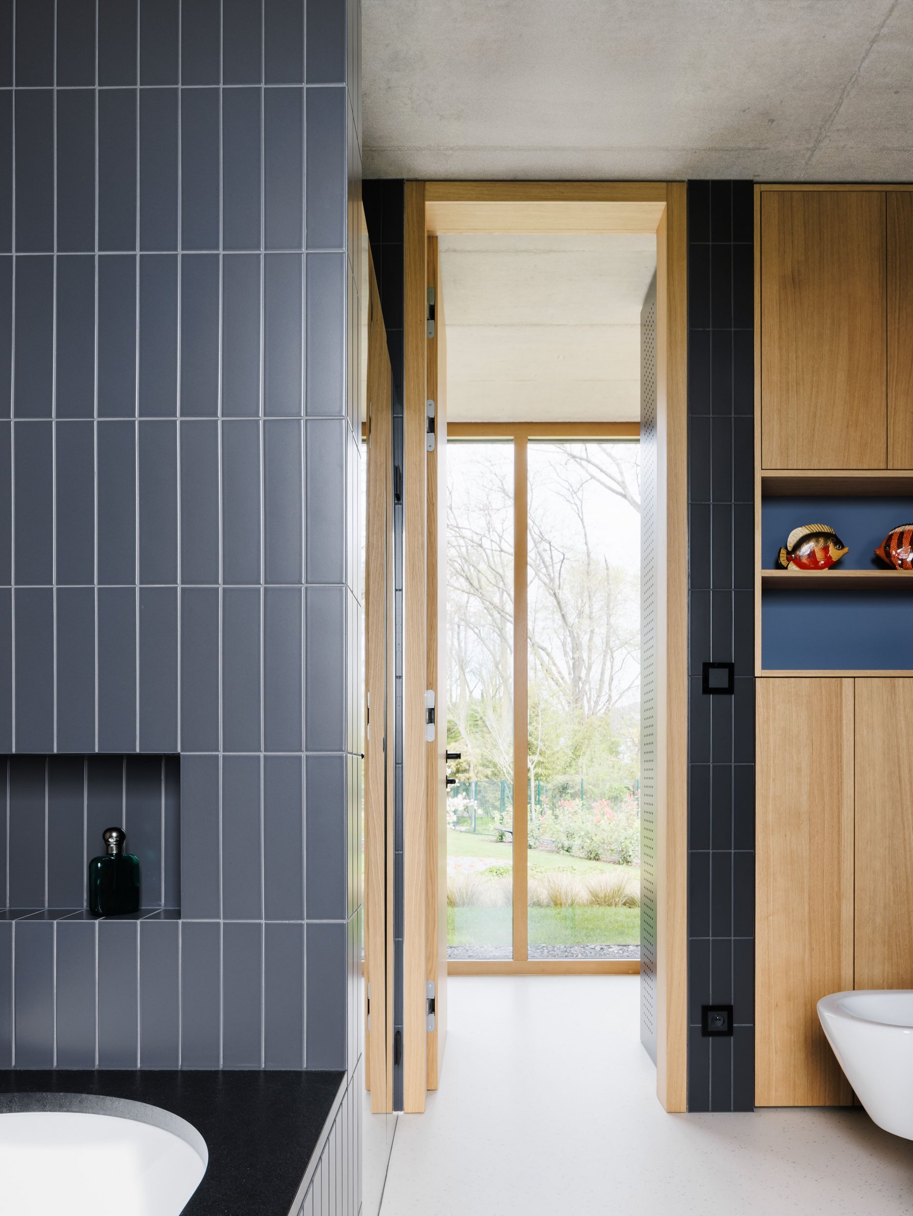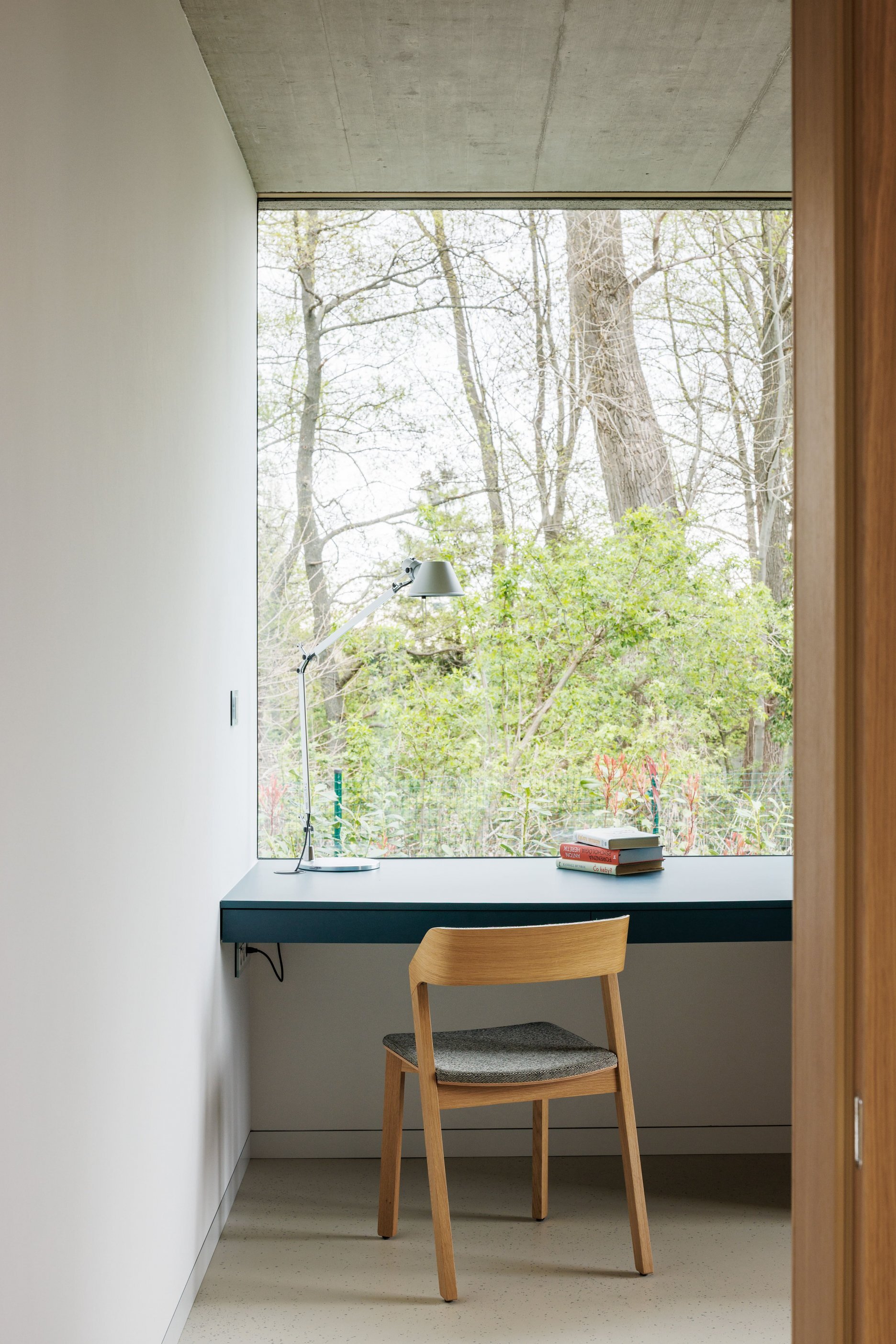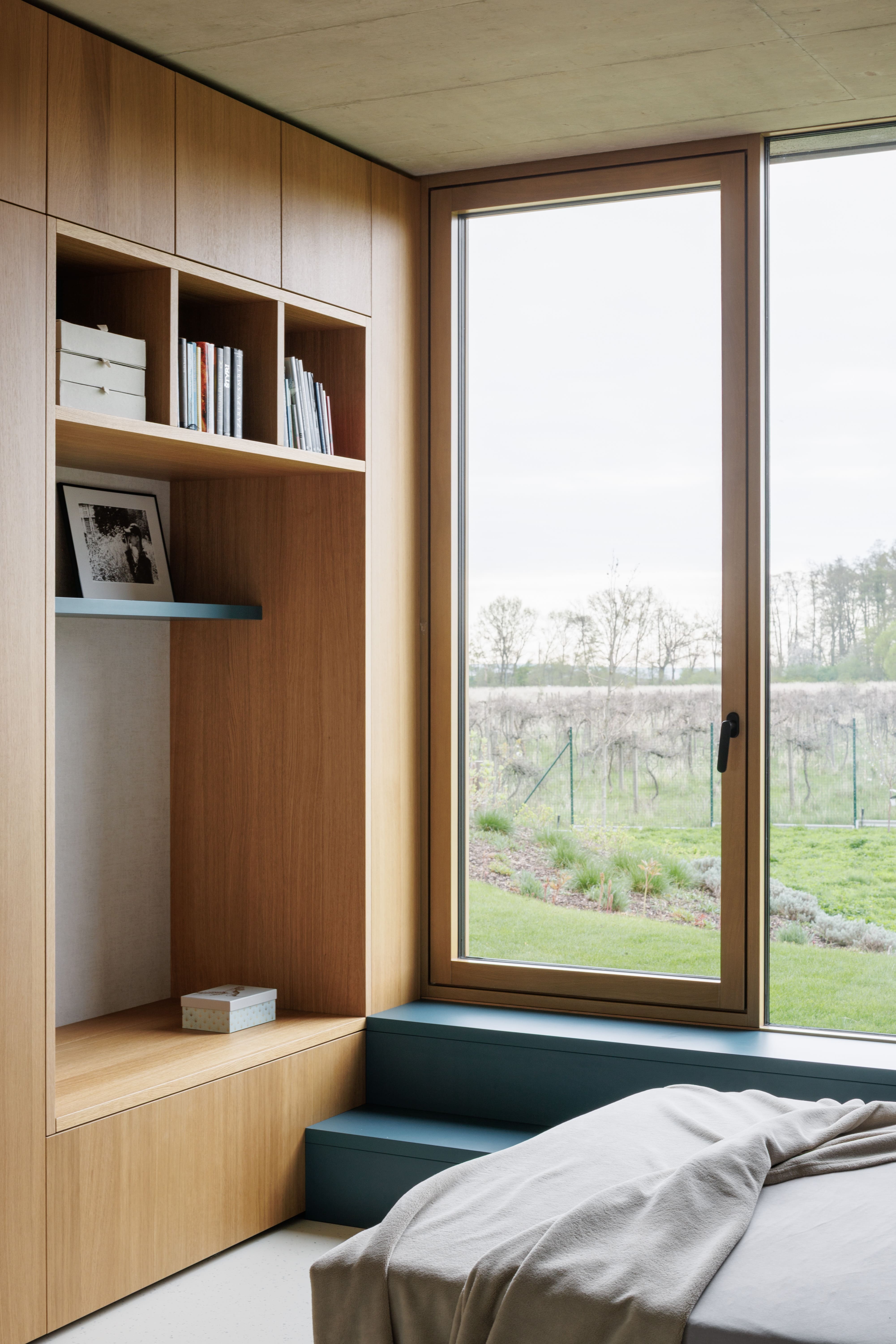 Jadrom rodičovského domu je denná zóna, priamo prepojená s krytou terasou. Tá umožňuje pobyt vonku počas celého roka, v každom počasí – v horúcom lete slúži ako letná kuchyňa a počas chladných dní ako zimná záhrada s pieckou. Na terasu sa plynulo napája vstupný gánok aj dielňa hospodárskeho domu. Nočná zóna je orientovaná do tichšej časti pozemku, smerom na les. Dom detí je samostatným svetom – vstup je súčasne knižnicou aj miestom pre oddych a z každej jeho miestnosti je výhľad do vinohradu. Dielňa v hospodárskom dome plynulo prechádza do exteriéru a mení sa na krytú vonkajšiu verandu priamo pred vinohradom.