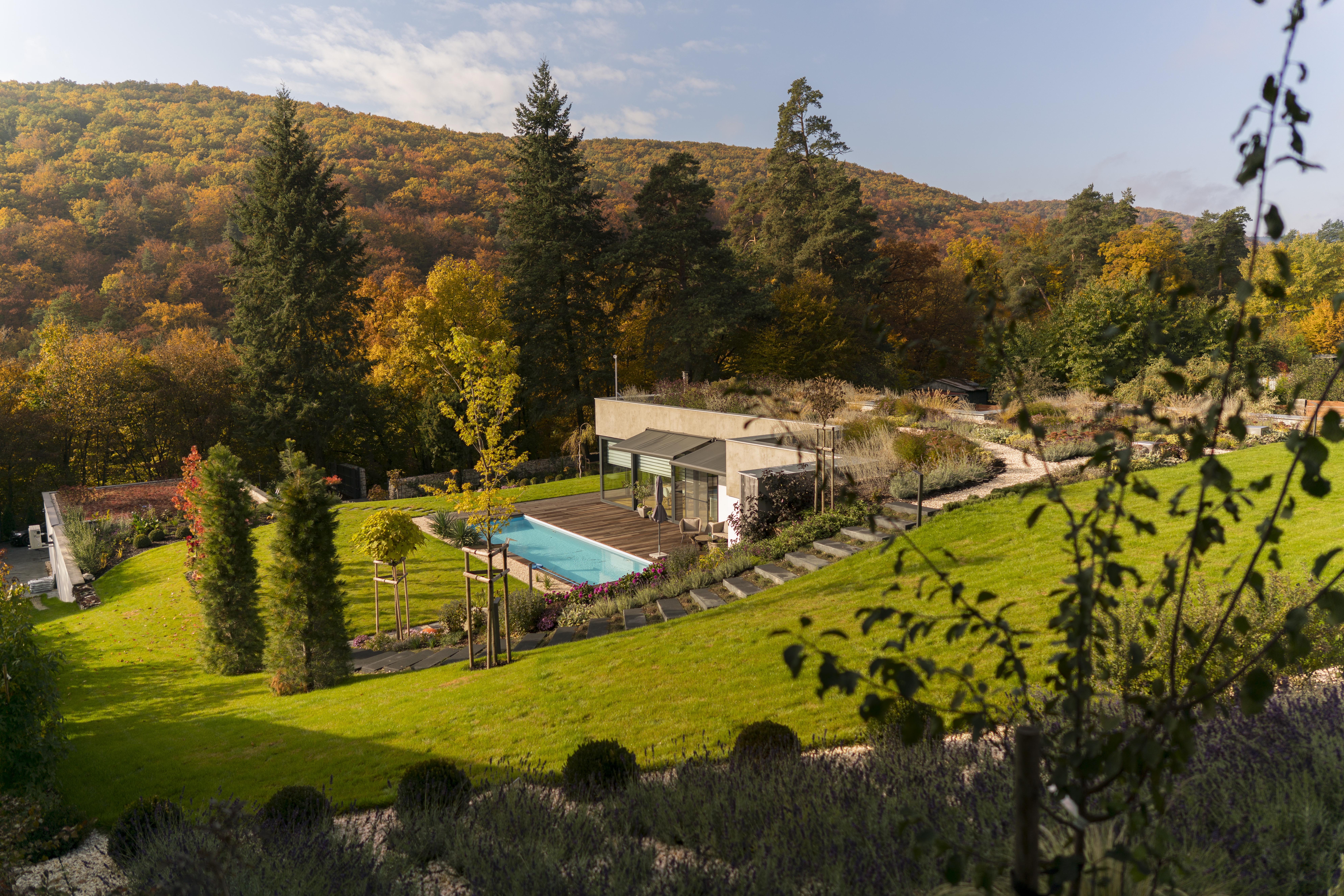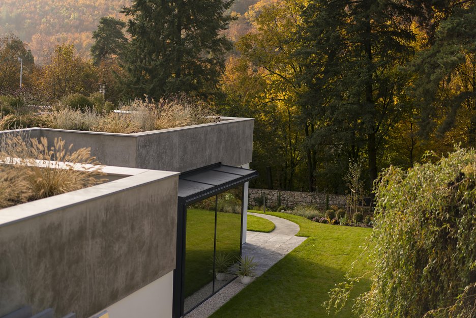 Prezentované riešenie ukazuje aj iný pohľad. Že nie iba samotná forma objektu je dôležitá. Práve naopak. Stavba môže byť i triviálna, nenápadná. Tvorená iba obyčajnými pravouhlými plochami omieky, skla, výplní, kamennými múrikmi... Pomocou týchto nástrojov však šikovní architekti v tomto prípade prioritne formujú priestory, nie fasádu. Tie chránené pred počasím v interiéri, i tie okolo domu. Nielen v blízkych, ale i v ďalekých súvislostiach, viažúcich sa na krajinu a jej vnímanie.