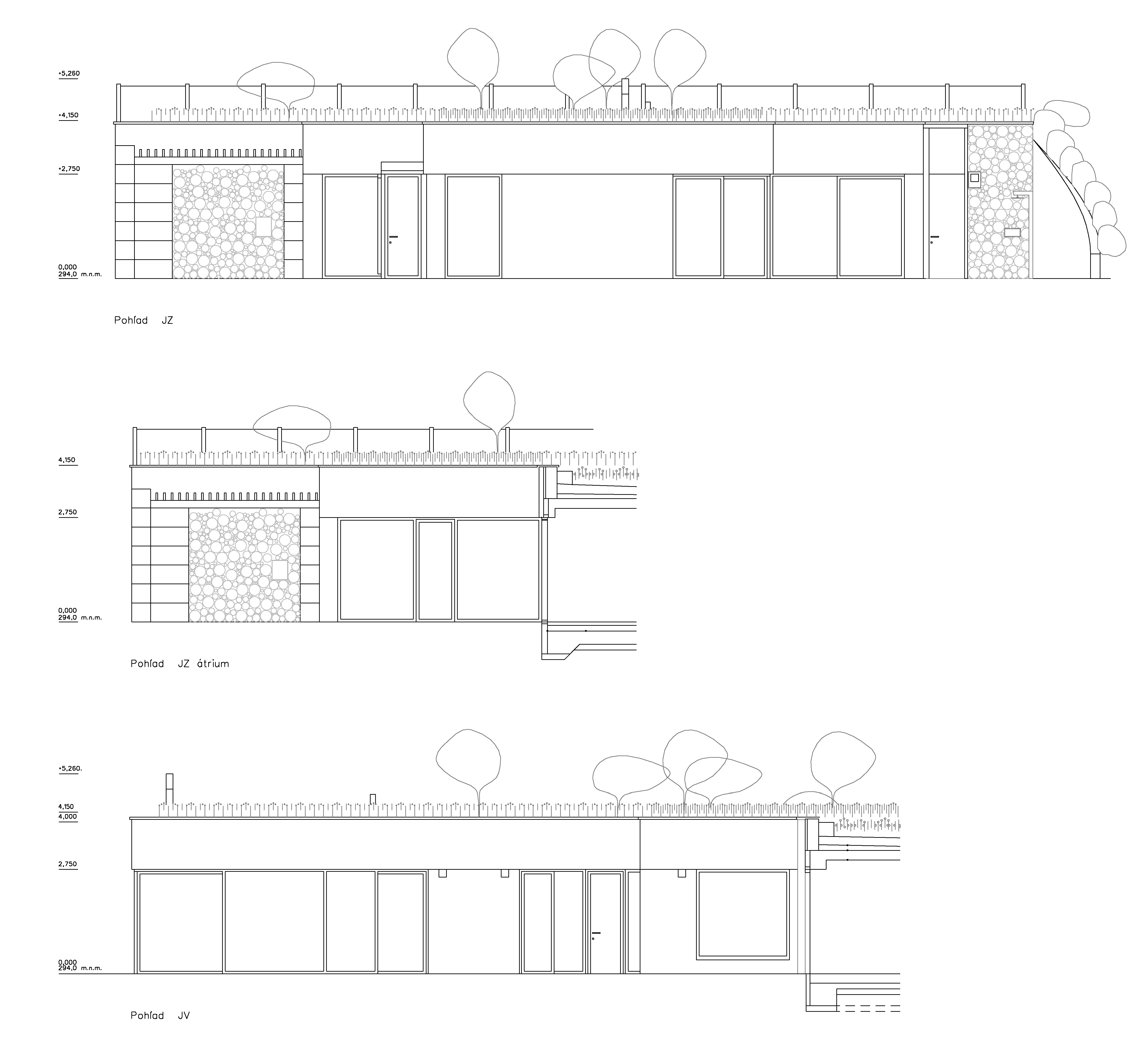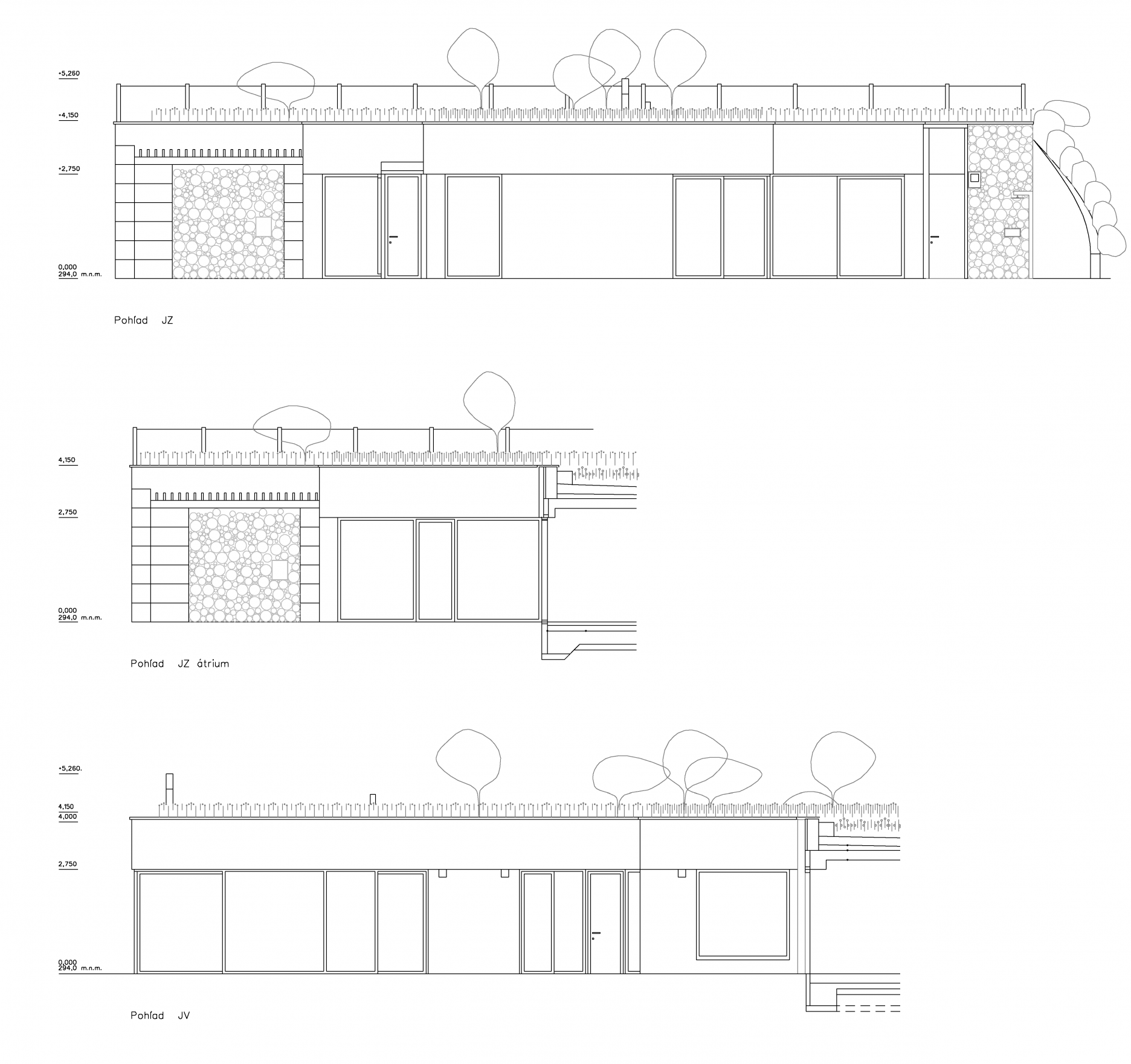 Vertikálny objekt s malou zastavanou plochou, alebo horizontálny objekt s nízkou výškou - bola jedna zo zásadných otázok pri riešení konceptu návrhu. Konečným riešením je jednopodlažný objekt čiastočne zapustený v zemi so zelenou strechou, v podobe lúky alebo záhrady priamo napojenej na jestvujúci terén.