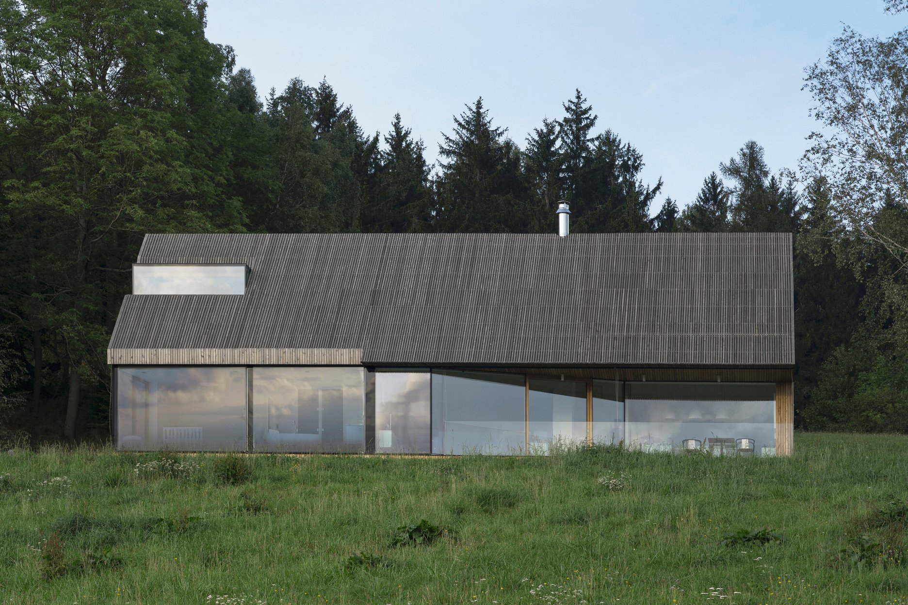 Návrh domu na samote rozmermi zodpovedá objektu, ktorý tu v minulosti stál. Výslednú archetypálnu formu domu do značnej miery ovplyvnila prísna regulácia výstavby v chránenom území. K vonkajším faktorom pribudla požiadavka investora na sofistikované stvárnenie vnútorného priestoru.