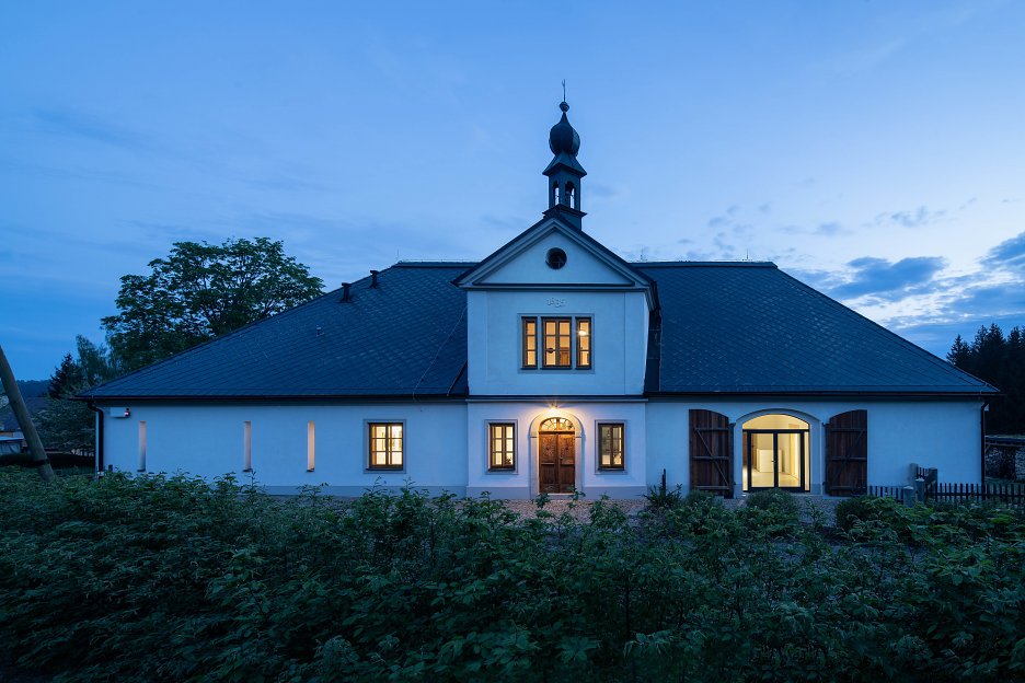 Návrh architektov Aleša Pappa a Magdaleny Pappovej vychádza zo zachovaných dobových plánov. Podľa nich obnovili symetrickú kompozíciu stavby, postupovali pri stvárnení fasád a doplnili zaniknutú zvoničku. Do obnovy všetkých zachovaných prvkov sa pustili miestni remeselníci. “Díky velkorysosti klienta jsme měli možnost vytvořit komplexní architektonické dílo, od sanace stavby, až po detailní návrh jednotlivých prvků jejího interieru. Budova tak byla přestavěna na pohodlné obytné stavení, a protože její majitel je sběratel užitného skla, součástí stavby bude v blízké budoucnosti i veřejná galerie jeho sbírky,” vysvetľujú architekti.