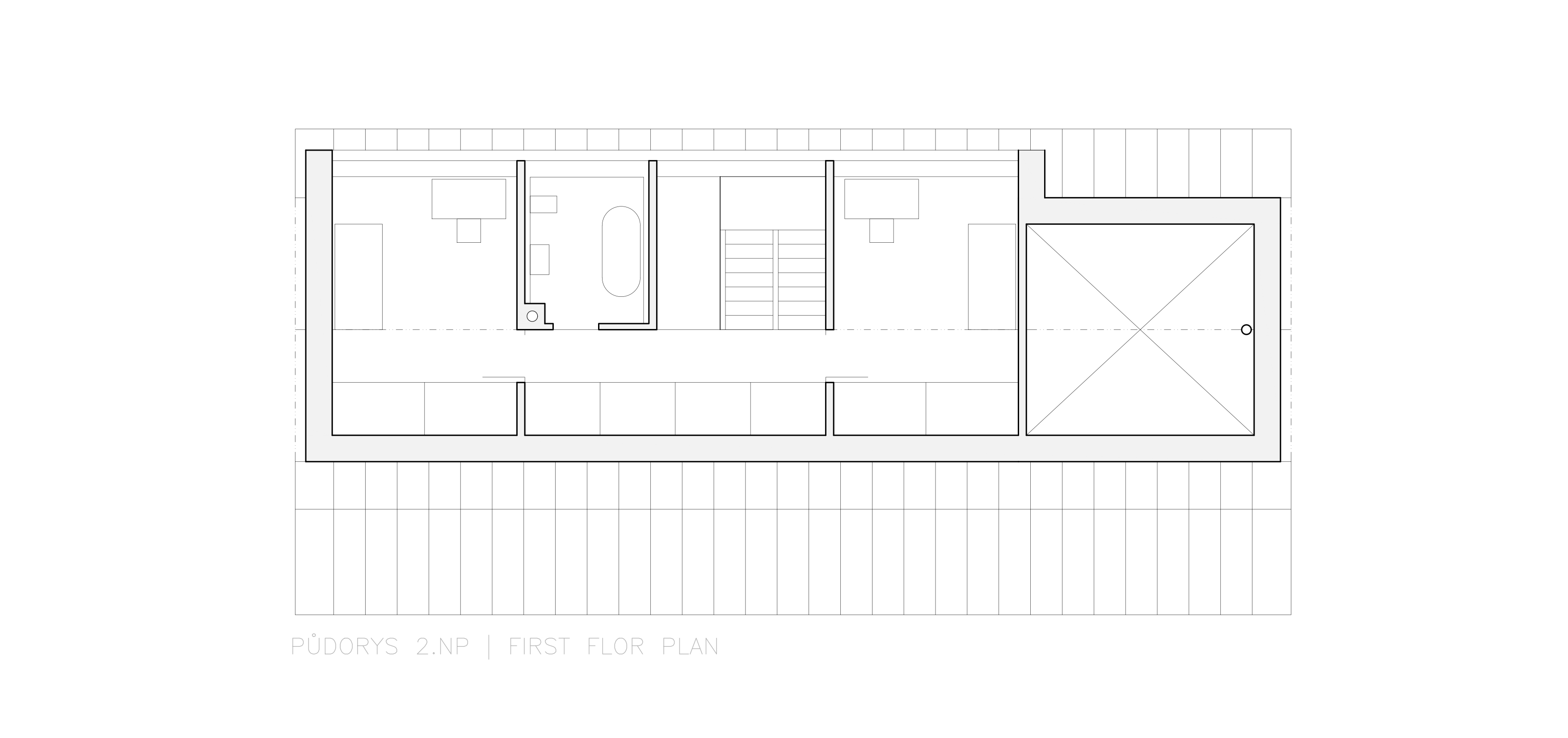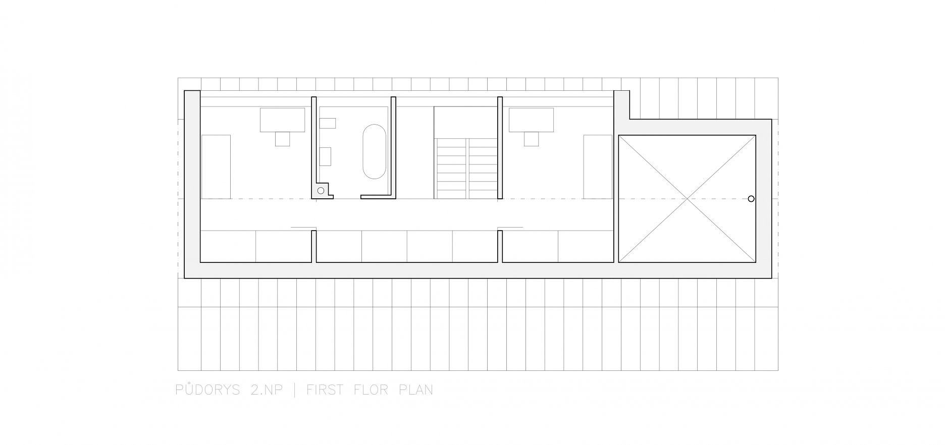 Z chodby na prízemí je prístupná hygiena a spálňa rodičov. Ťažiskovým priestorom domu je schodisková hala, ktorá prepája prízemie s galériou na poschodí. Ochodza sprístupňuje ďalšie dve izby.