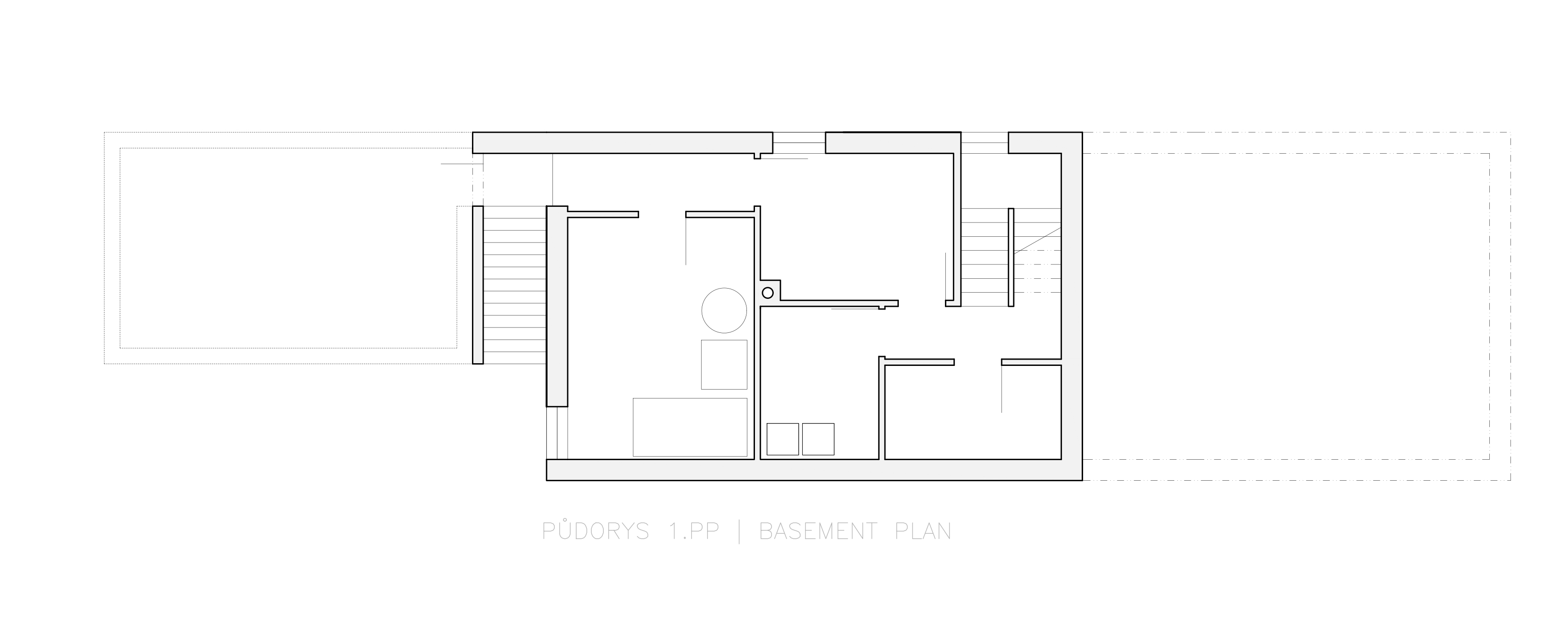 Technické miestnosti sa nachádzajú v pivnici, kúrenie zabezpečujú kotle na pelety. Na pivnicu nadväzuje klenutá miestnosť, ktorú navrhol sám majiteľ.
