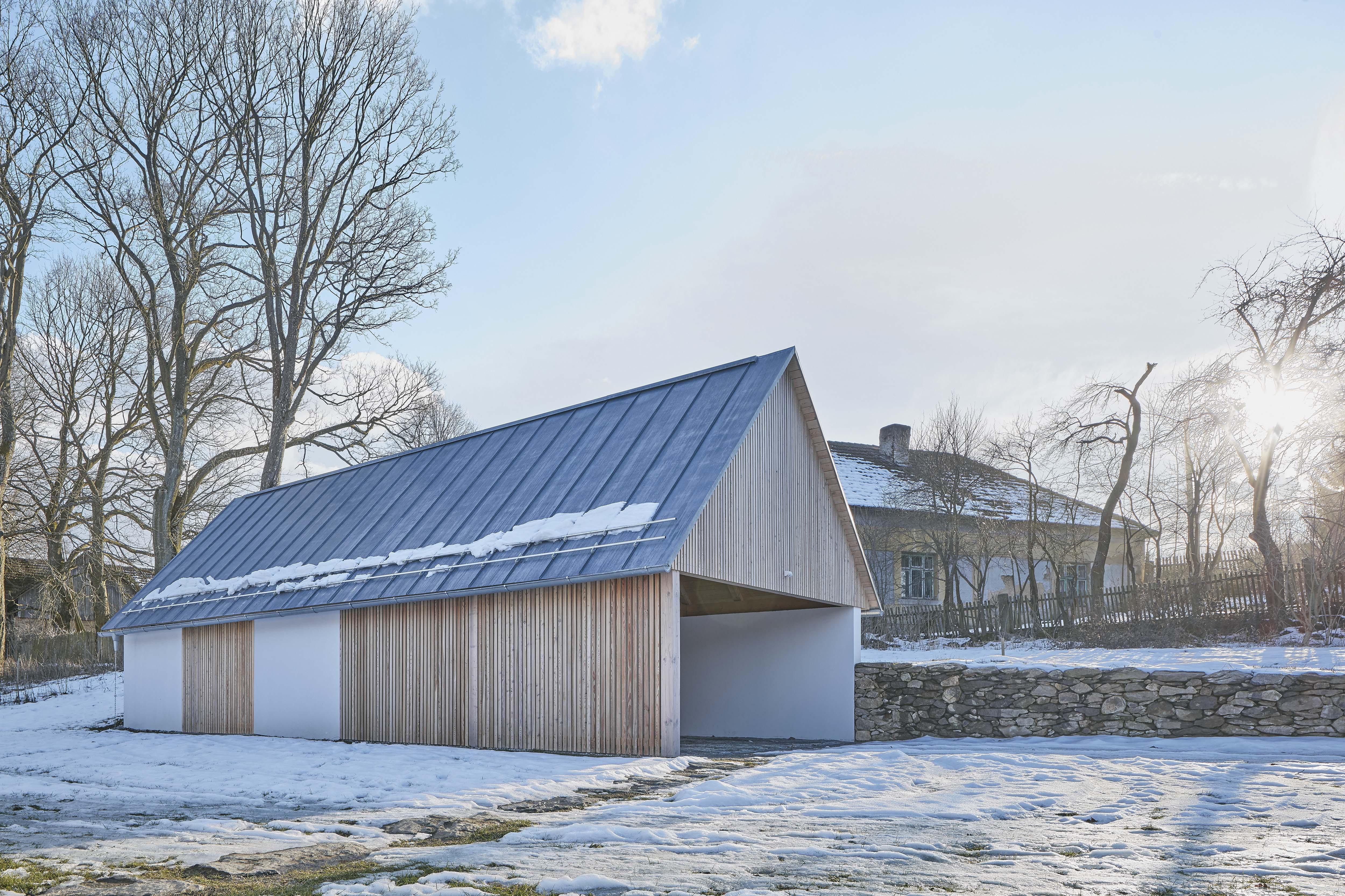 "Skromnejší" hospodársky objekt slúži ako prístrešok pre parkovanie a príručný sklad.