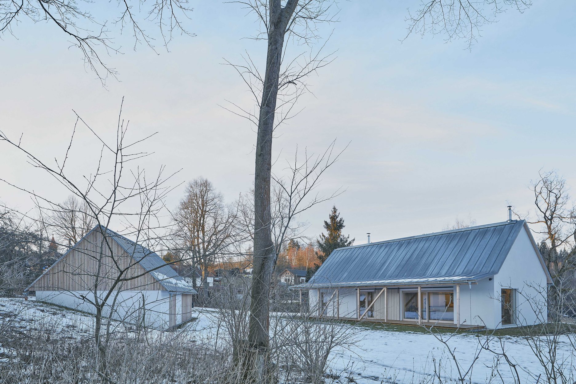 Architekti doslovne nekopírujú typológiu, tvaroslovie či dekor miestnej "ľudovej" architektúry. Voľne však pokračujú v duchu overených princípov. Stavby z prírodných materiálov sú z veľkej časti postavené "svojpomocne". Napriek tomu však precízne a účelne. V dispozícii je možné vyčítať tradičnú "trojpriestorovú" schému (v tomto prípade spálňa, vstup, obývacia izba) doplnenú o gánok na juhozápadnej fasáde.