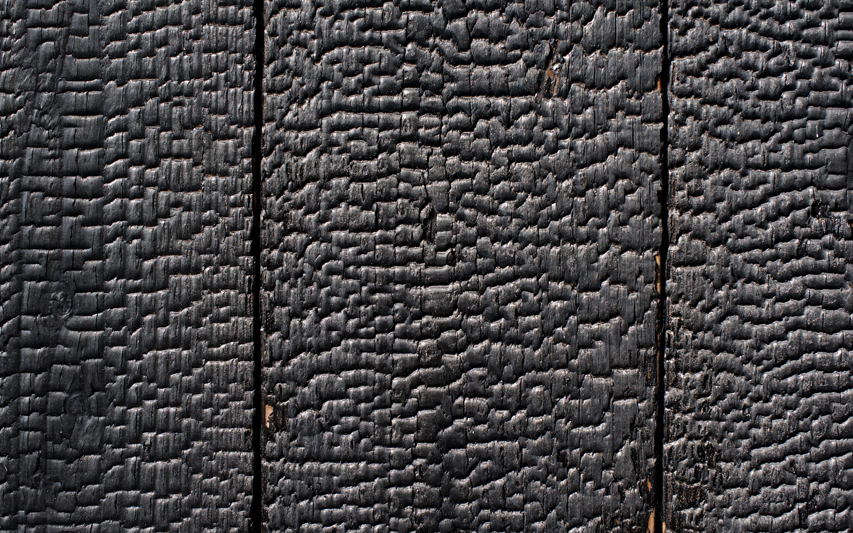 Video ukazuje proces opaľovania dreva tradičnou japonskou technikou "yakisugi-ita":
