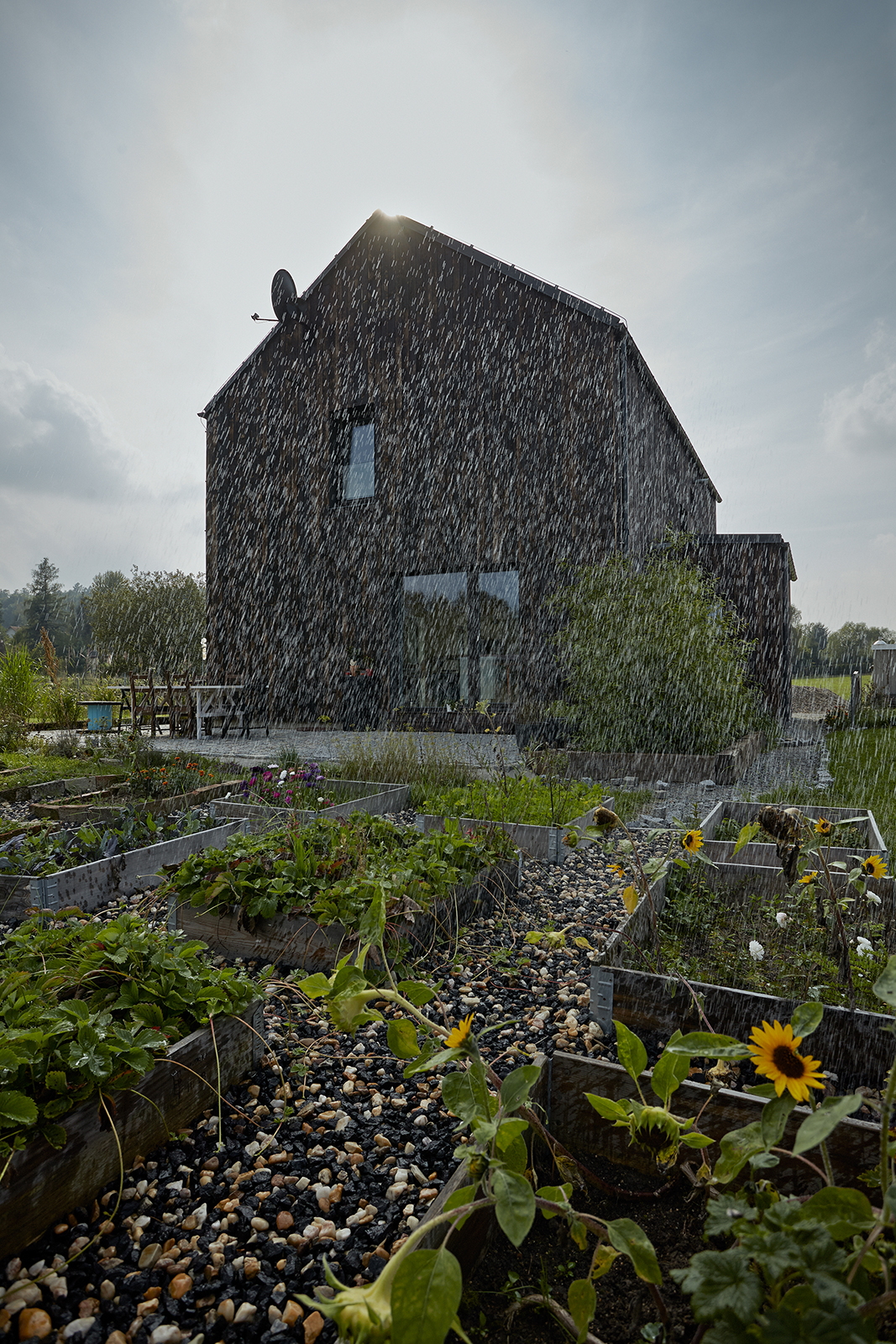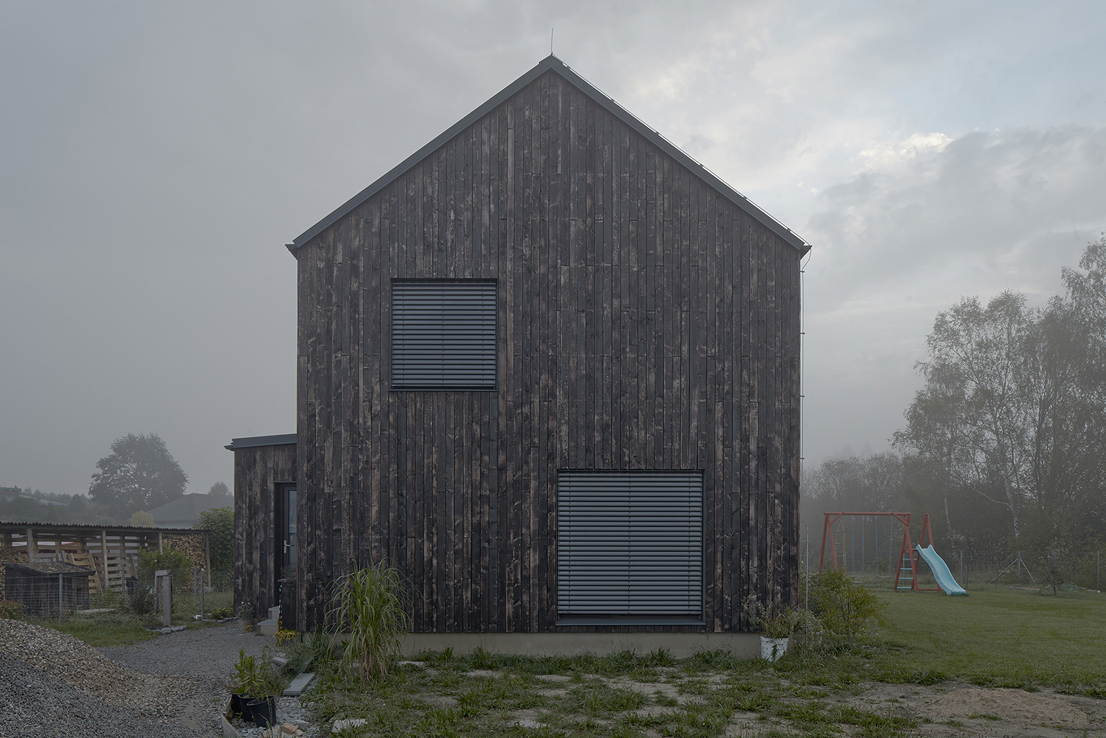 Projekt vychádza z potrieb mladej rodiny, ktorá sa rozhodla presťahovať z mesta na vidiek. Pri obci Pyšely sa rodine podarilo nájsť čistý vzduch, a prírodu. Aj napriek krásnemu výhľadu na les sa dom nenachádza na samote, ale uprostred zástavby rodinných domov. Dôležitou súčasťou domu sa stala záhradka na pestovanie zeleniny a hospodársky využívaná plocha pozemku.