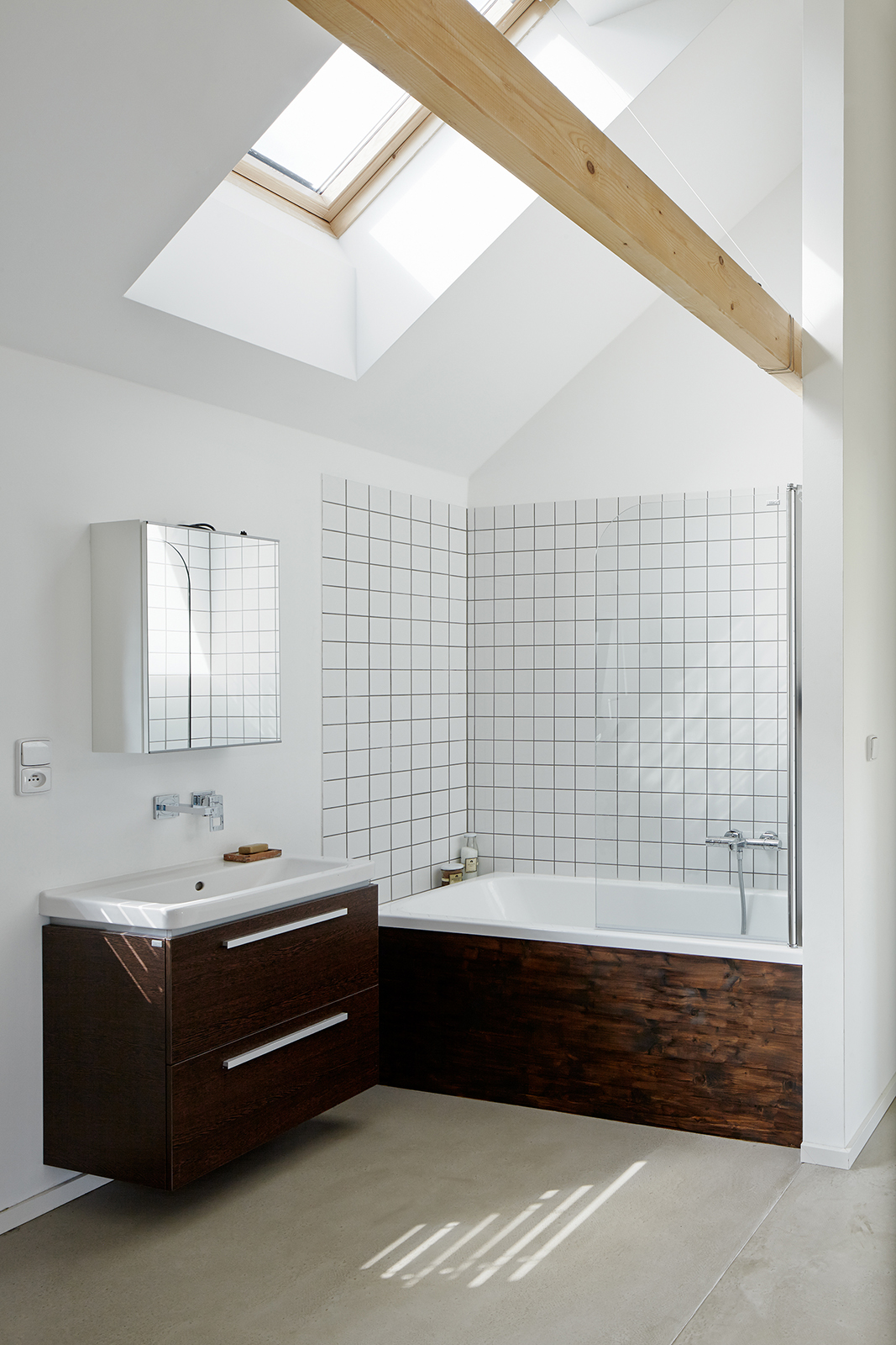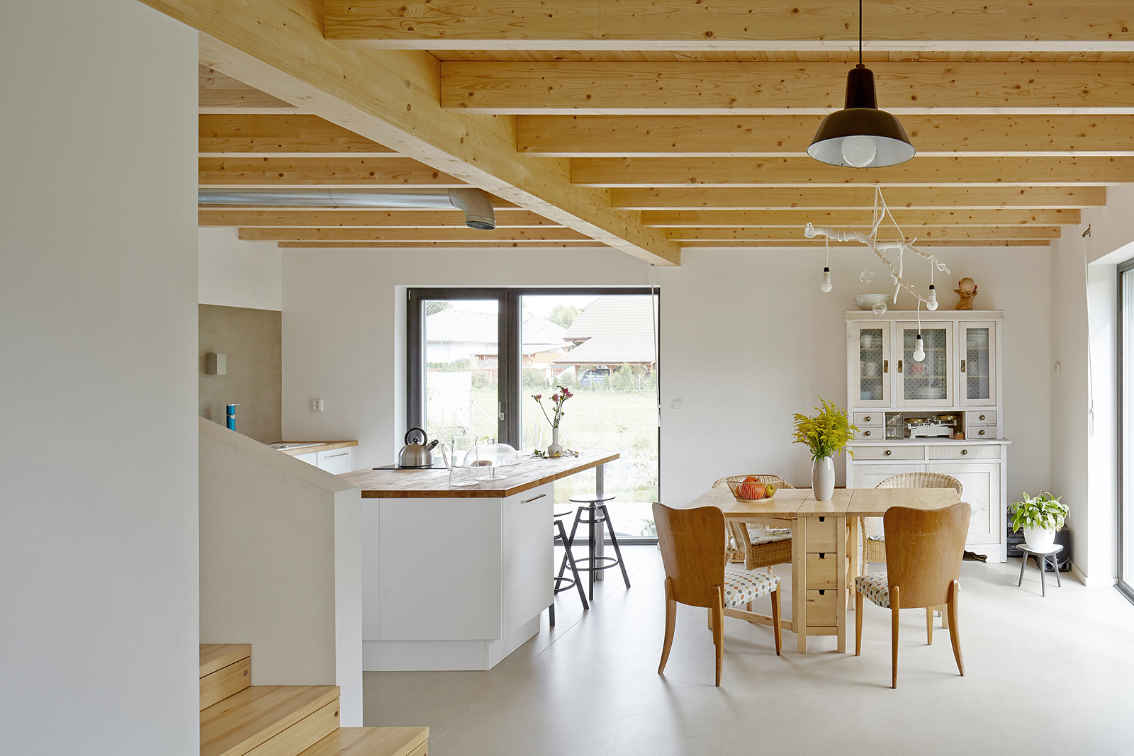 Projekt počíta z využitím otvoreného krovu ako spacieho priestoru detskej izby.