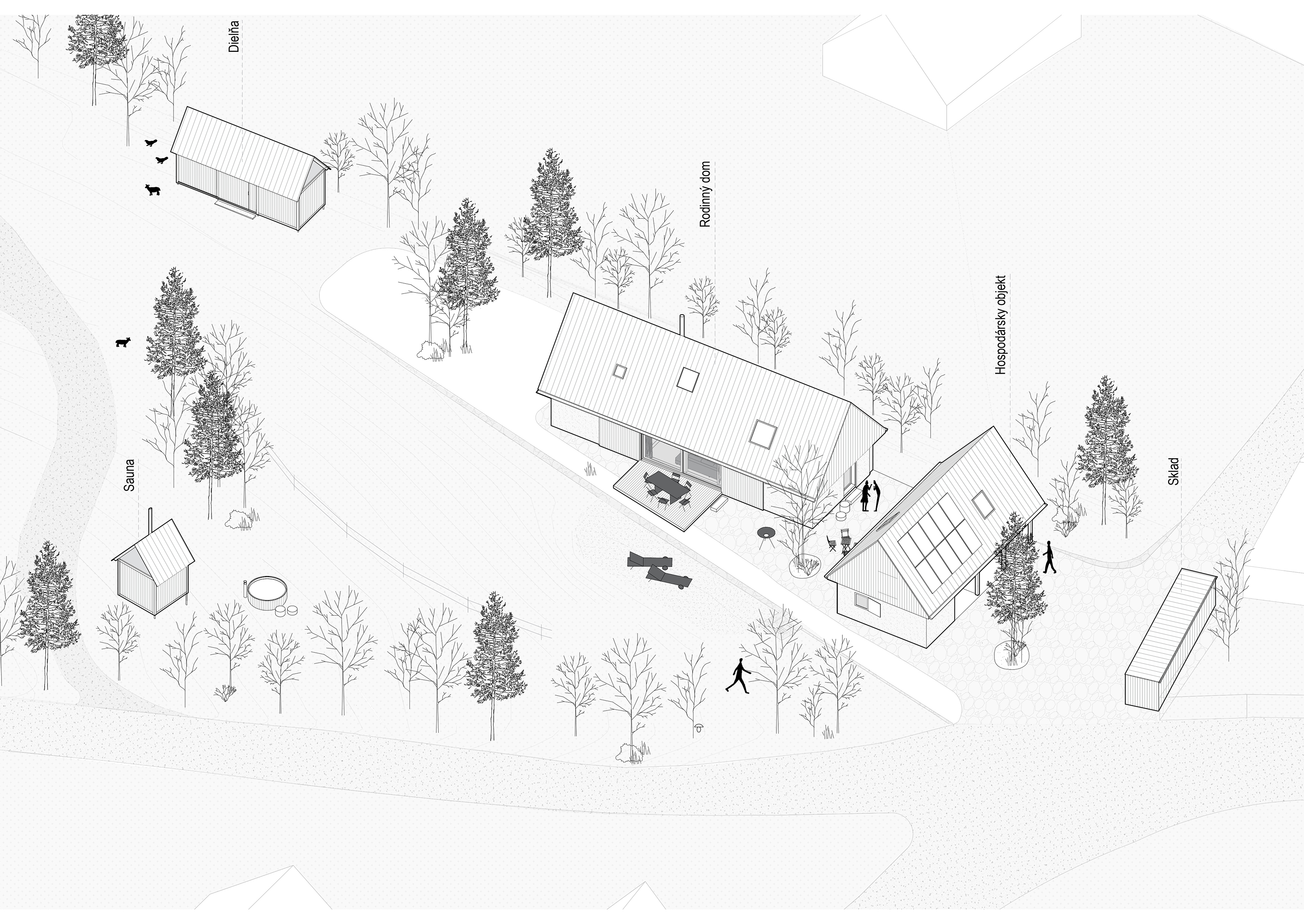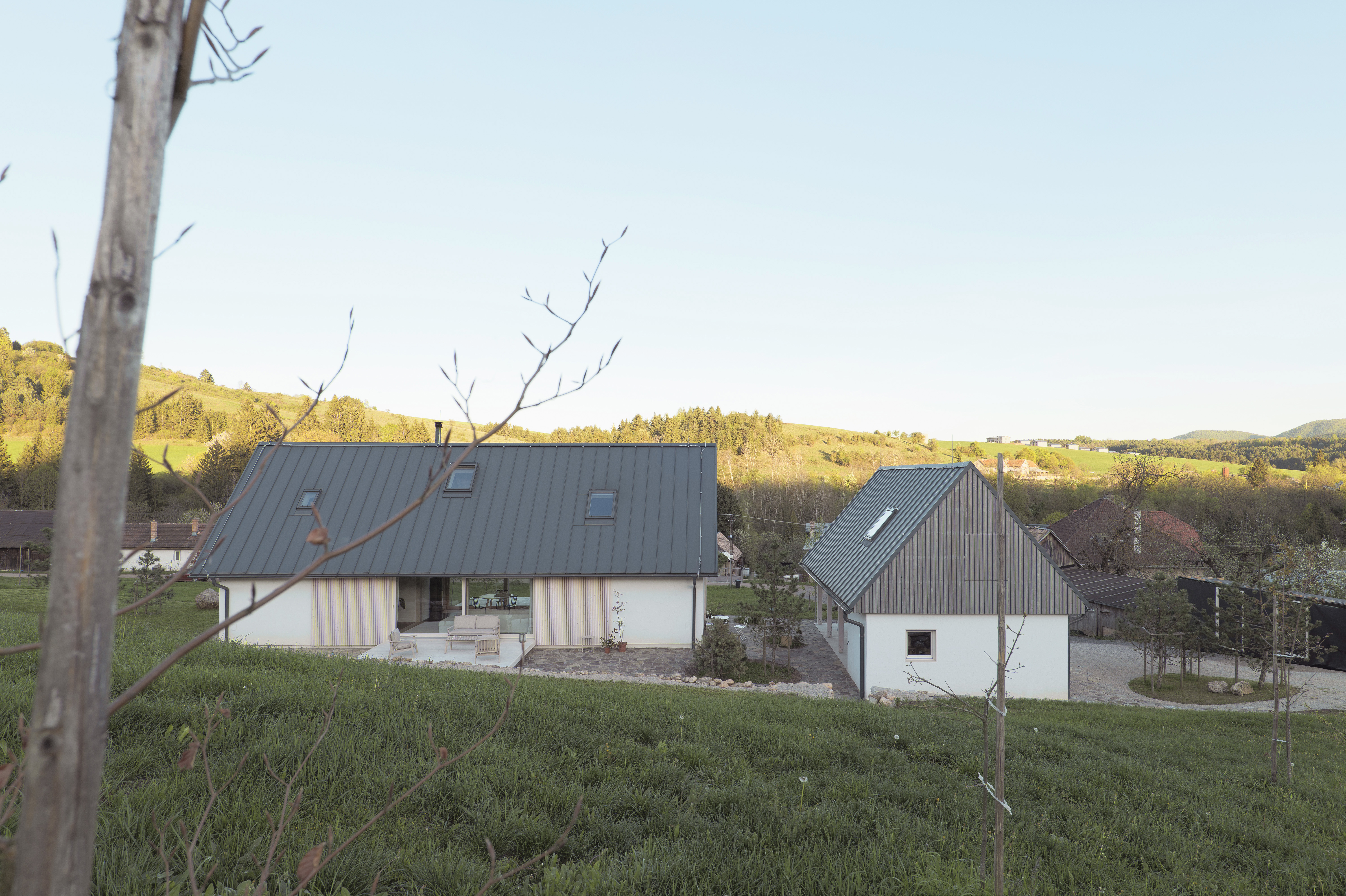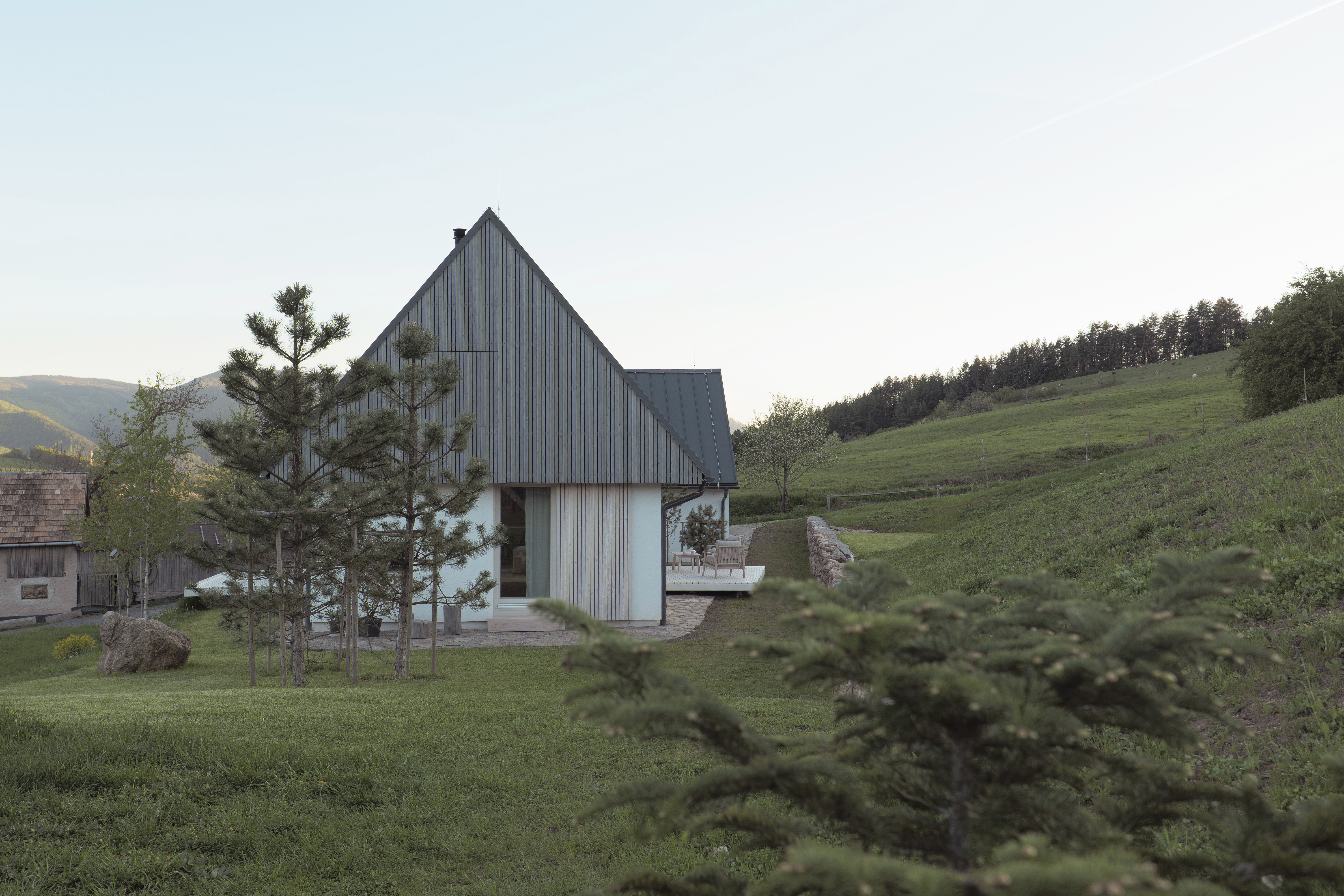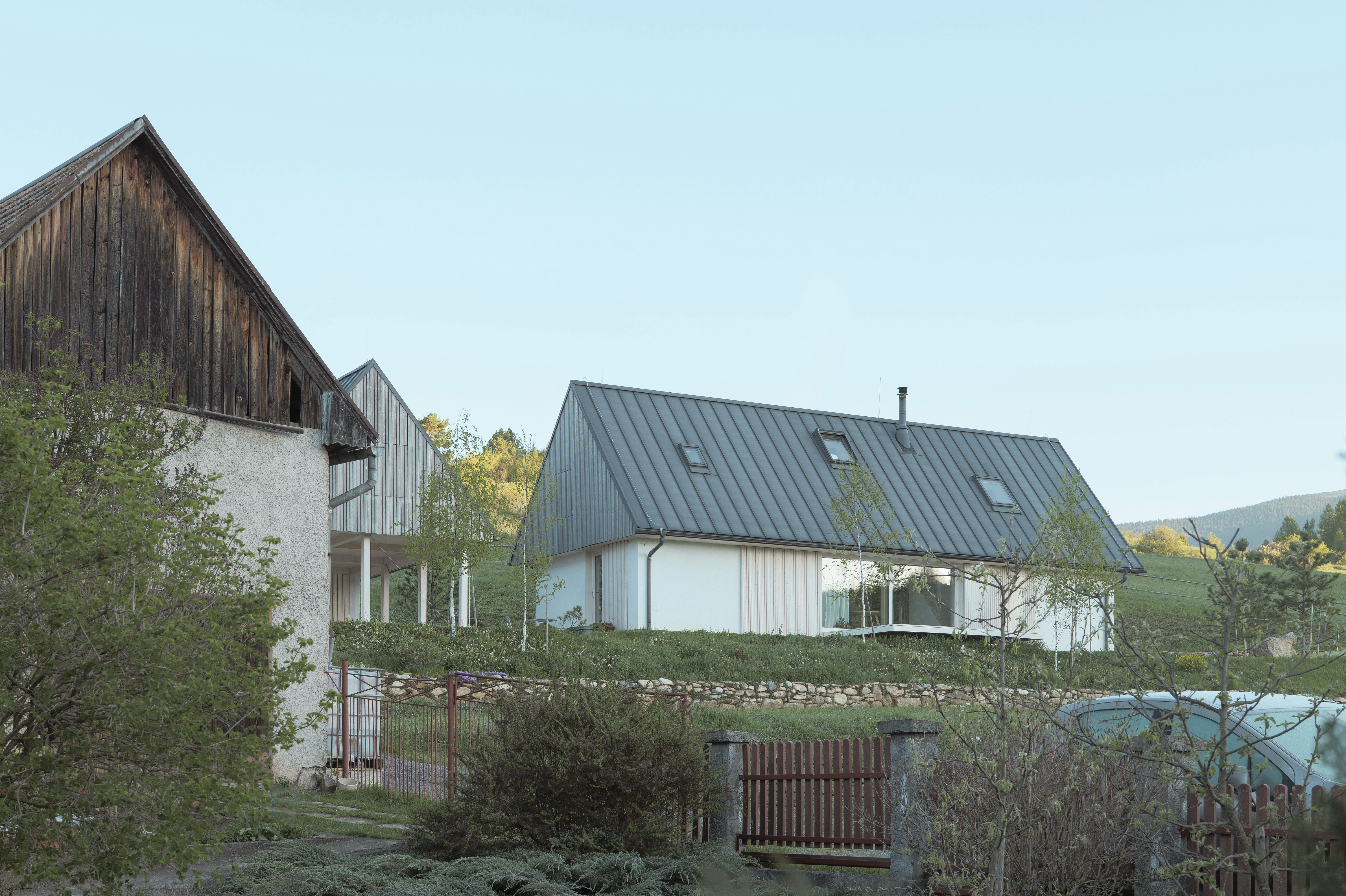 Podobu rodinného domu, situovaného na úpätí Nízkych Tatier v historicky tradičnej stredoslovenskej dedine, už od počiatku definovalo okolité prostredie a okolnosti jeho výstavby. Rozľahlý pozemok sa nachádza na samotnom konci dediny a priestorovo uzatvára skupinu domov, ktorých majitelia – zároveň rodinní príbuzní – obývajú toto miesto už celé generácie. Silné väzby k hodnotám tohto horského prostredia, spojené s pamäťou na niekdajšiu podobu pôvodných dreveníc, sa premietli do architektúry stavby nielen v podobe archetypálnej hmoty so sedlovou strechou, ale aj do formy konštrukčného riešenia a urbanistickej kompozície.